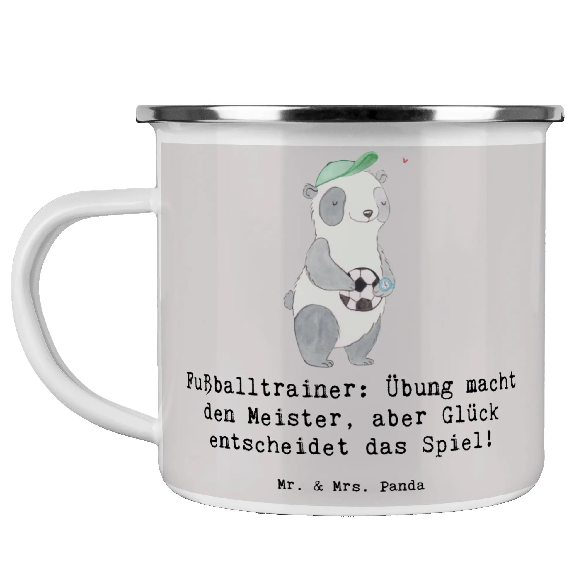 Entdecke die bezaubernde Camping Emaille Tasse mit dem einzigartigen Motiv "Fußballtrainer" von Mr. & Mrs. Panda! Diese wunderschöne und beständige Emaille Tasse ist der perfekte Begleiter für alle, die den Outdoor-Lifestyle lieben und eine Leidenschaft für Fußball haben. Mit ihrem charmanten Slogan "Übung macht den Meister, aber Glück entscheidet das Spiel!" zaubert sie jedem Fußballtrainer ein Lächeln ins Gesicht. Egal, ob beim Camping, Wandern oder einfach nur im Garten – diese Tasse ist ideal für heiße und kalte Getränke und somit ein unverzichtbares Accessoire für jeden Abenteuerliebhaber.