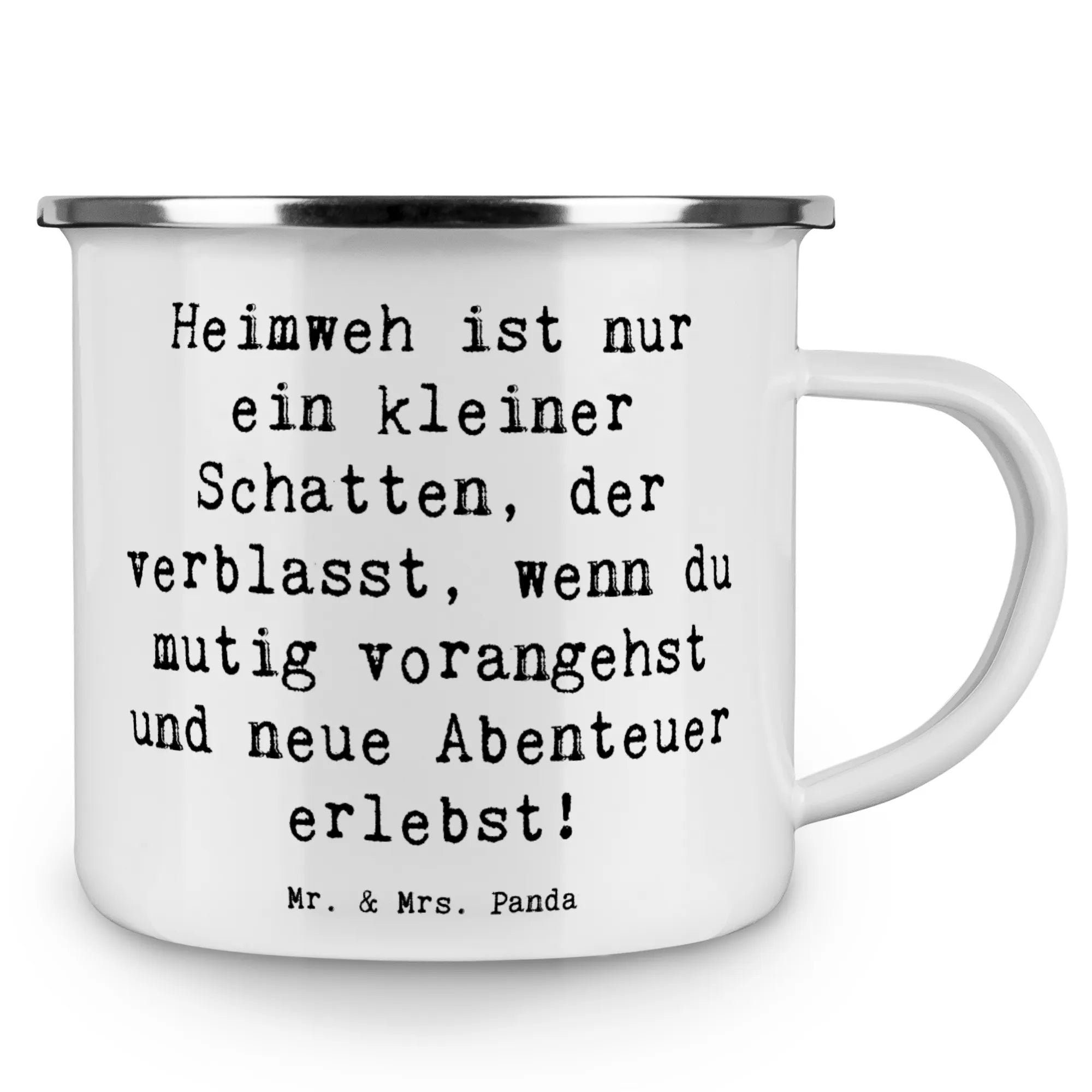 Camping Emaille Tasse Spruch Heimweh überwinden Abenteuer erleben