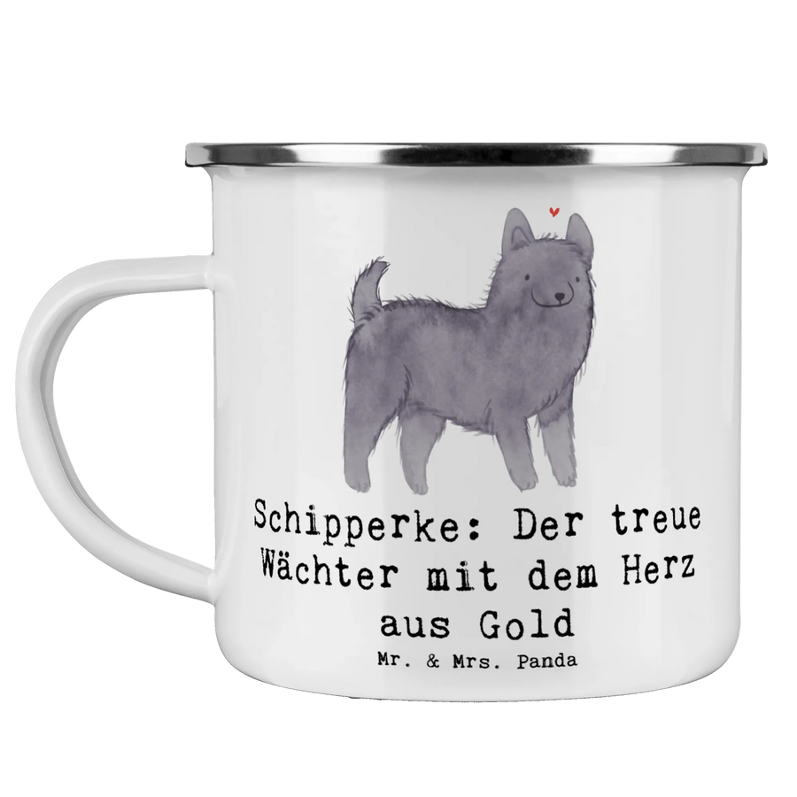 Kennst du schon die einzigartigen Camping Emaille Tassen von Mr. & Mrs. Panda? Wenn du ein echter Hundefan bist, wirst du unsere Tasse mit dem süßen Schipperke-Motiv lieben! Diese charmante Camping Emaille Tasse ist nicht nur ein echter Hingucker beim nächsten Ausflug, sondern auch der perfekte Begleiter für heiße und kalte Getränke.