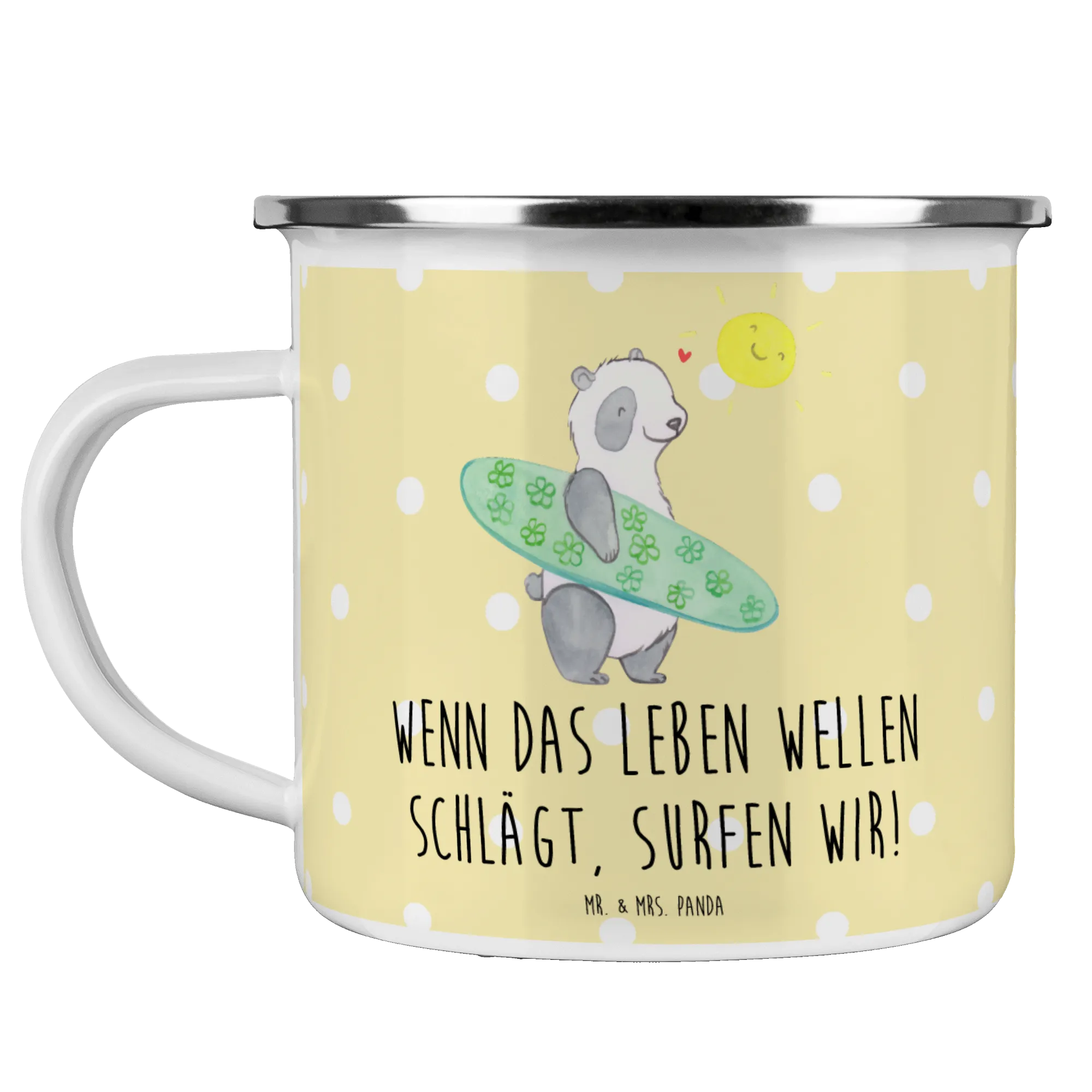 Diese Camping Emaille Tasse ist mehr als nur ein Gebrauchsgegenstand – sie ist ein Stück Lebensfreude! Mit dem lustigen Spruch "Wenn das Leben Wellen schlägt, surfen wir!" zaubert sie jedem ein Lächeln ins Gesicht. Verschenke sie an deine Freunde oder behalte sie für dich, um dir jeden Tag ein bisschen Sommerfeeling zu gönnen.