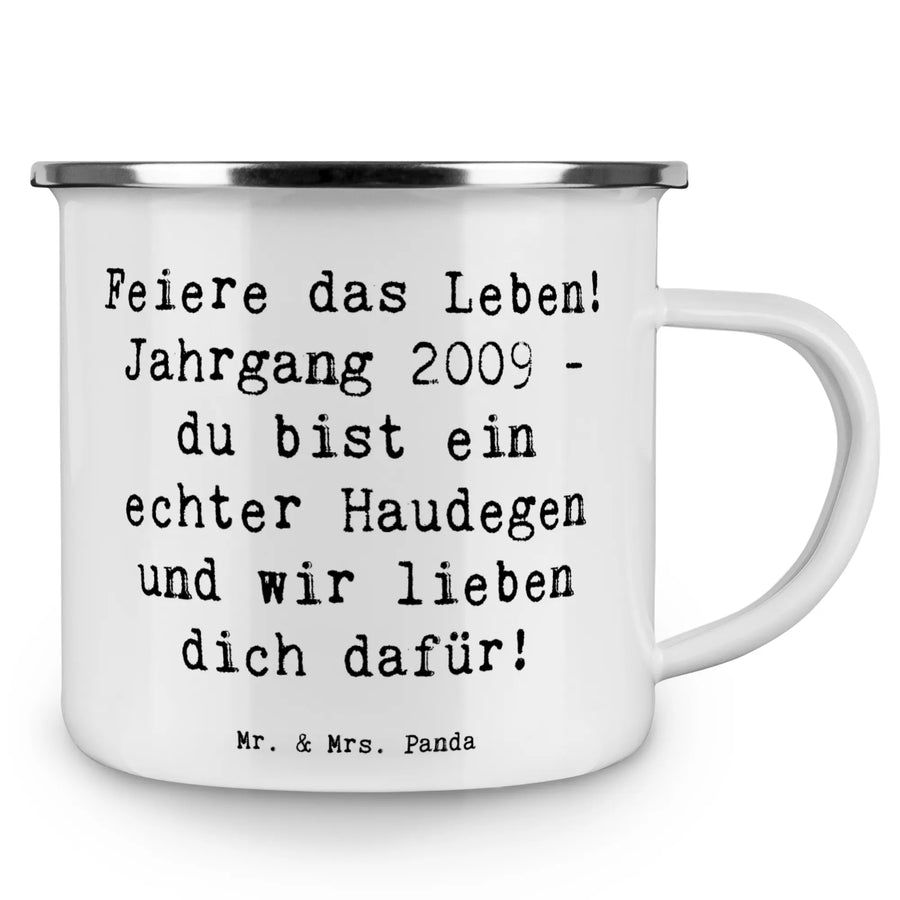 Die wunderschöne Camping Emaille Tasse von Mr. & Mrs. Panda ist das ideale Geschenk für alle, die ihren Geburtstag auf besondere Weise feiern möchten. Mit dem liebevollen Motiv 'Jahrgang 2009' und dem spritzigen Slogan 'Feiere das Leben! Jahrgang 2009 - du bist ein echter Haudegen und wir lieben dich dafür!' wird jeder Ausflug ins Freie zu einem unvergesslichen Erlebnis.