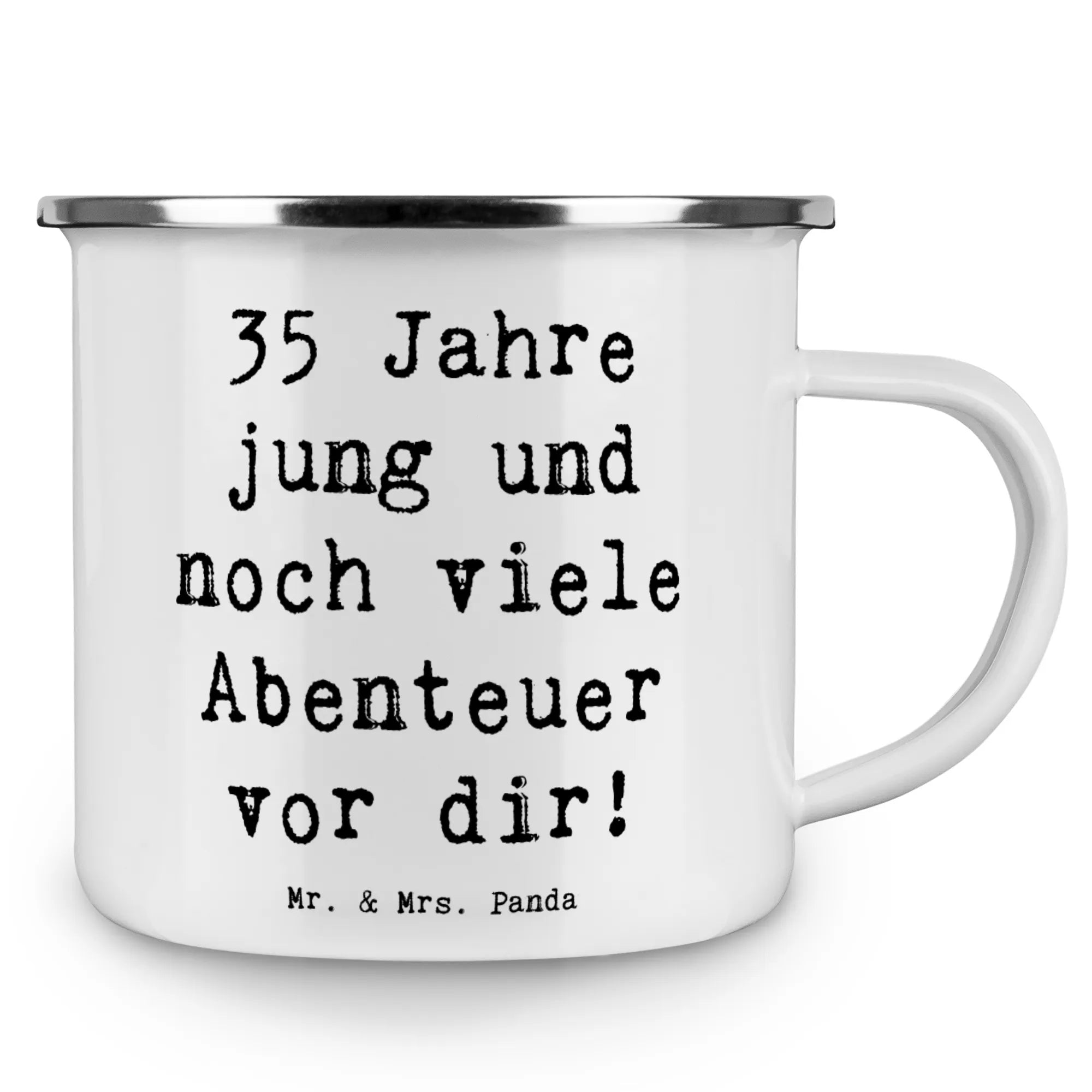 Du suchst das perfekte Geschenk zum 35. Geburtstag? Unsere traumhafte Camping Emaille Tasse von Mr. & Mrs. Panda ist genau das Richtige! Mit dem fröhlichen Slogan "35 Jahre jung und noch viele Abenteuer vor dir!" bringt diese Tasse nicht nur Freude, sondern auch Erinnerungen an unvergessliche Erlebnisse. Egal, ob für den Campingausflug, beim Wandern oder einfach nur beim entspannten Kaffeetrinken auf dem Balkon – diese Emaille Tasse ist super leicht, praktisch und ideal für heiße sowie kalte Getränke.