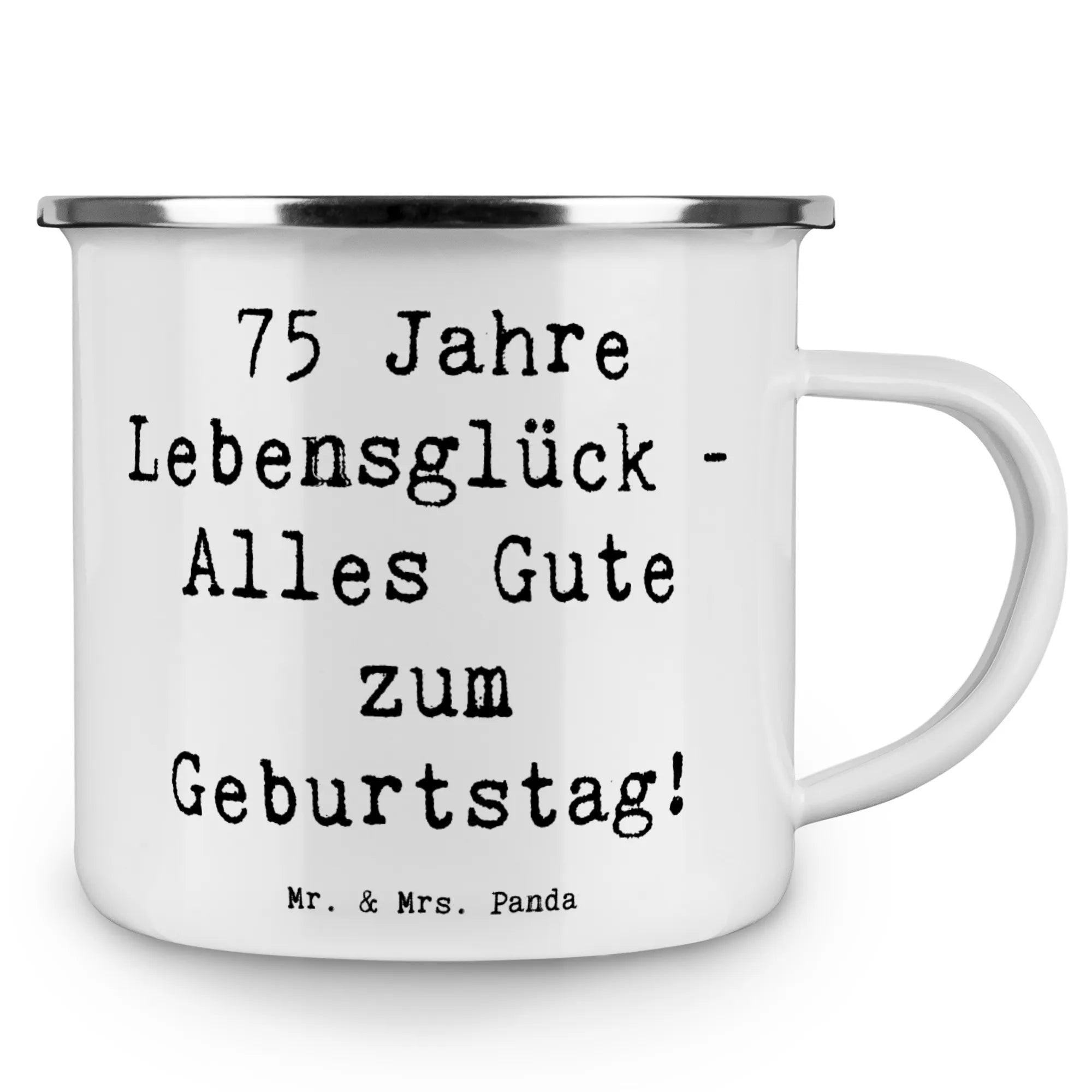 Unsere Camping Emaille Tasse "75 Jahre Lebensglück - Alles Gute zum Geburtstag!" von Mr. & Mrs. Panda ist das perfekte Geschenk für den 75. Geburtstag! Egal, ob für die Abenteuerlustigen unter uns oder die ruhigen Genießer, diese Tasse wird jede Outdoor-Aktivität verschönern. Der nostalgische Spruch verleiht der Tasse einen ganz besonderen Charme und ist ideal, um den großen Tag gebührend zu feiern.