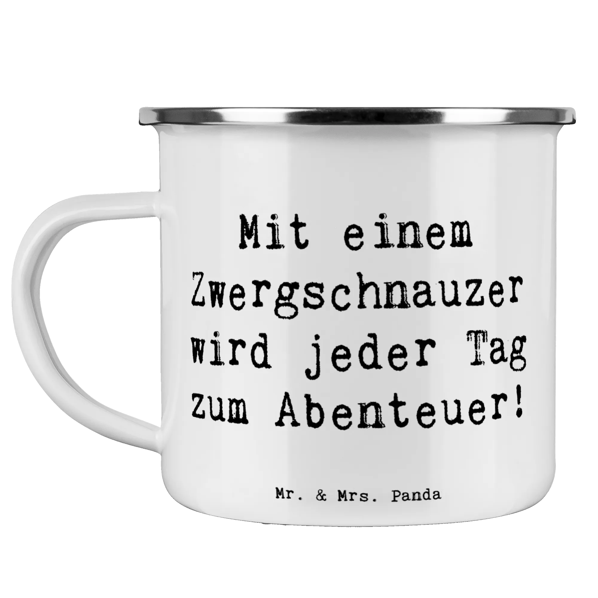 Camping Emaille Tasse Spruch Zwergschnauzer Abenteuer – Mr. & Mrs. Panda