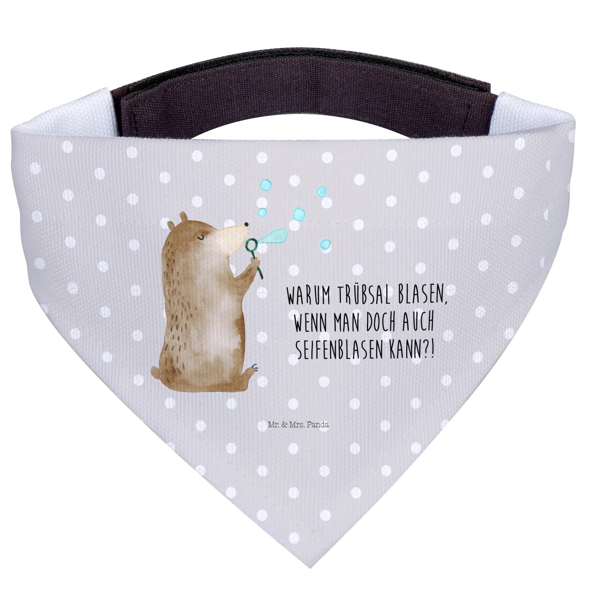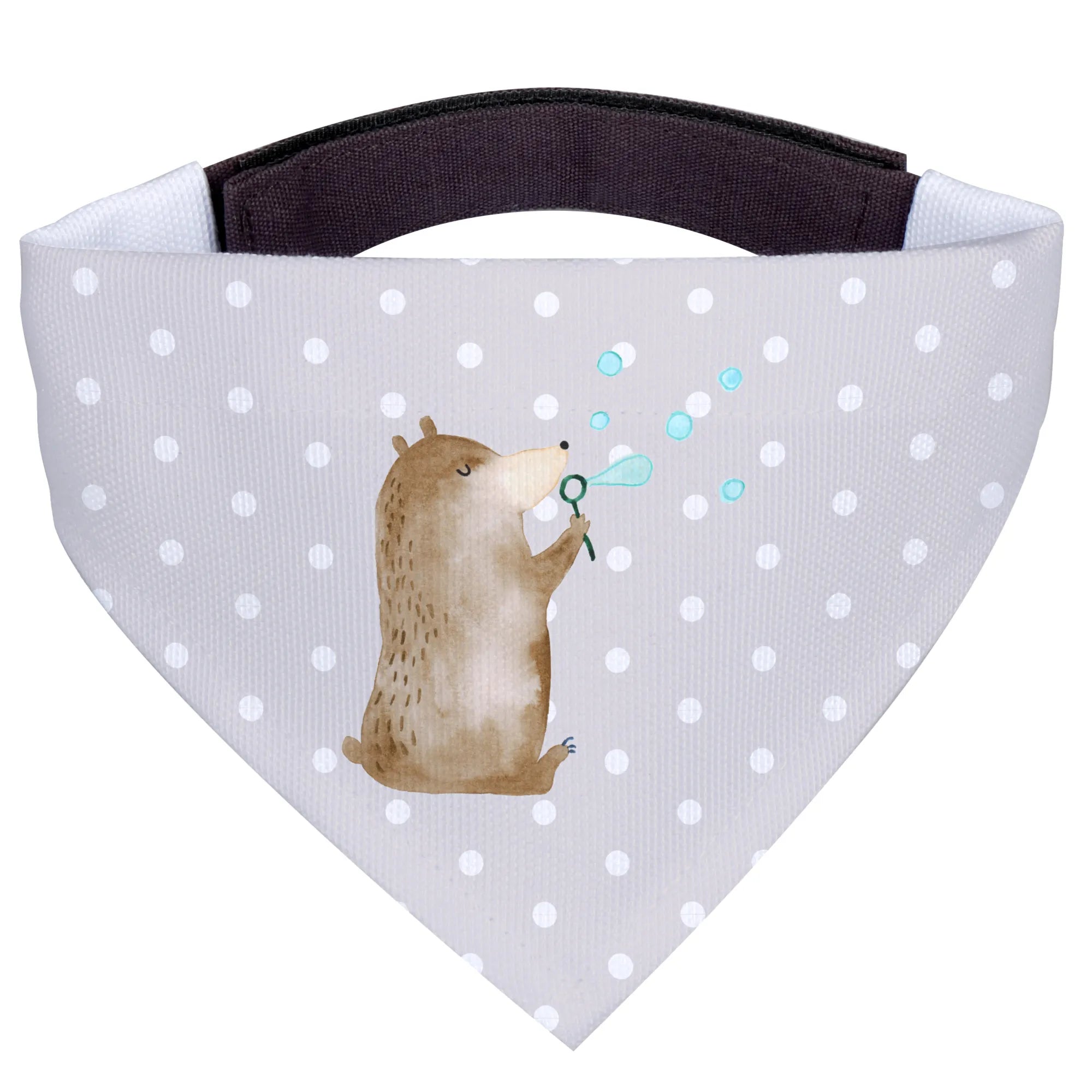 Chusta na szyję dla psa L niedźwiedź bańki mydlane - Bandana dla psów M - z napisem - Pastelowy szary
