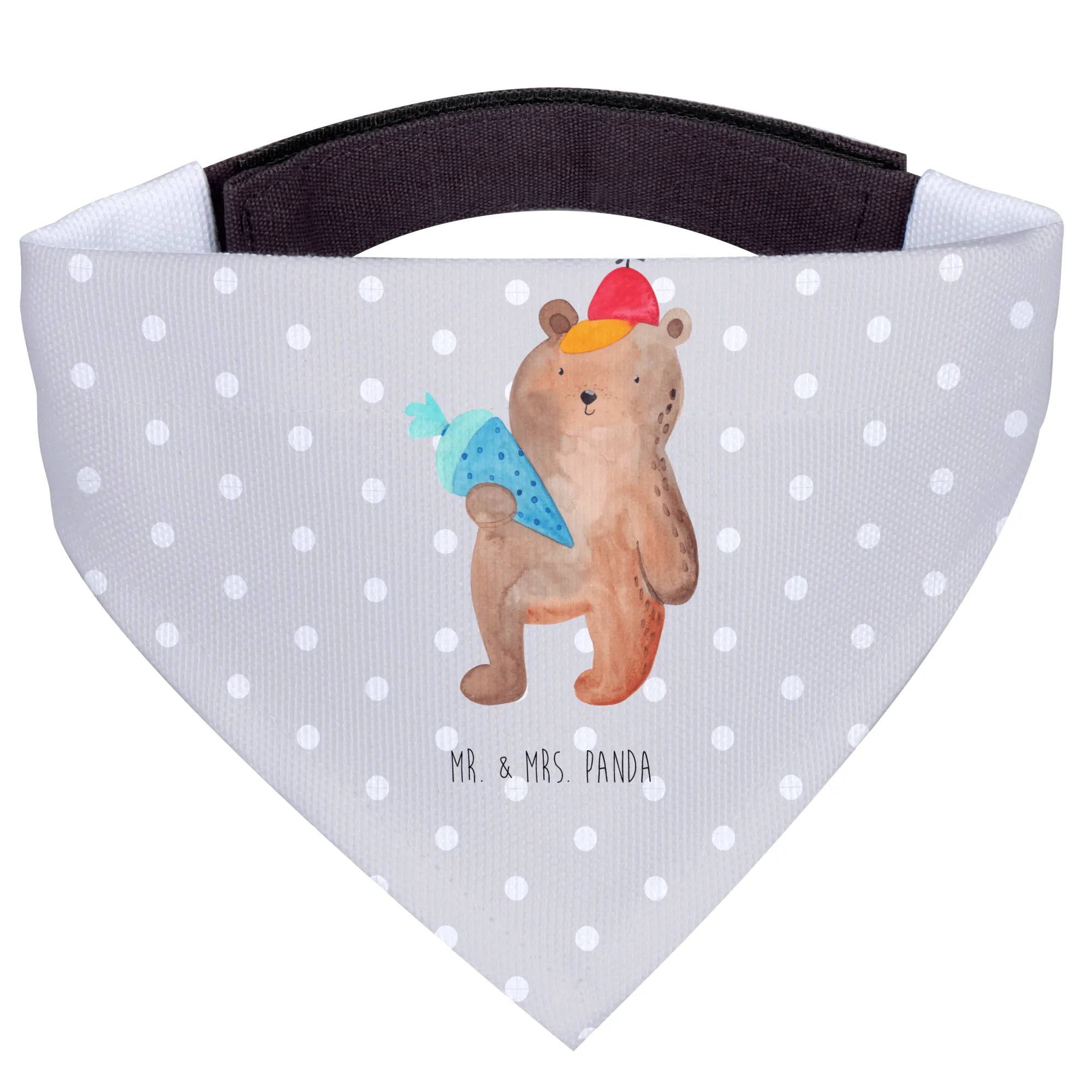 Chusta na szyję dla psa L Niedźwiedź Torebka szkolna - Bandana dla psów M - z napisem - Szary Pastel