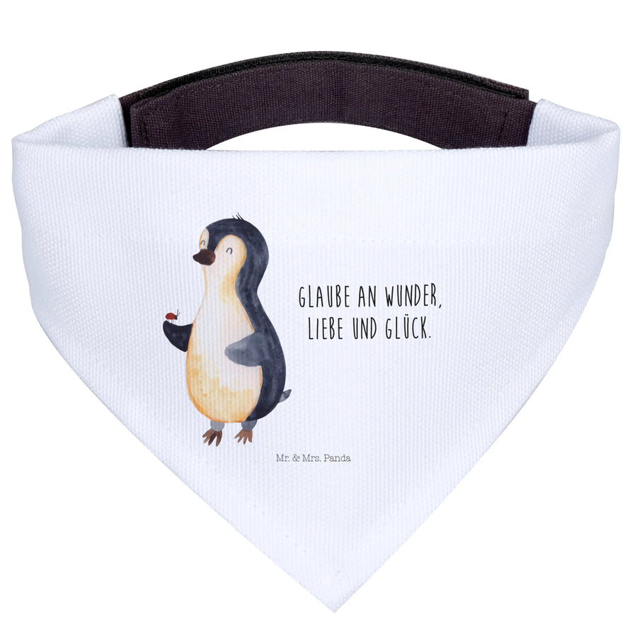 Mit dem Hundehalstuch aus der Pinguin - Kollektion von Mr. & Mrs. Panda schenkst du deinem Hund ein fröhliches Accessoire, das Herzen öffnet. Der niedliche Pinguin, der einen kleinen Marienkäfer auf seiner Flosse trägt, ist liebevoll in Aquarell-Handzeichnung gestaltet und strahlt pure Lebensfreude aus. Dieses Design kommt als „Ohne Text“-Variante, so bleibt das Motiv klar, zart und besonders ansprechend.