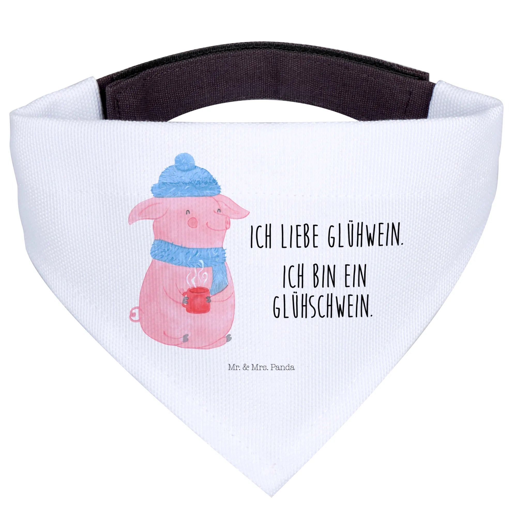 Chusta na szyję dla psa L świnia grzane wino - Hundehalstuch M - z napisem - biały