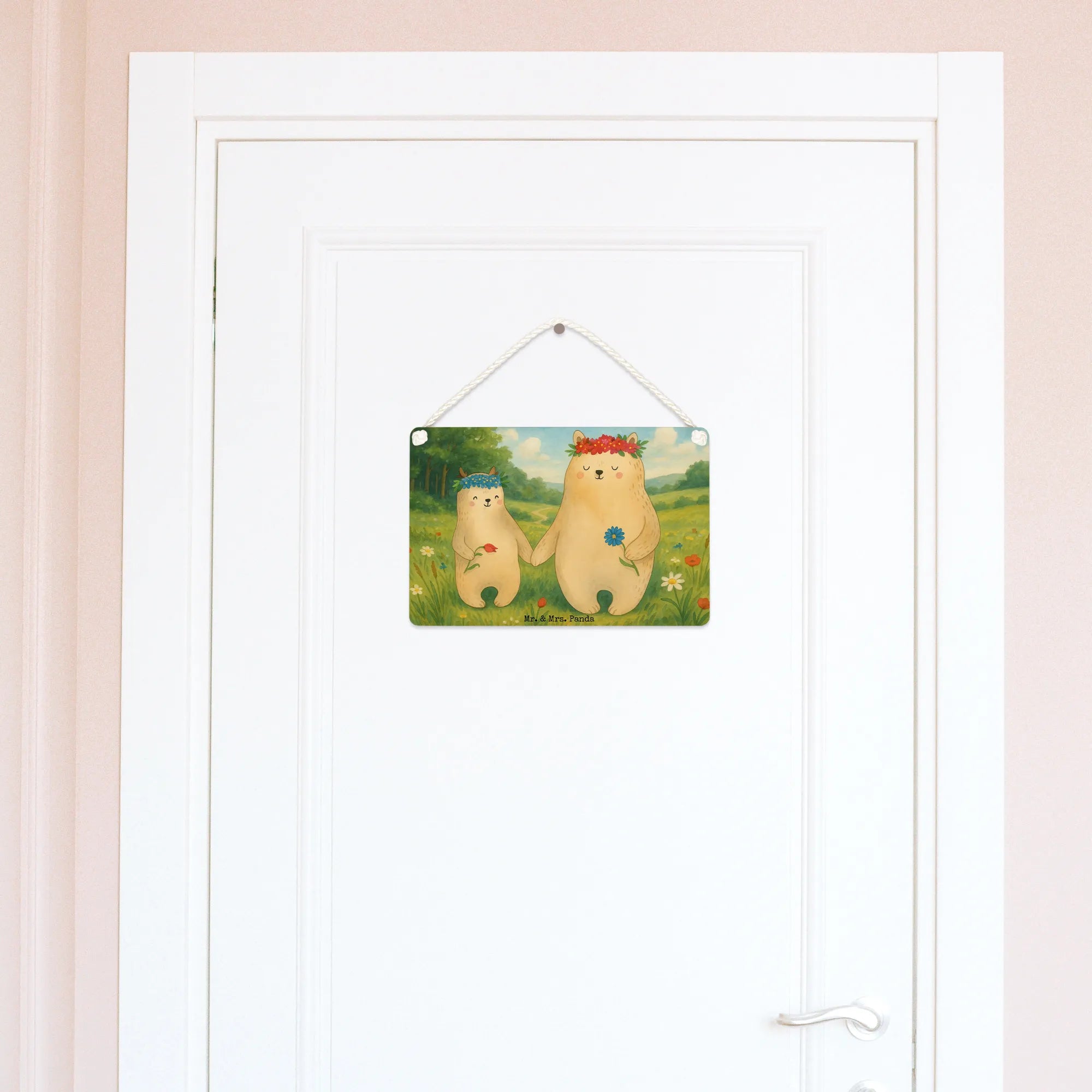 Deko Schild Bären mit Blumenkranz Design - DIN A4 - mit Spruch