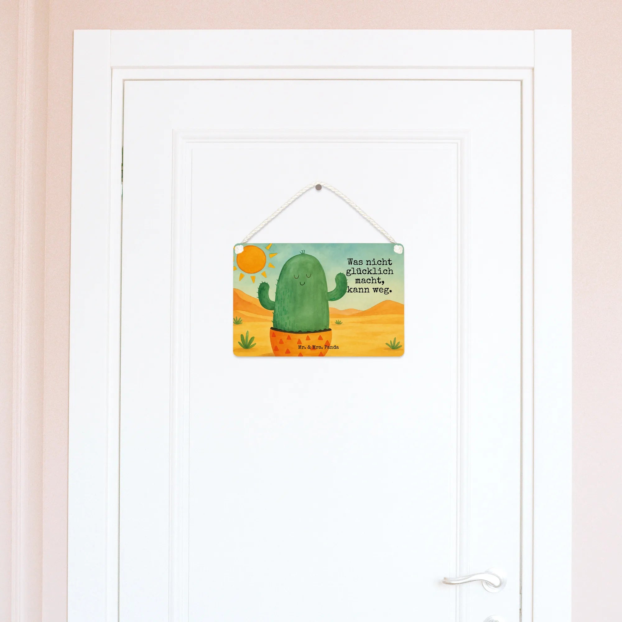 Dieses liebevolle Deko Schild aus der Kaktus - Kollektion verbindet ein zartes Aquarell-Motiv mit einem klaren, aufmunternden Spruch: „Was nicht glücklich macht, kann weg.“ Mrs. Panda hat den kleinen, zufriedenen Kaktus so gemalt, dass man sofort lächeln muss. Perfekt als Türschild, Küchenschild oder Wandschild, wenn Du einem Raum sofort mehr Sonne und gute Laune schenken willst.