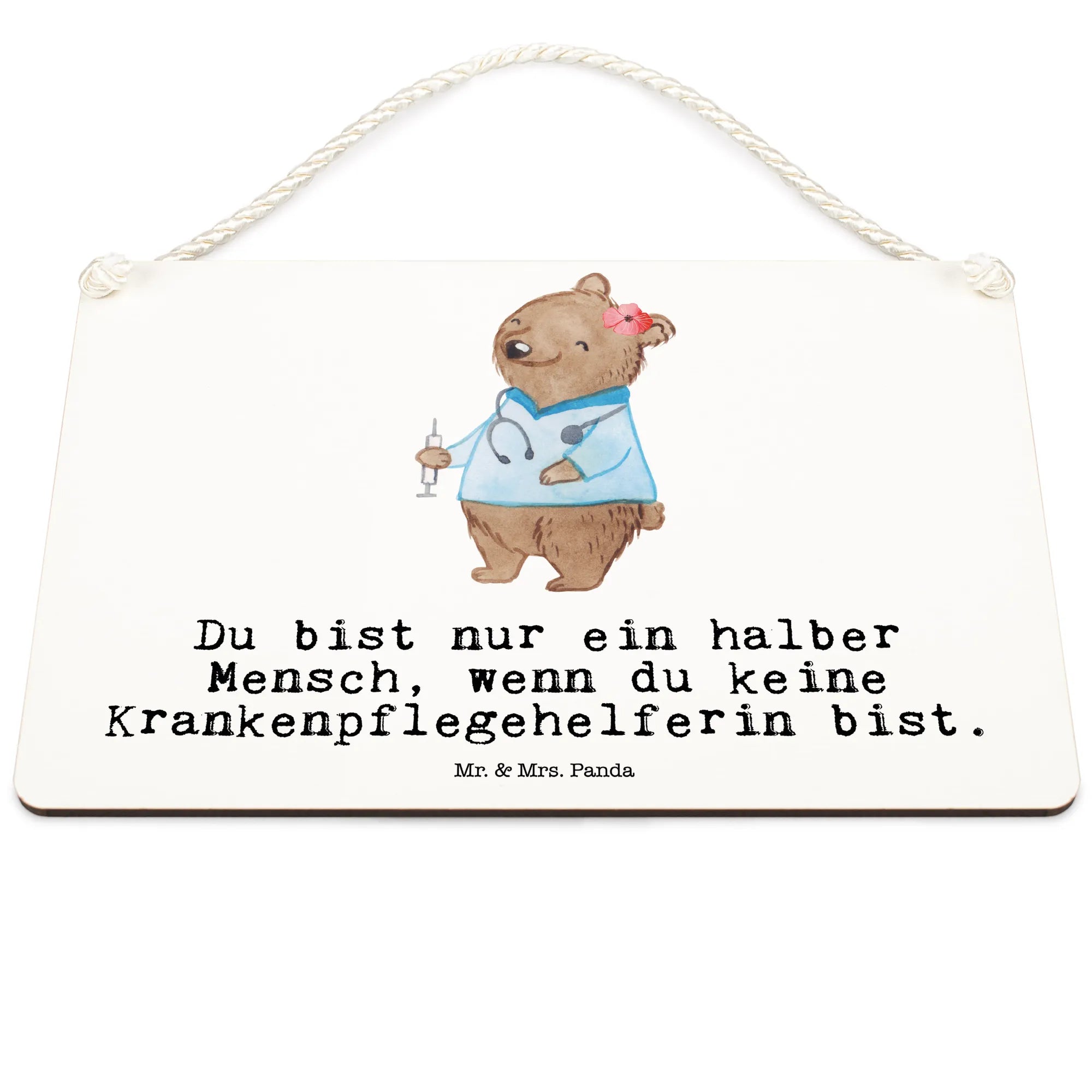 Das wunderschöne Deko Schild "Krankenpflegehelferin mit Herz" von Mr. & Mrs. Panda ist das perfekte Geschenk für alle, die in der Pflege tätig sind oder gerade ihre Ausbildung abgeschlossen haben. Dieses liebevoll gestaltete Schild ist nicht nur eine tolle Dekoration für die Wand oder die Tür, sondern auch ein liebevoller Wegweiser, der zeigt, wie wichtig der Beruf von Pflegekräften ist. Mit dem herzerwärmenden Motiv einer kleinen Bärendame, die eine Spritze in der Hand hält, und dem Spruch "Du bist nur ein halber Mensch, wenn du keine Krankenpflegehelferin bist." bringt dieses Holzschild Freude und Dankbarkeit in jeden Raum.
