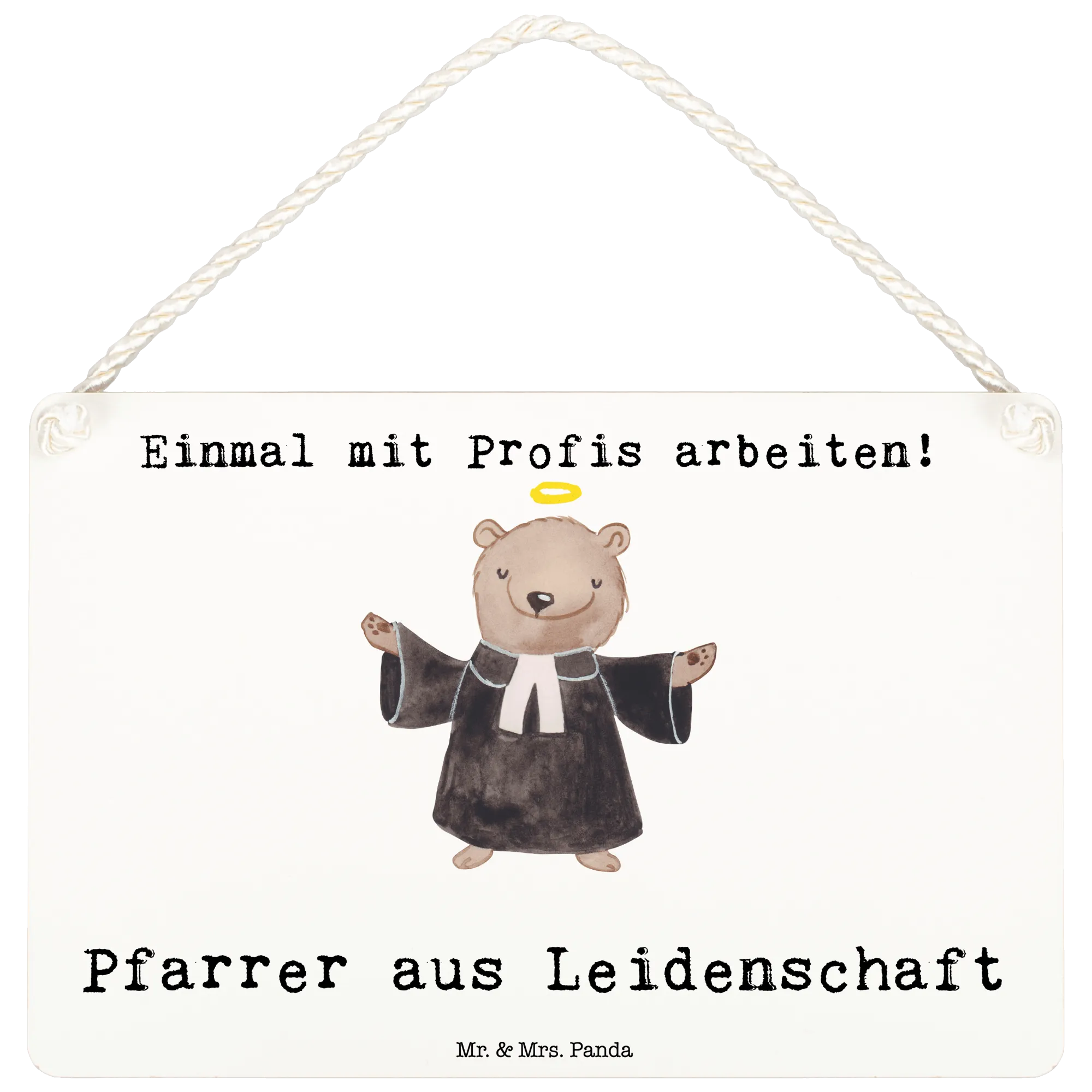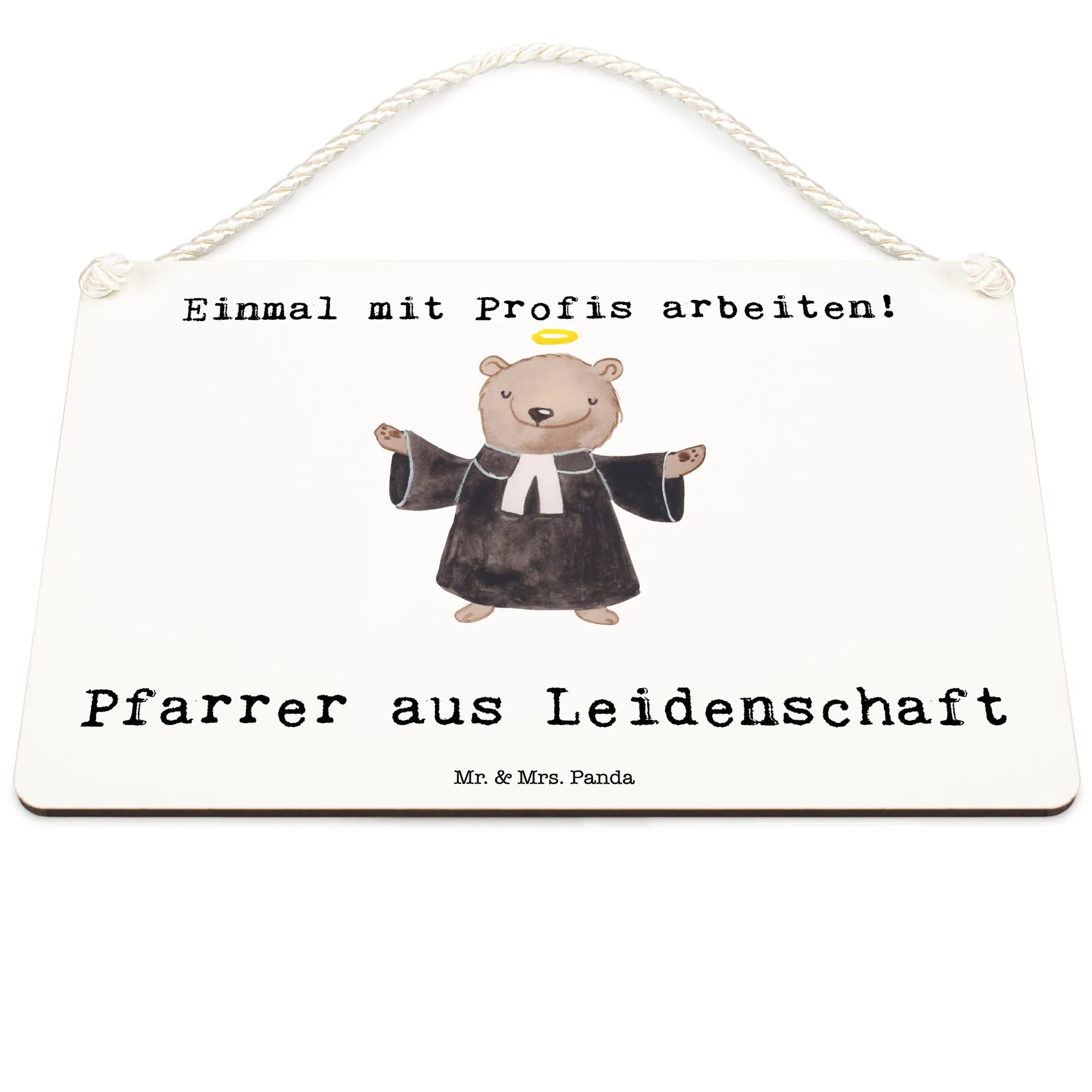 Mit einem süßen, handgezeichneten Bär, der in einer Priesterrobe steckt, und symbolisch die Hände zum Segen erhebt, wird dieses Schild jedem Priester oder Pfarrer ein Lächeln ins Gesicht zaubern. Es ist die ideale Geschenkidee zum Jobbeginn, zur Beförderung, einem Jubiläum oder sogar zum Abschied eines geschätzten Kollegen.