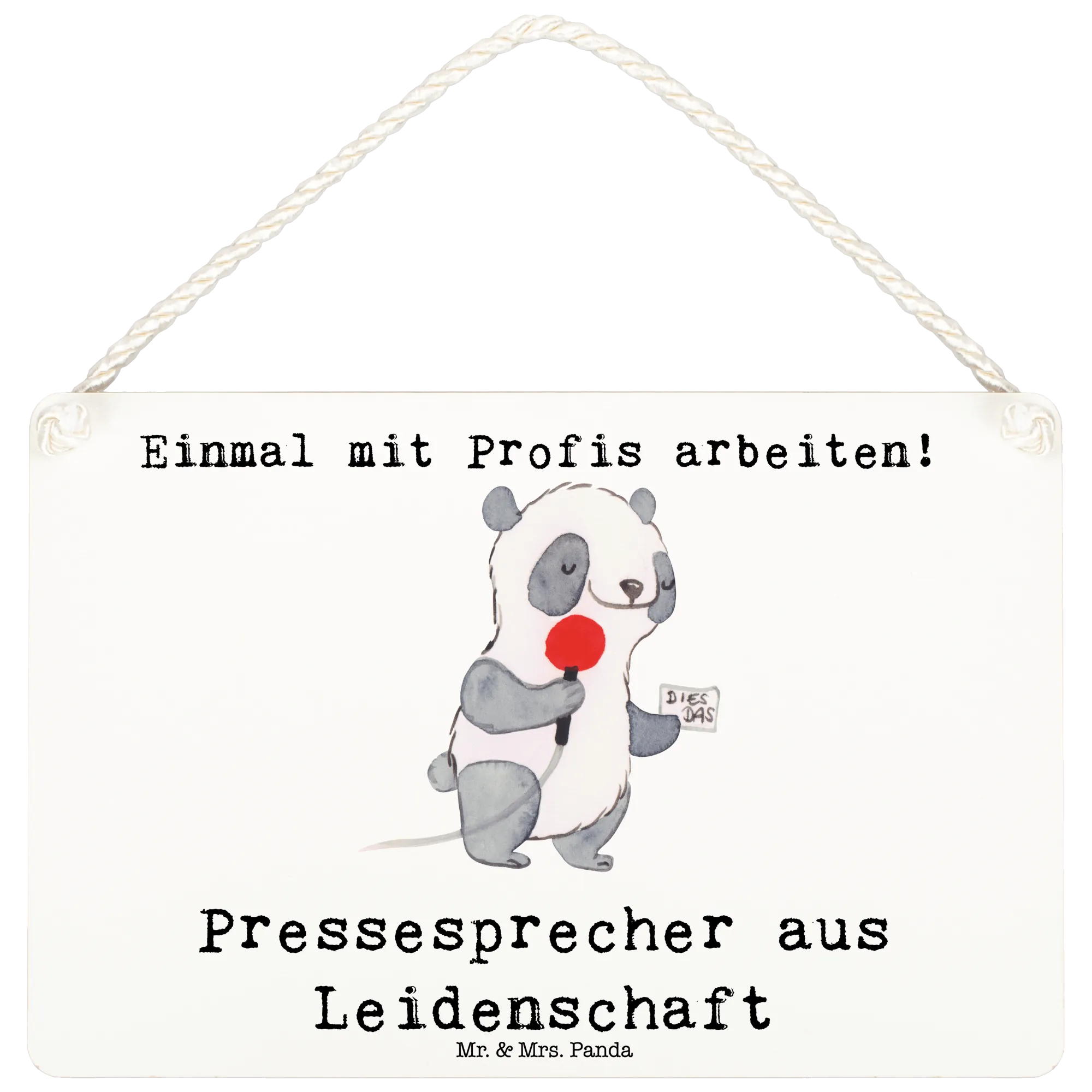 Der niedliche Panda, der ein Mikrofon in der Hand hält und einen Interviewpartner befragt, bringt jeden zum Schmunzeln und zaubert ein Lächeln ins Gesicht. Dieses Deko Schild ist nicht nur eine schöne Dekoration, sondern auch ein toller Wegweiser, um die Leidenschaft für das eigene Berufsleben auszudrücken.