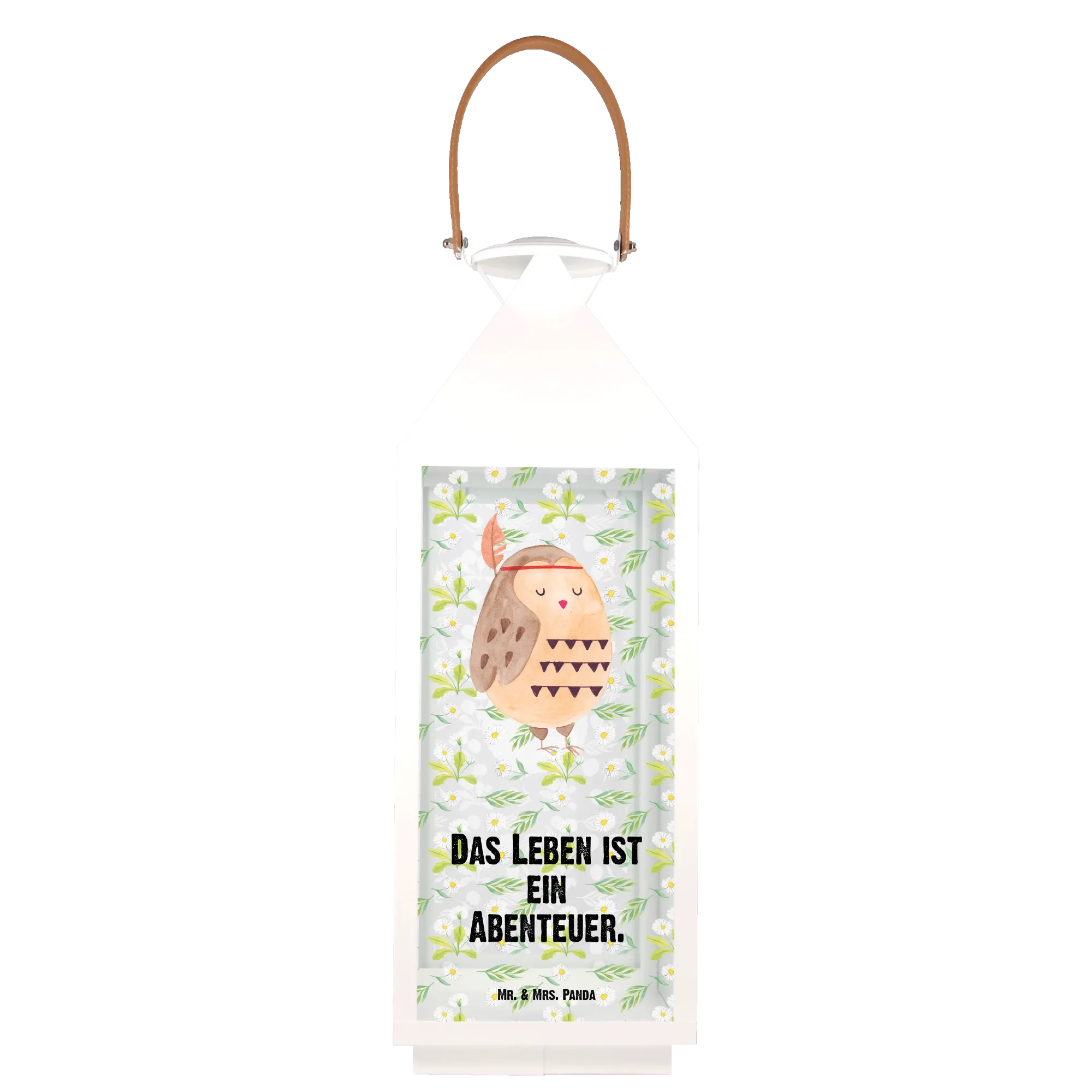 Dekoracyjna latarnia sowa Ozdoba z piór - S - z napisem