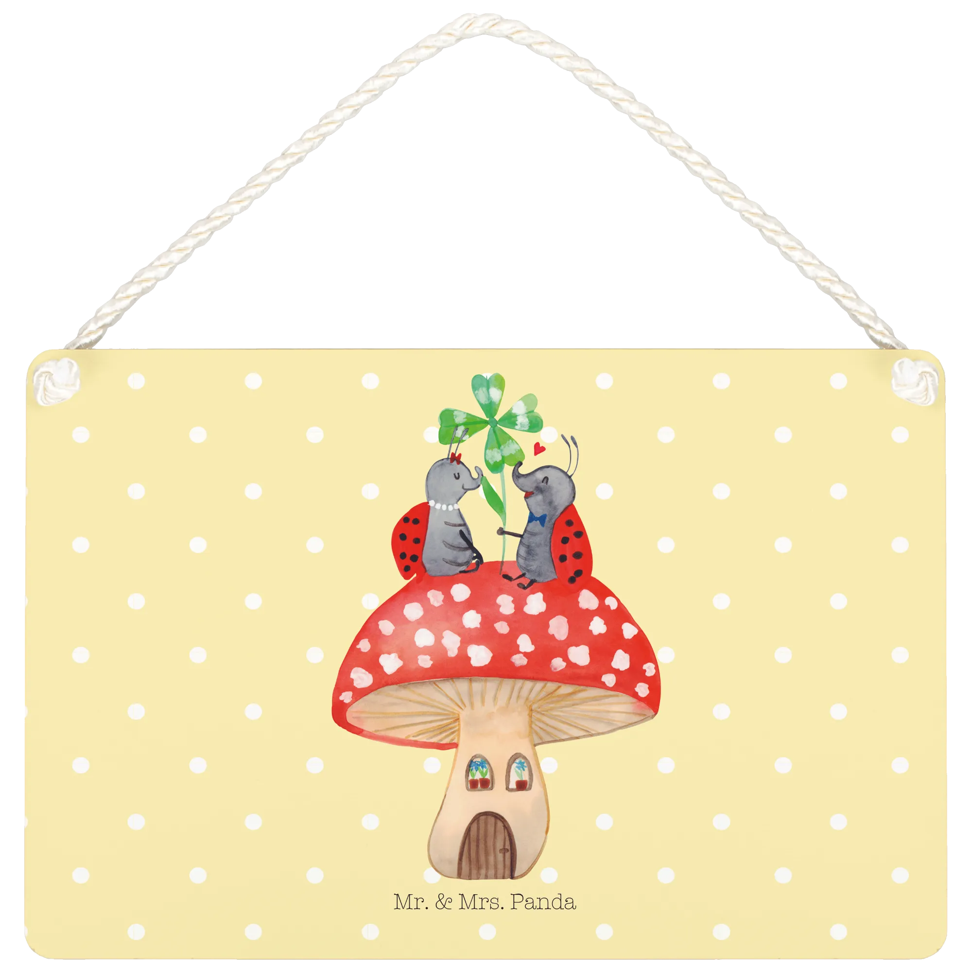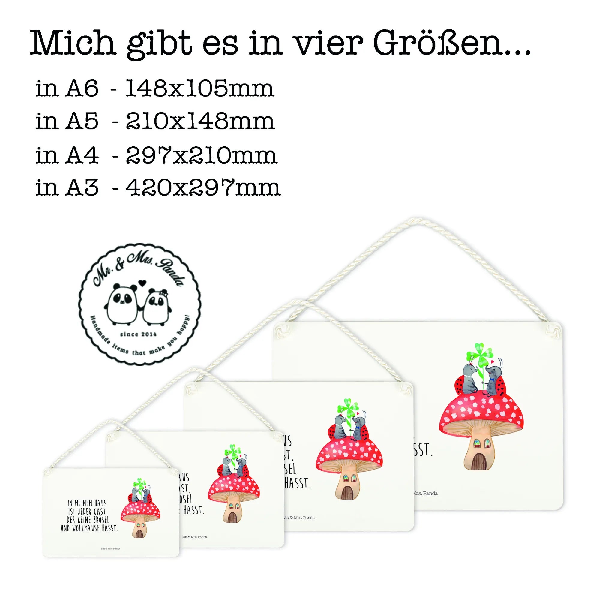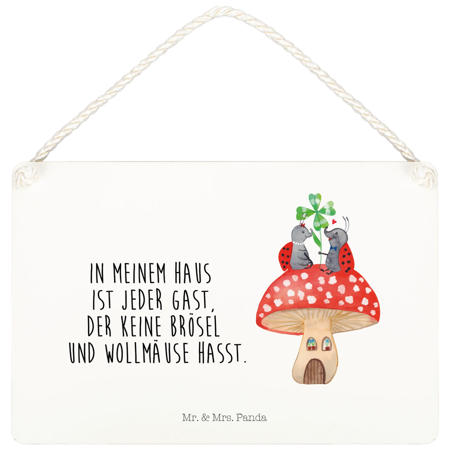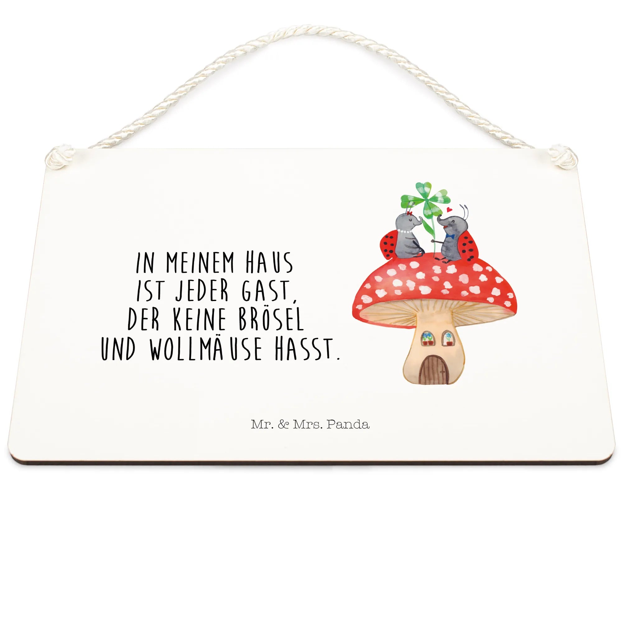 Dekoracyjny znak biedronka Muchomor - DIN A5 - z napisem - biały