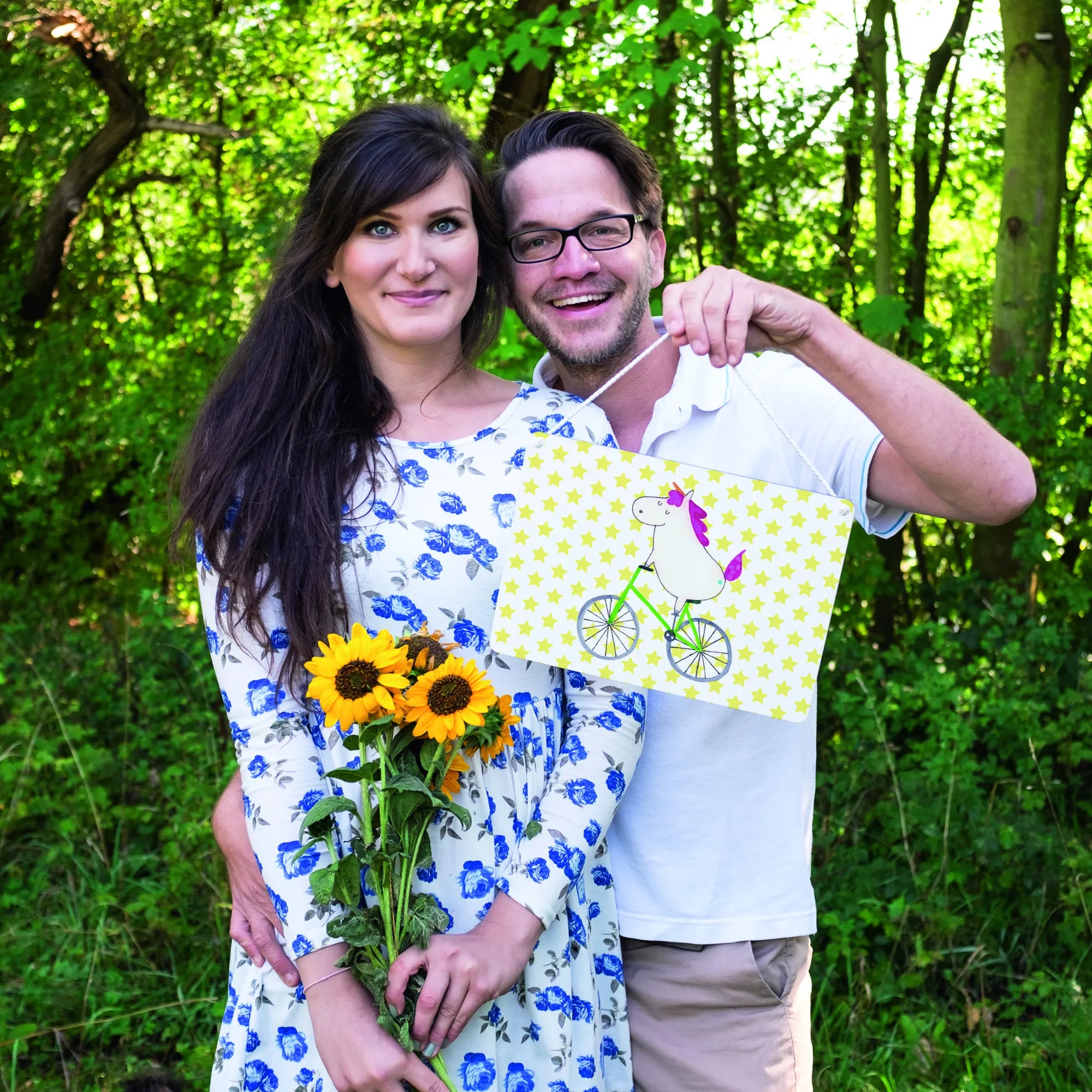 Dekoracyjny znak Jednorożec Rowerzysta - z napisem