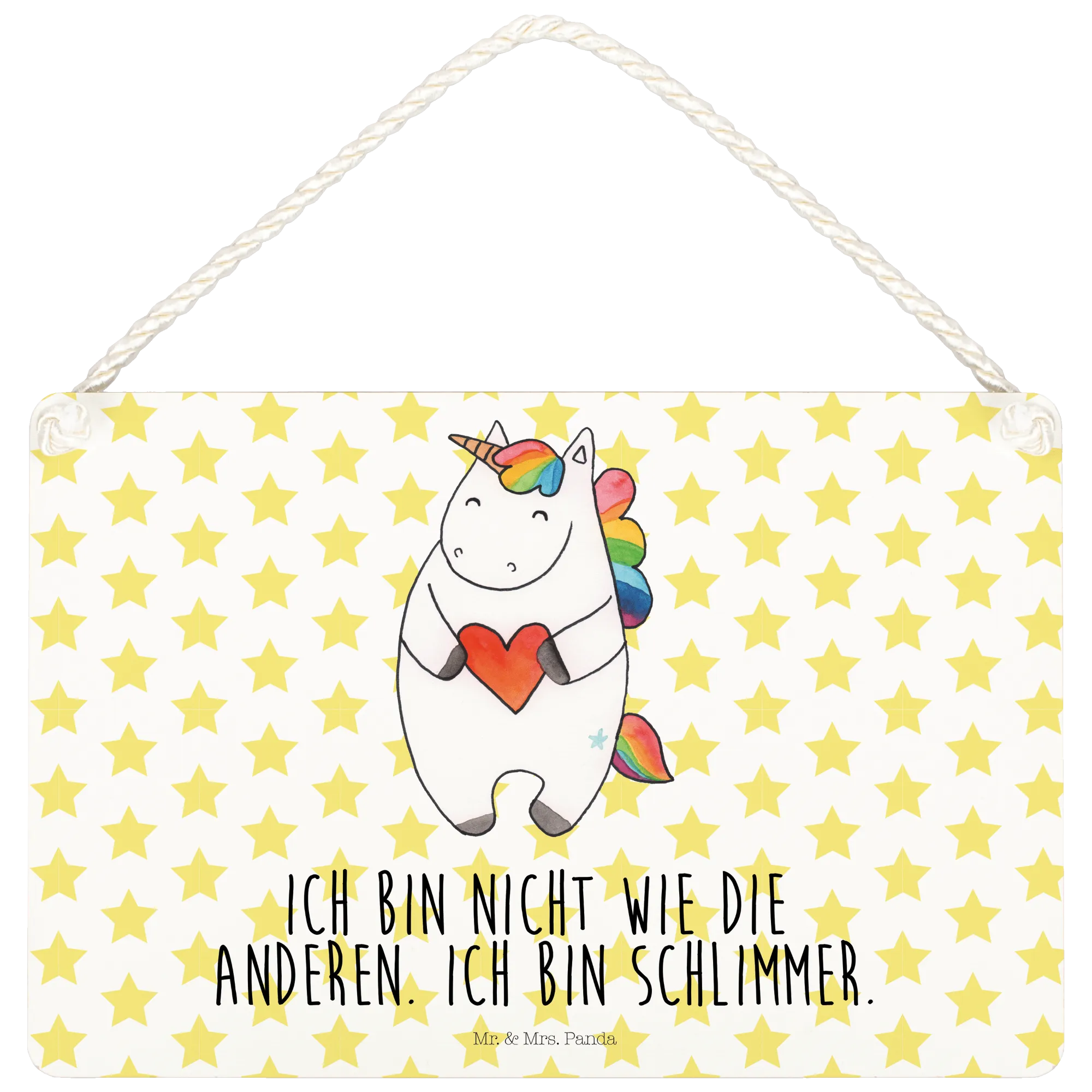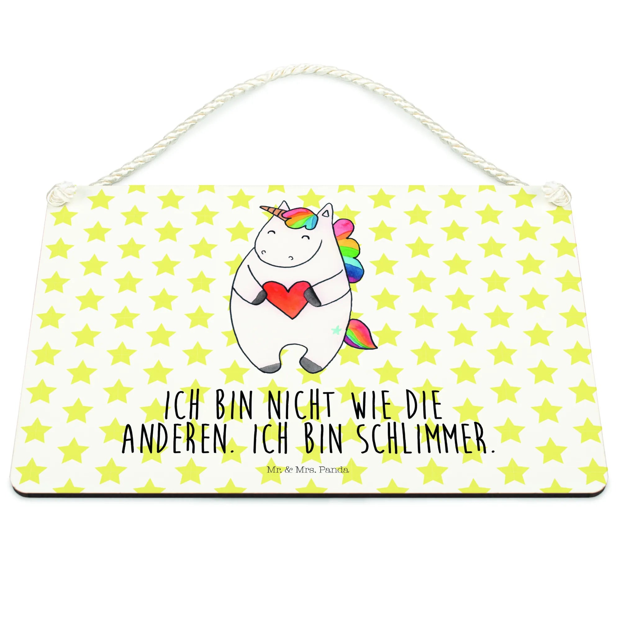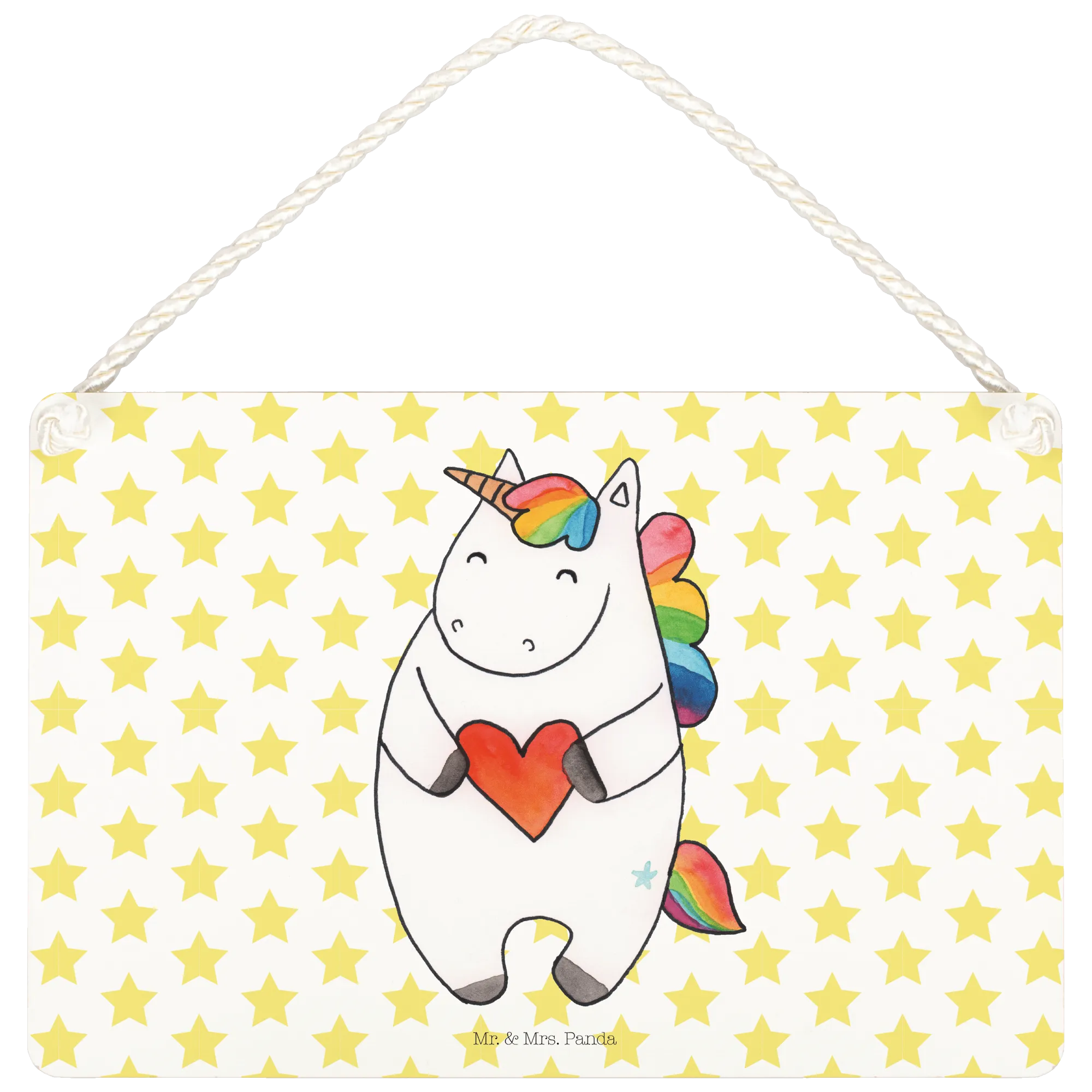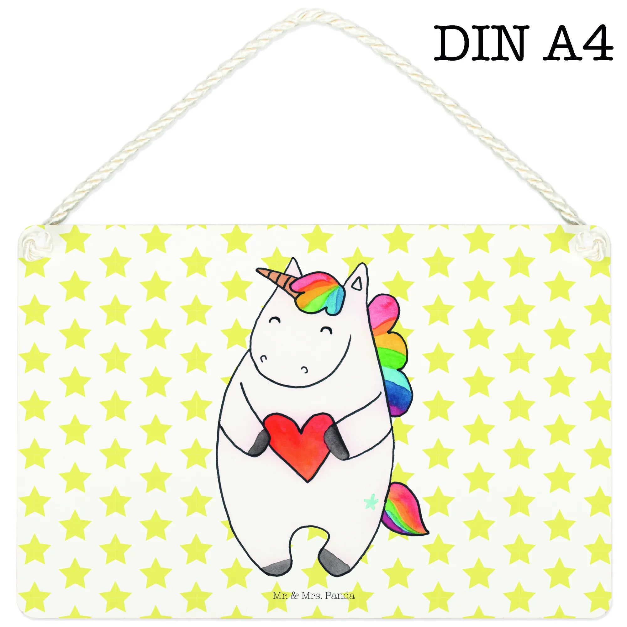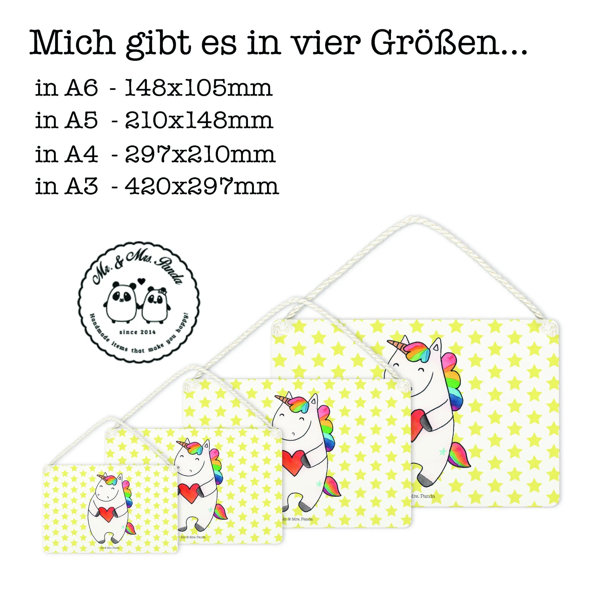 Dekoracyjny znak Jednorożec serce - DIN A5 - z napisem - biały