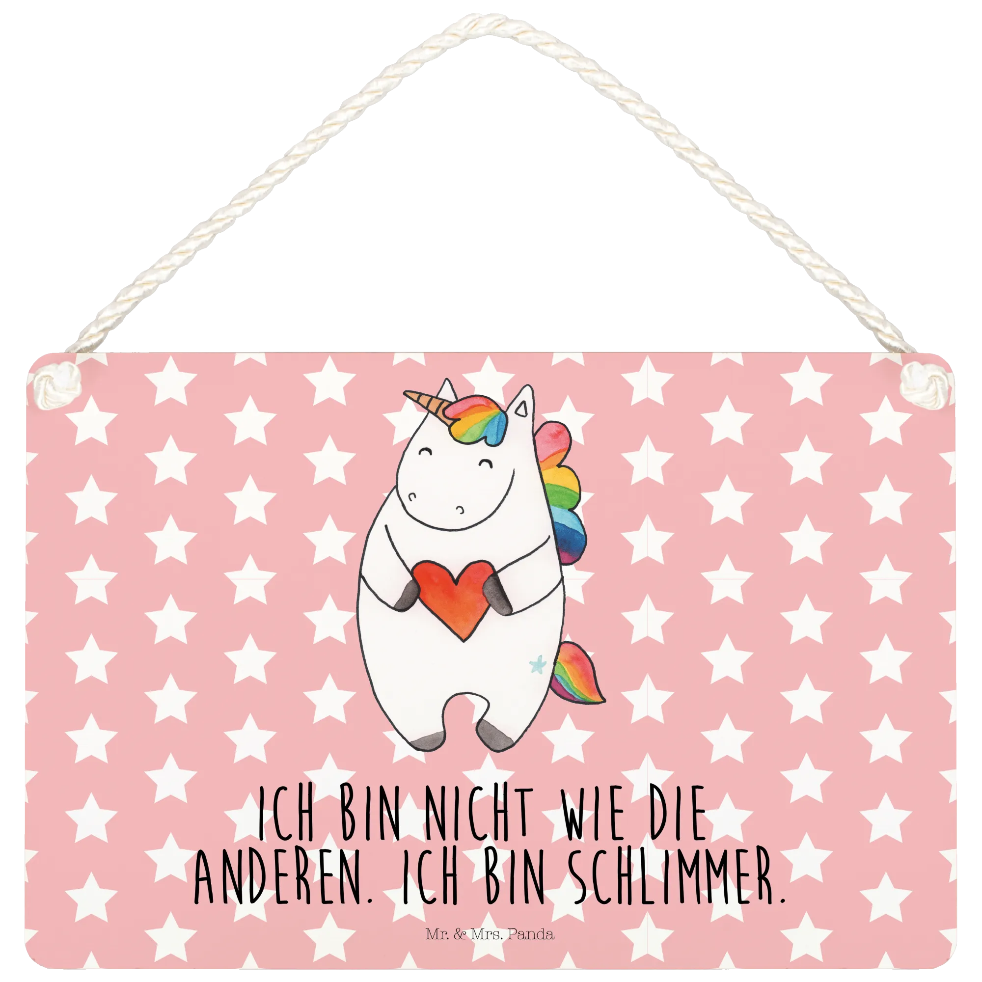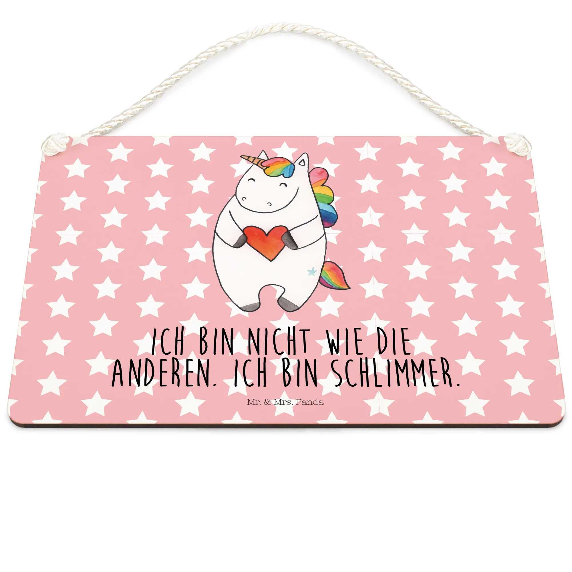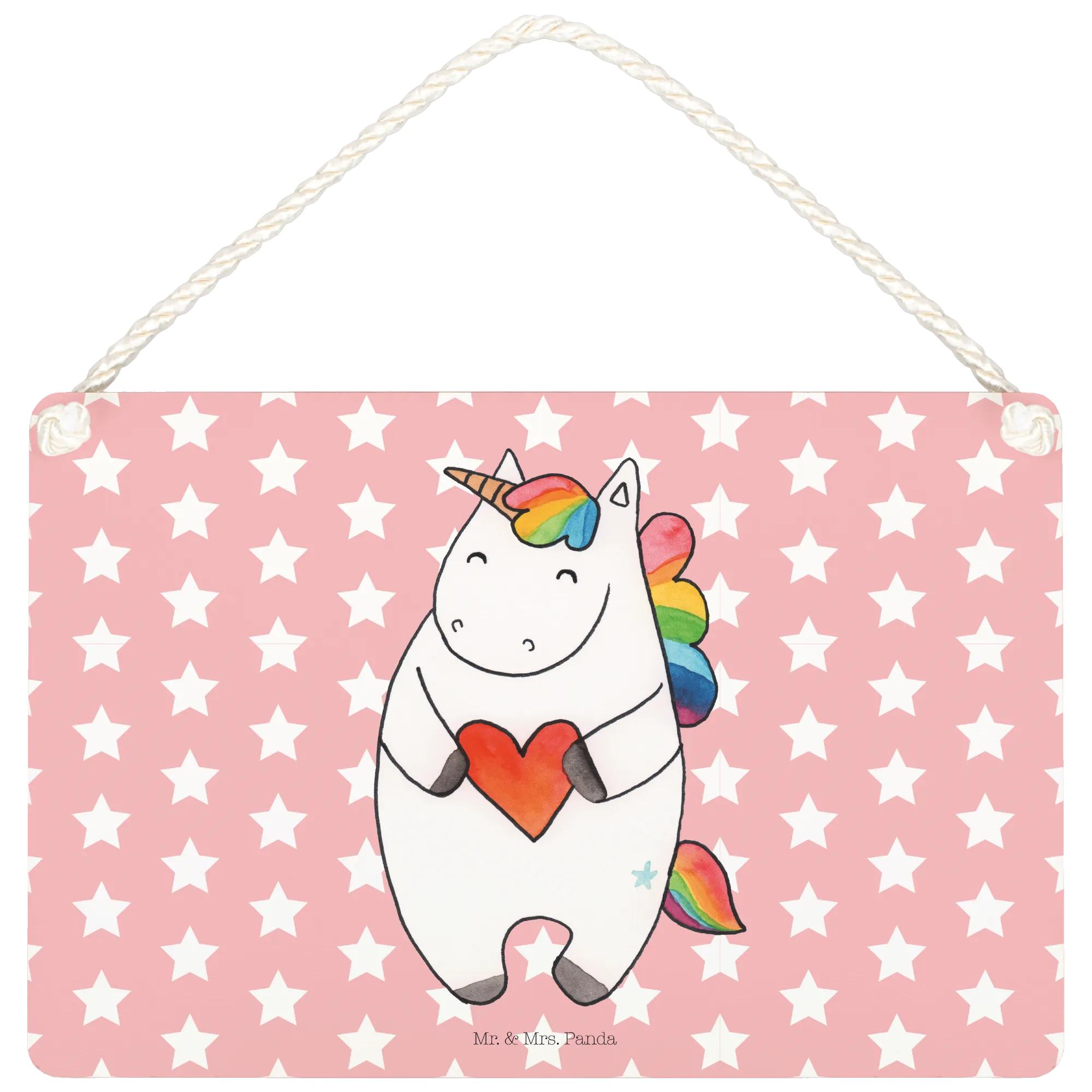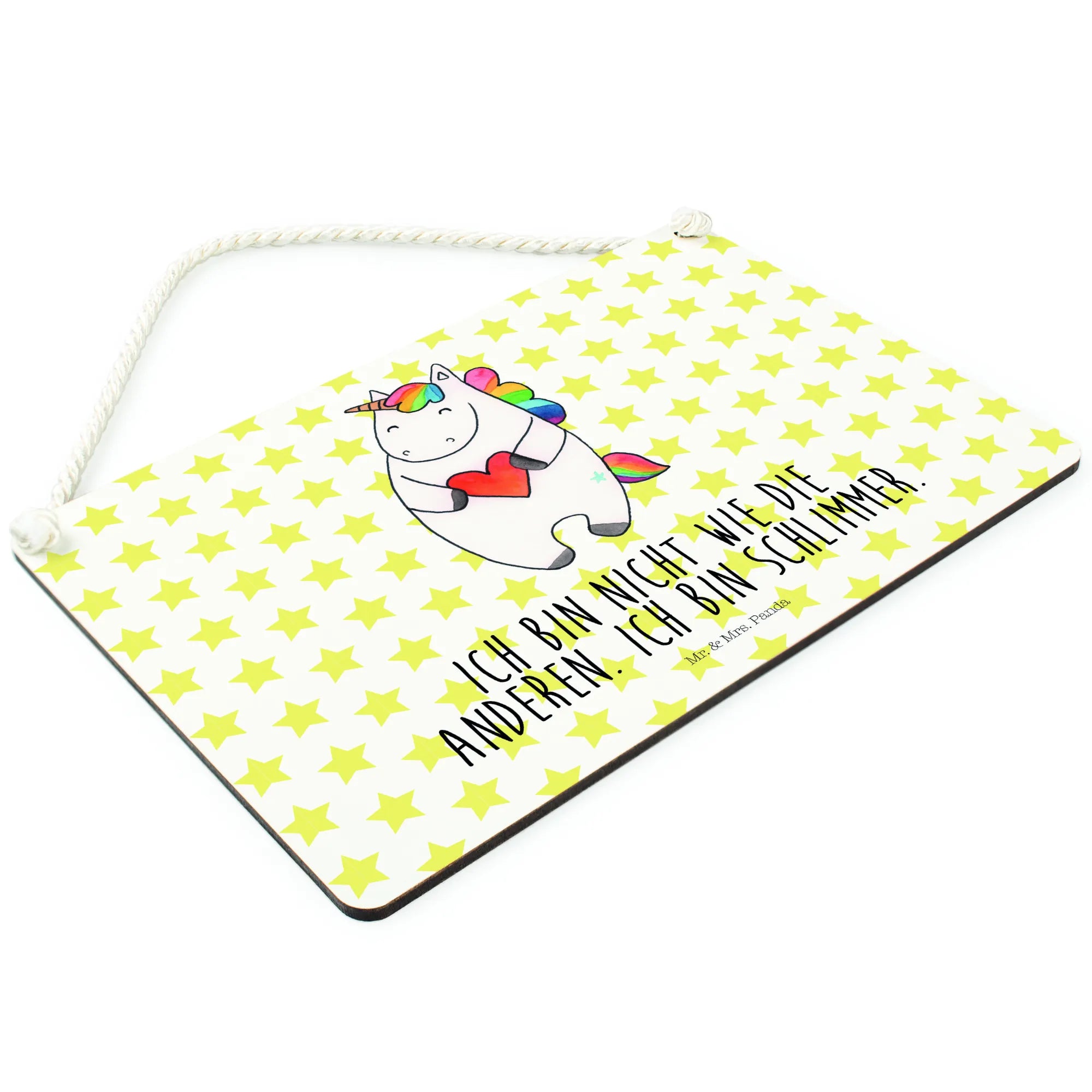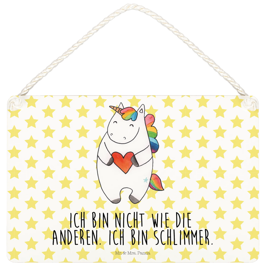 Dekoracyjny znak Jednorożec serce - DIN A5 - z napisem - biały