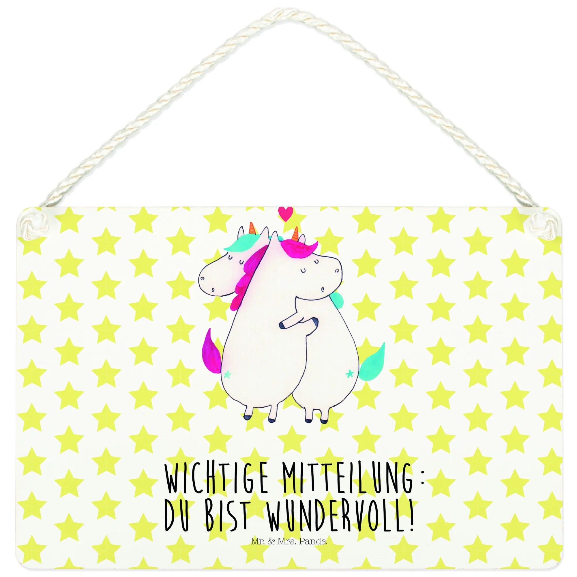 Dekoracyjny znak jednorożec Wiadomość - DIN A5 - z napisem - biały