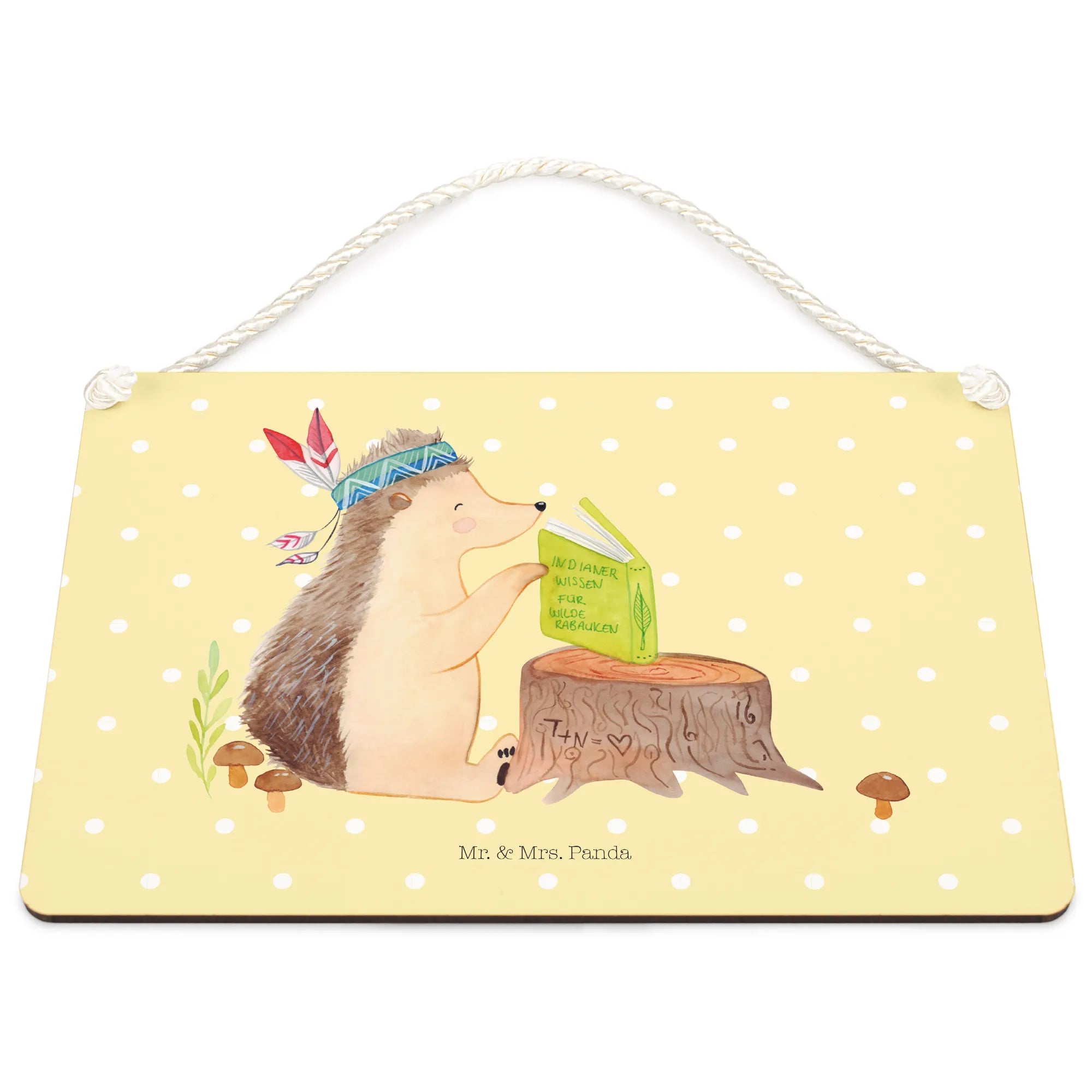 Dekoracyjny znak jeż Ozdoba z piór - z napisem - biały