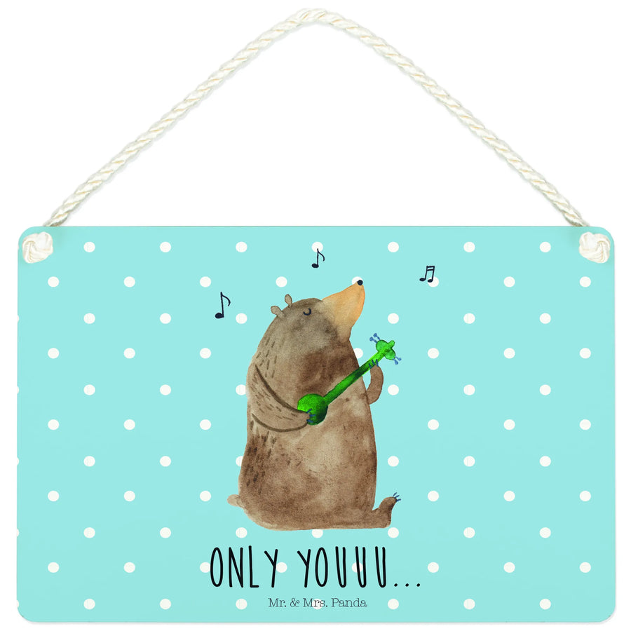 Dekoracyjny znak niedźwiedź Gitara - z napisem - Pastelowy niebieski