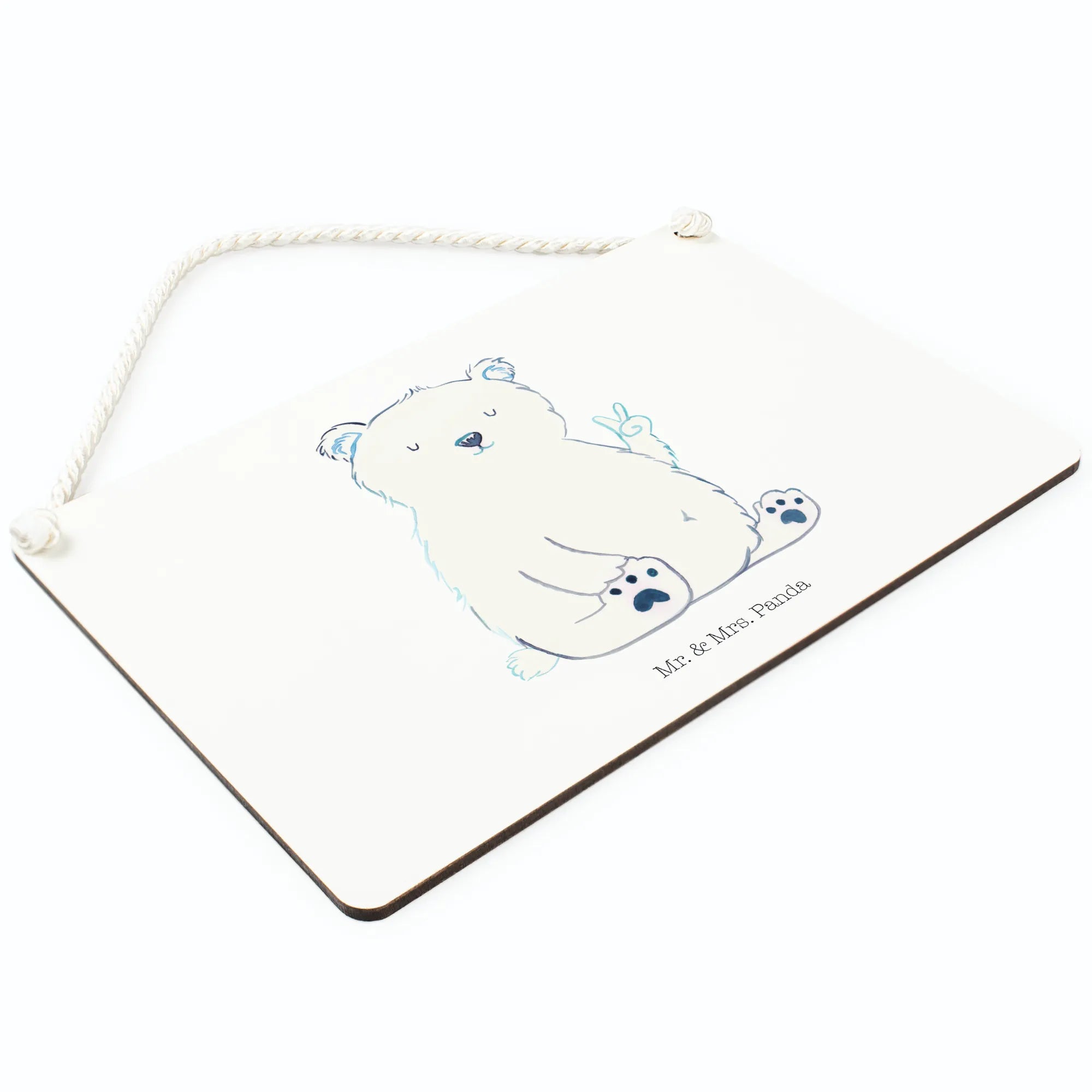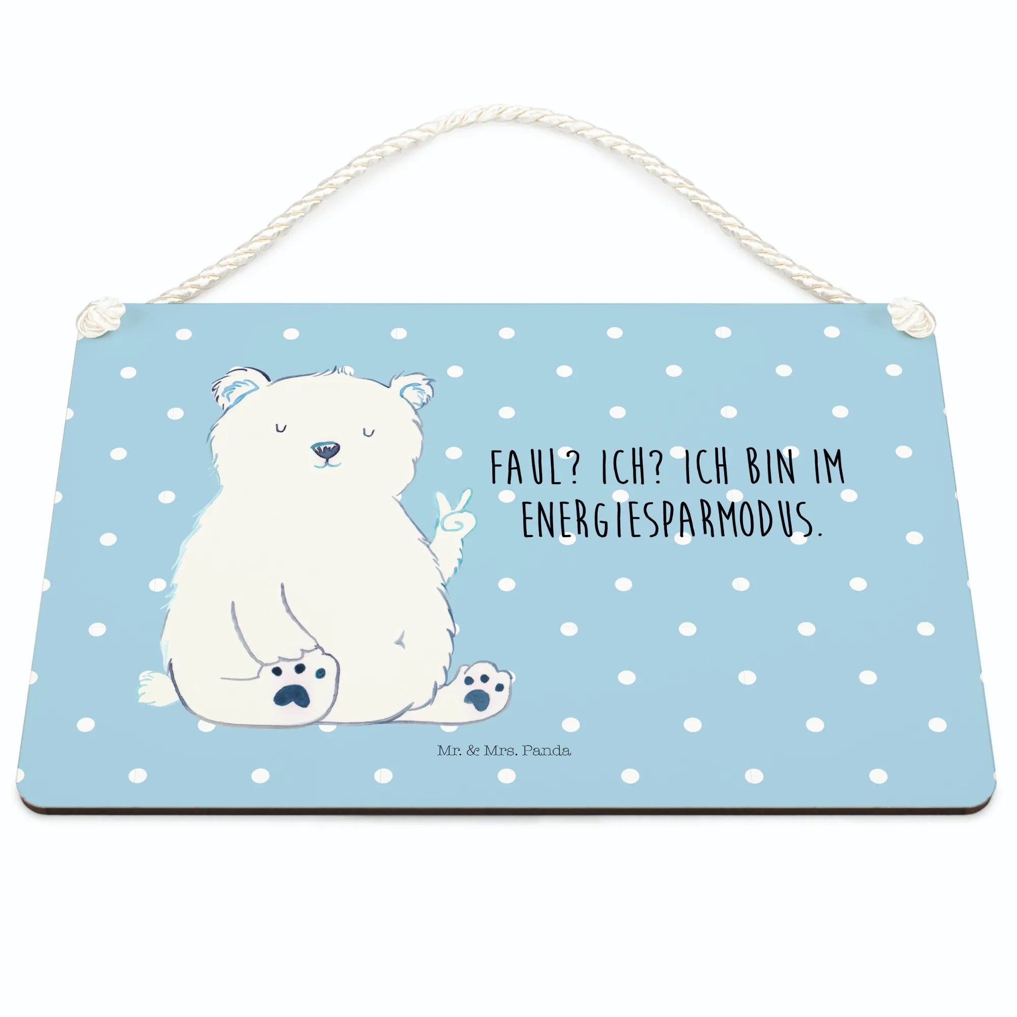 Dekoracyjny znak Niedźwiedź polarny leniwy - z napisem - Pastelowy niebieski