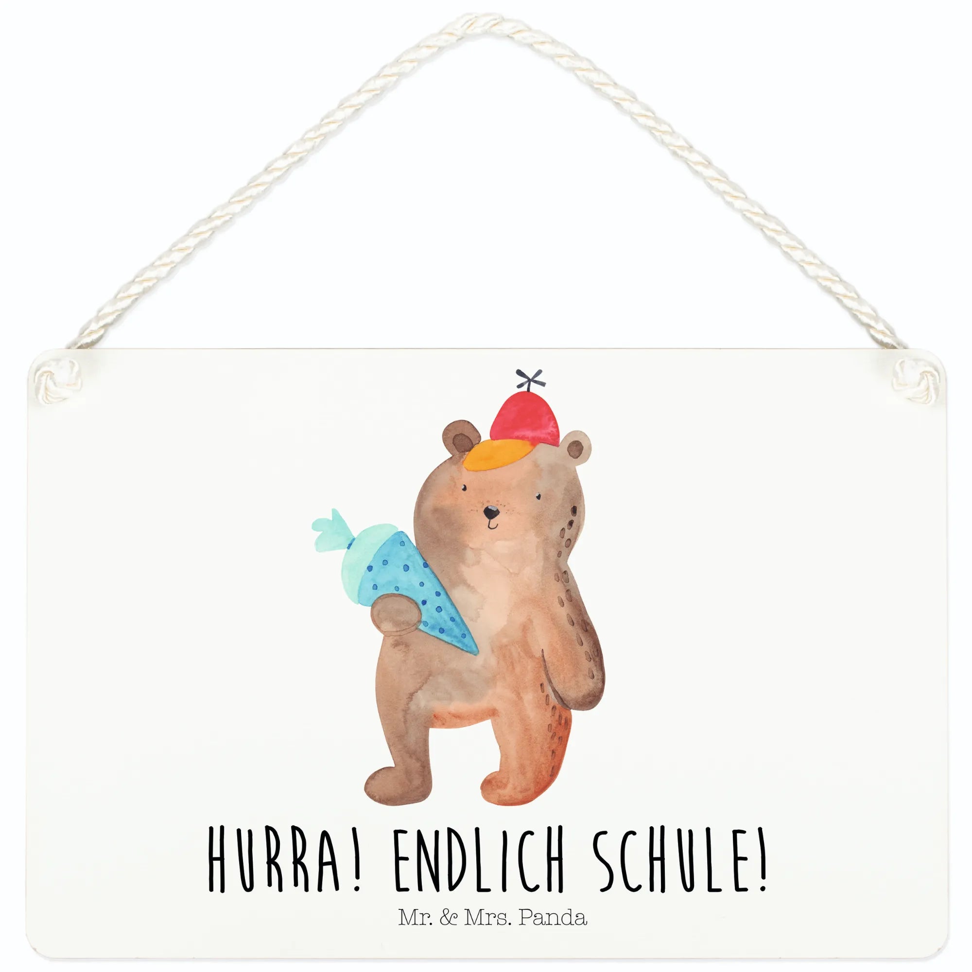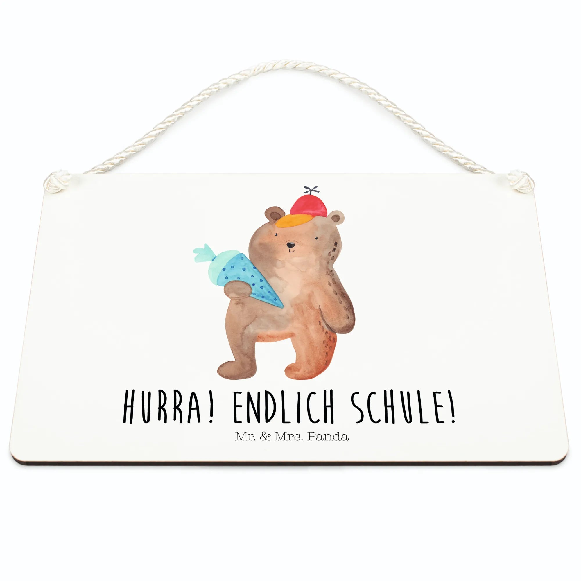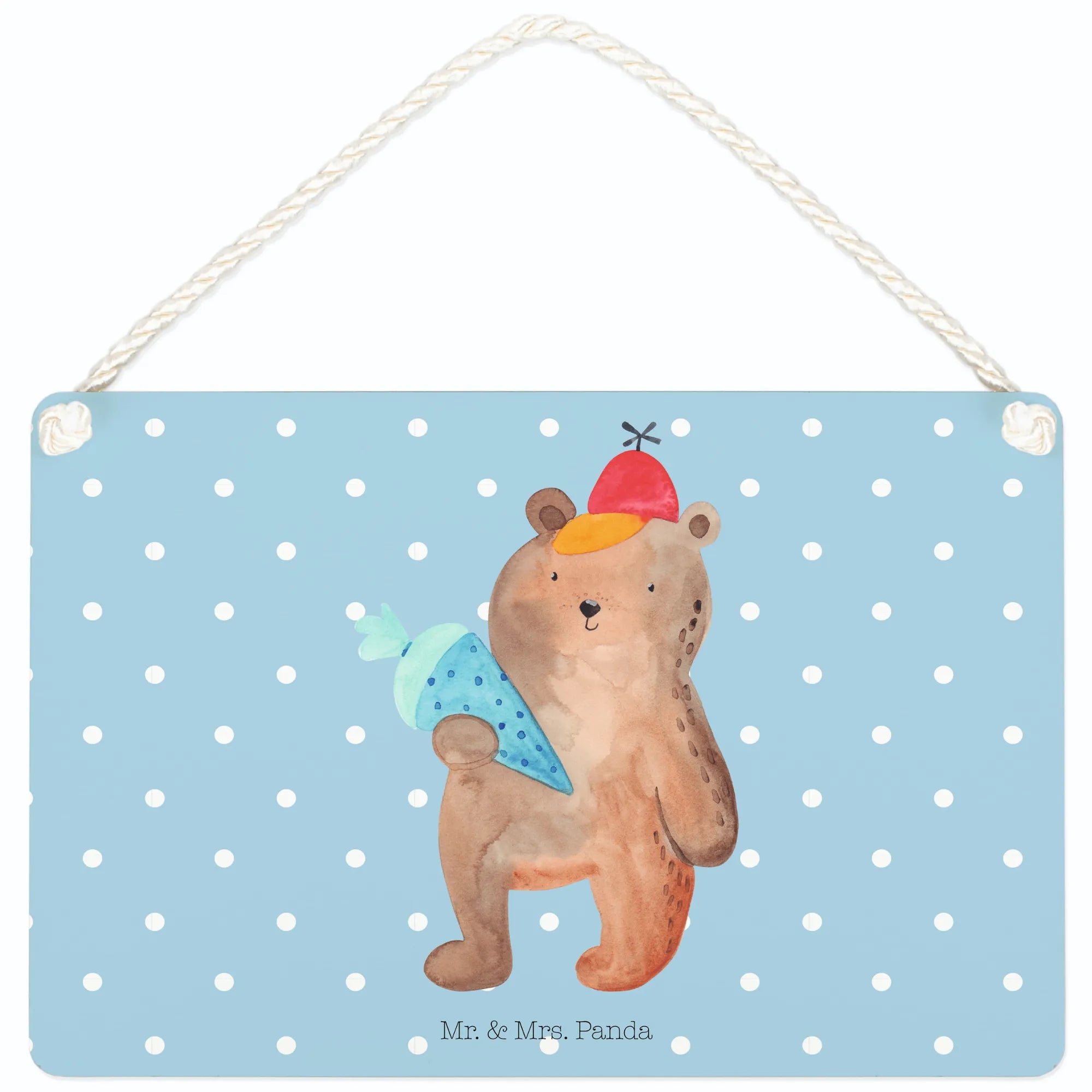 Dekoracyjny znak Niedźwiedź Torebka szkolna - z napisem - Pastelowy niebieski