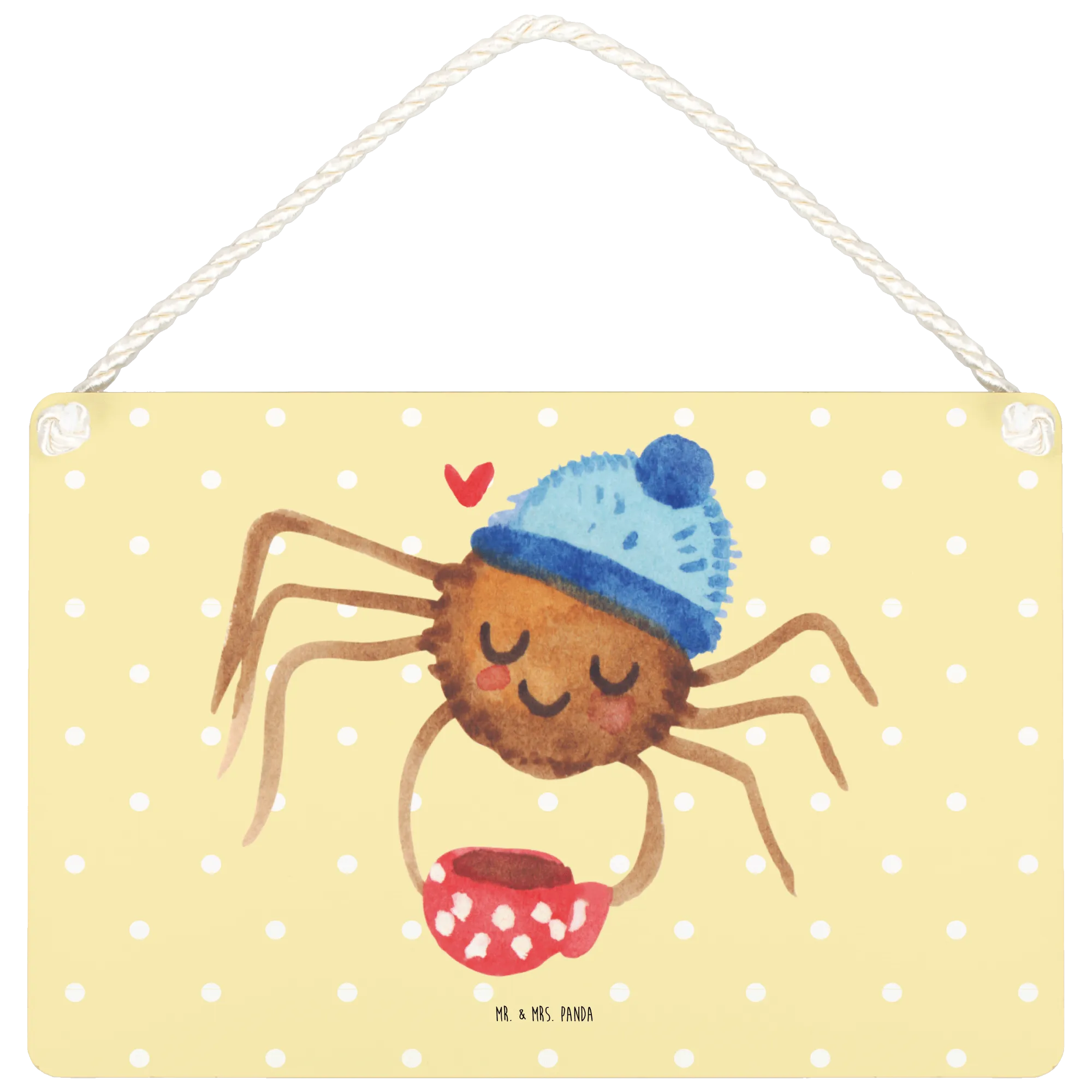Entdecke das bezaubernde Deko Schild 'Spinne Agathe Kaffee' aus der beliebten Spinne Agathe Kollektion von Mr. & Mrs. Panda! Dieses handgefertigte Holzschild zeigt die süße Spinne Agathe, die gemütlich ihren Kaffee genießt, während sie mit einer wolligen Mütze ihre kleine Kaffee-Pause einlegt. Das fröhliche Motiv, kombiniert mit dem pastellgelben Hintergrund, bringt einen Hauch von Lebensfreude in jeden Raum.