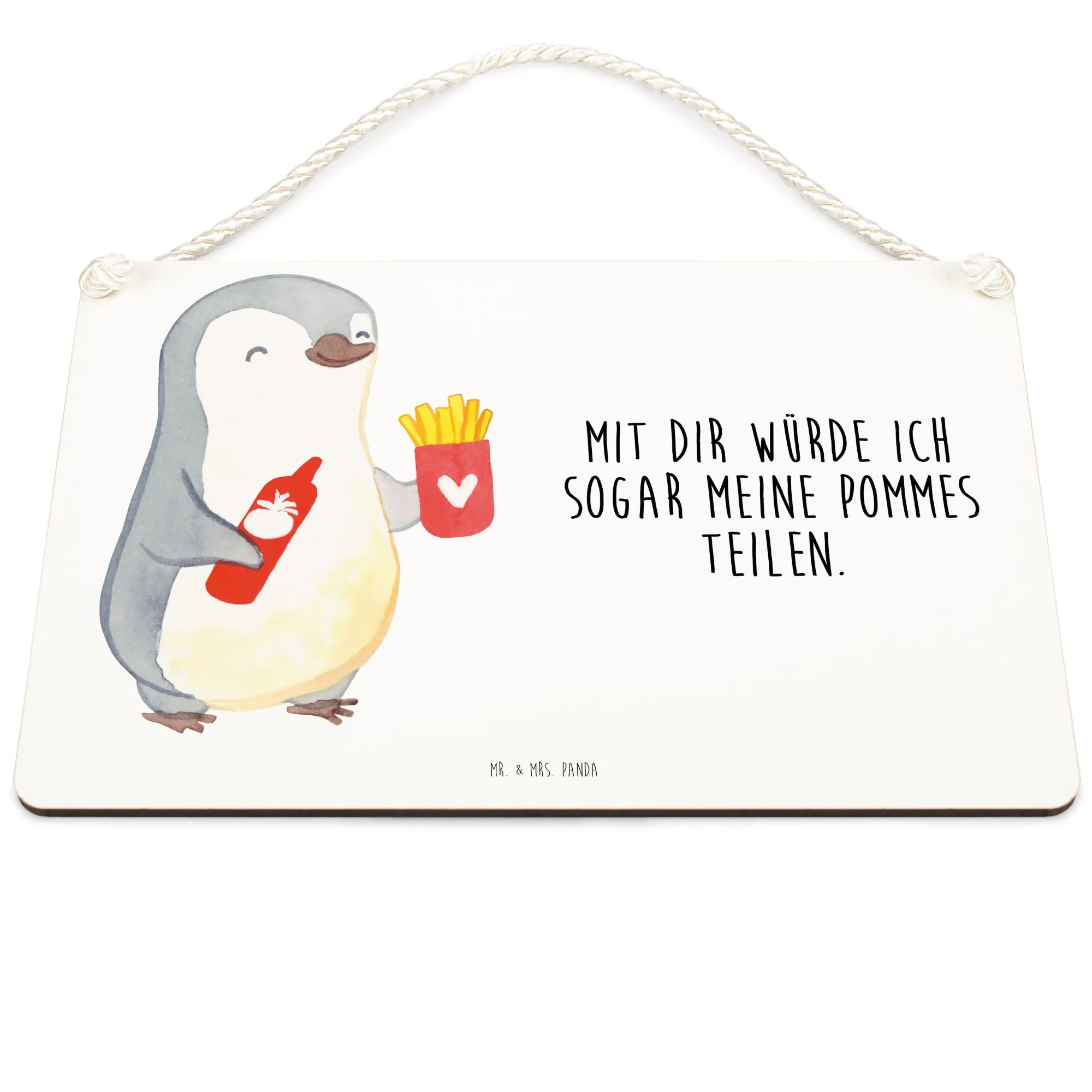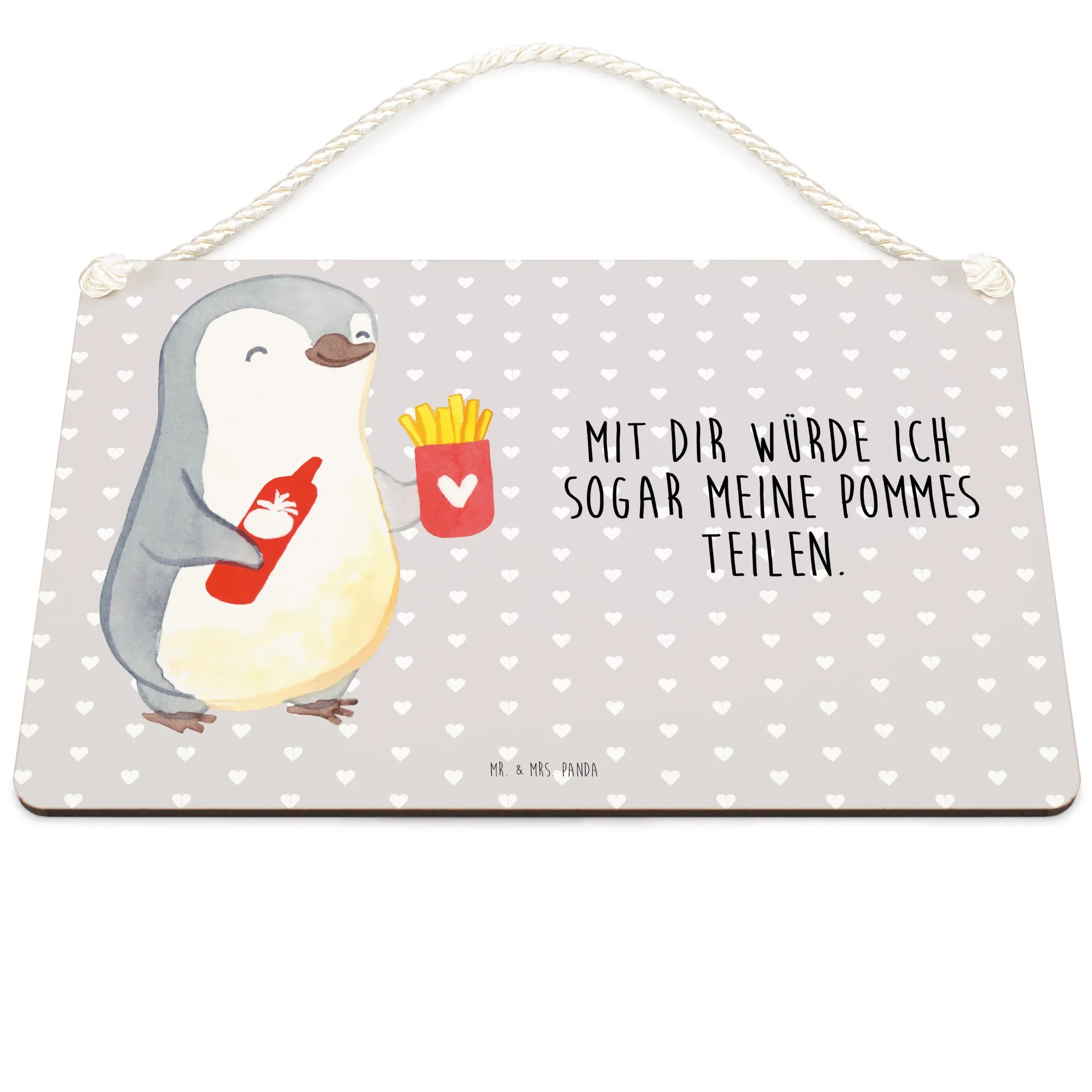 Dekoracyjny znak pingwin frytki - DIN A5 - Pastelowy szary