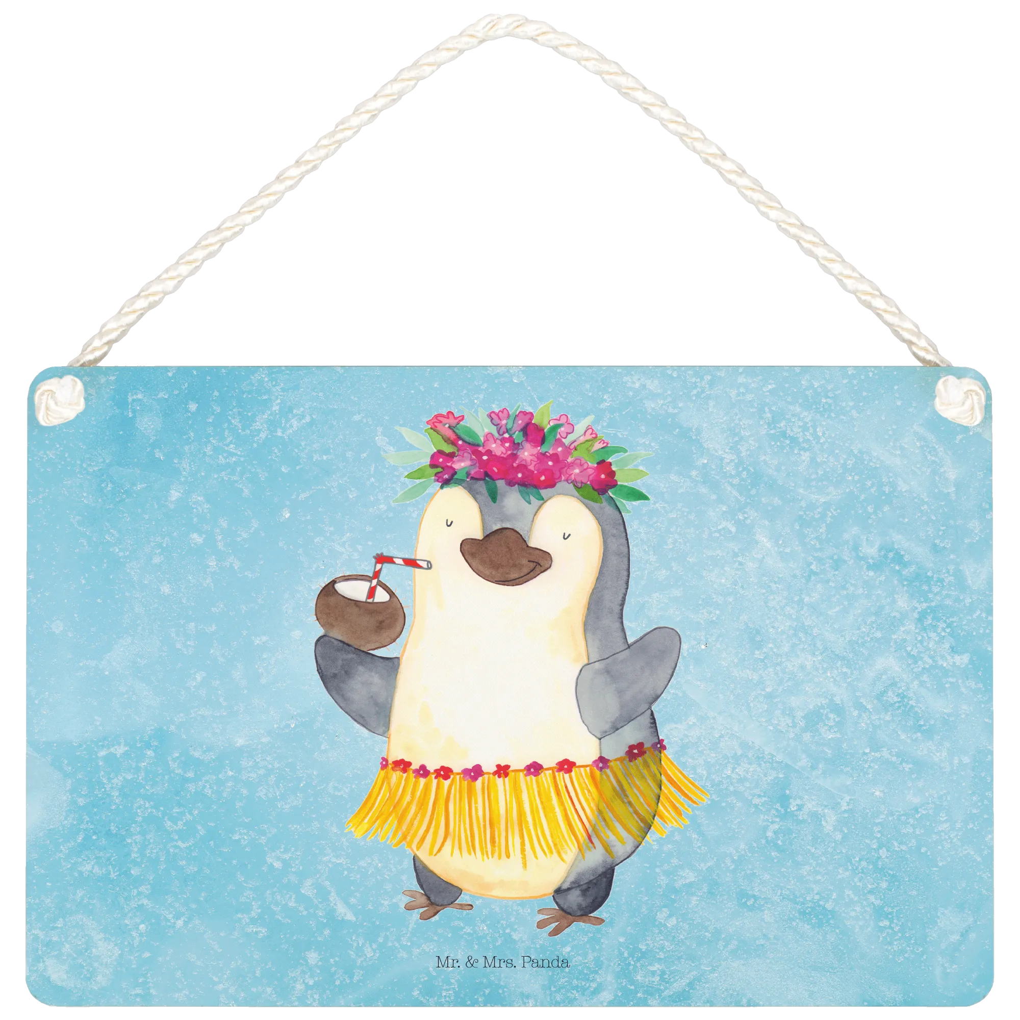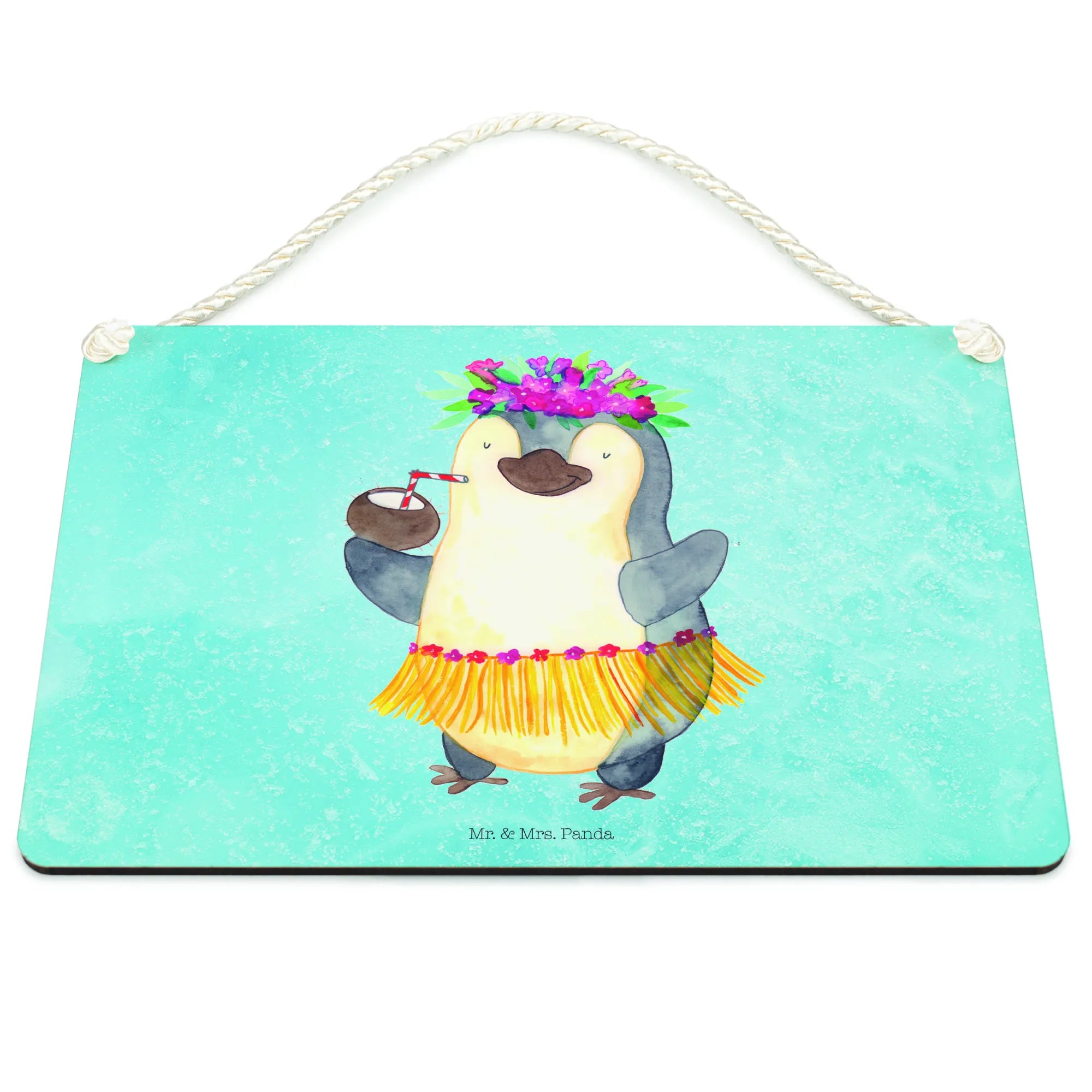 Dekoracyjny znak Pingwin z Kokosem - DIN A5 - z napisem - biały