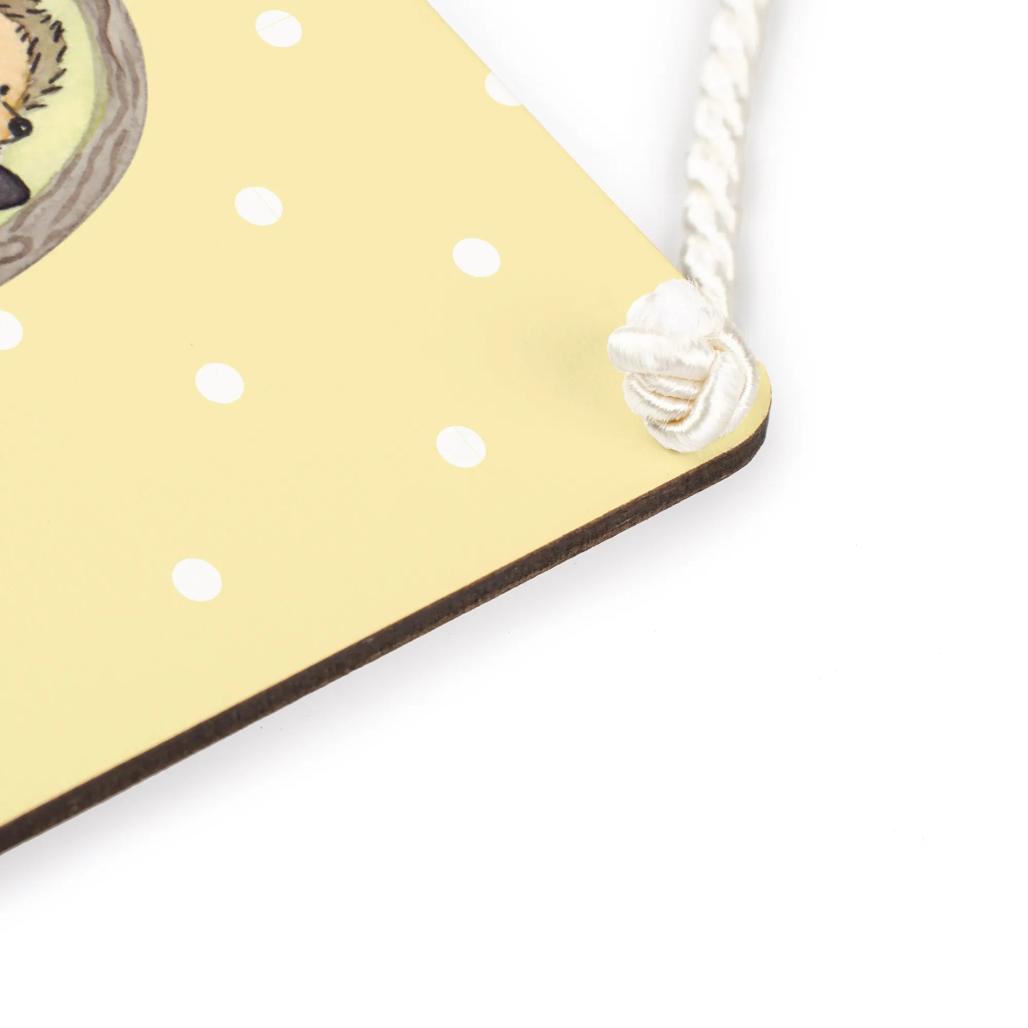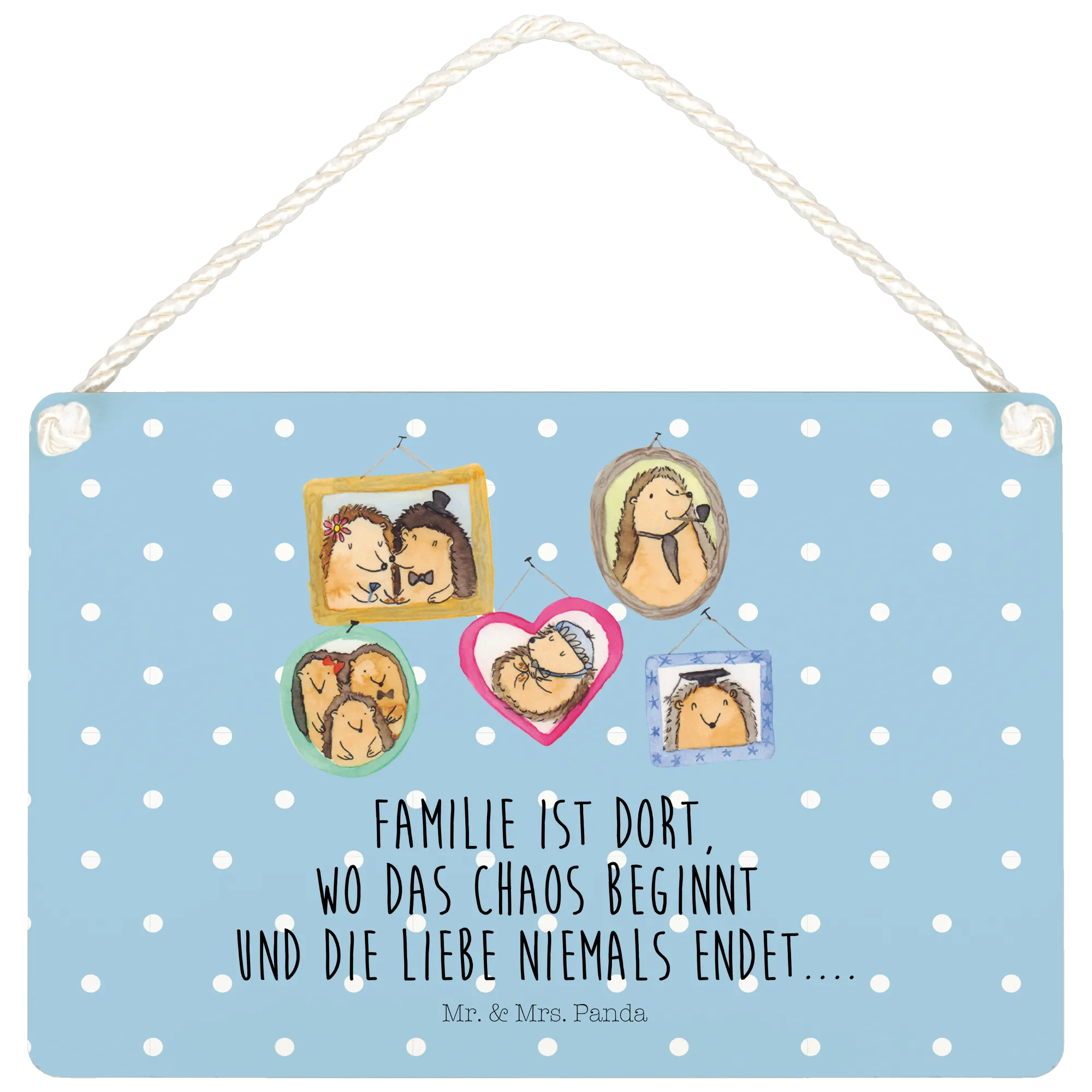 Dekoracyjny znak Rodzina jeży - DIN A5 - z napisem - biały