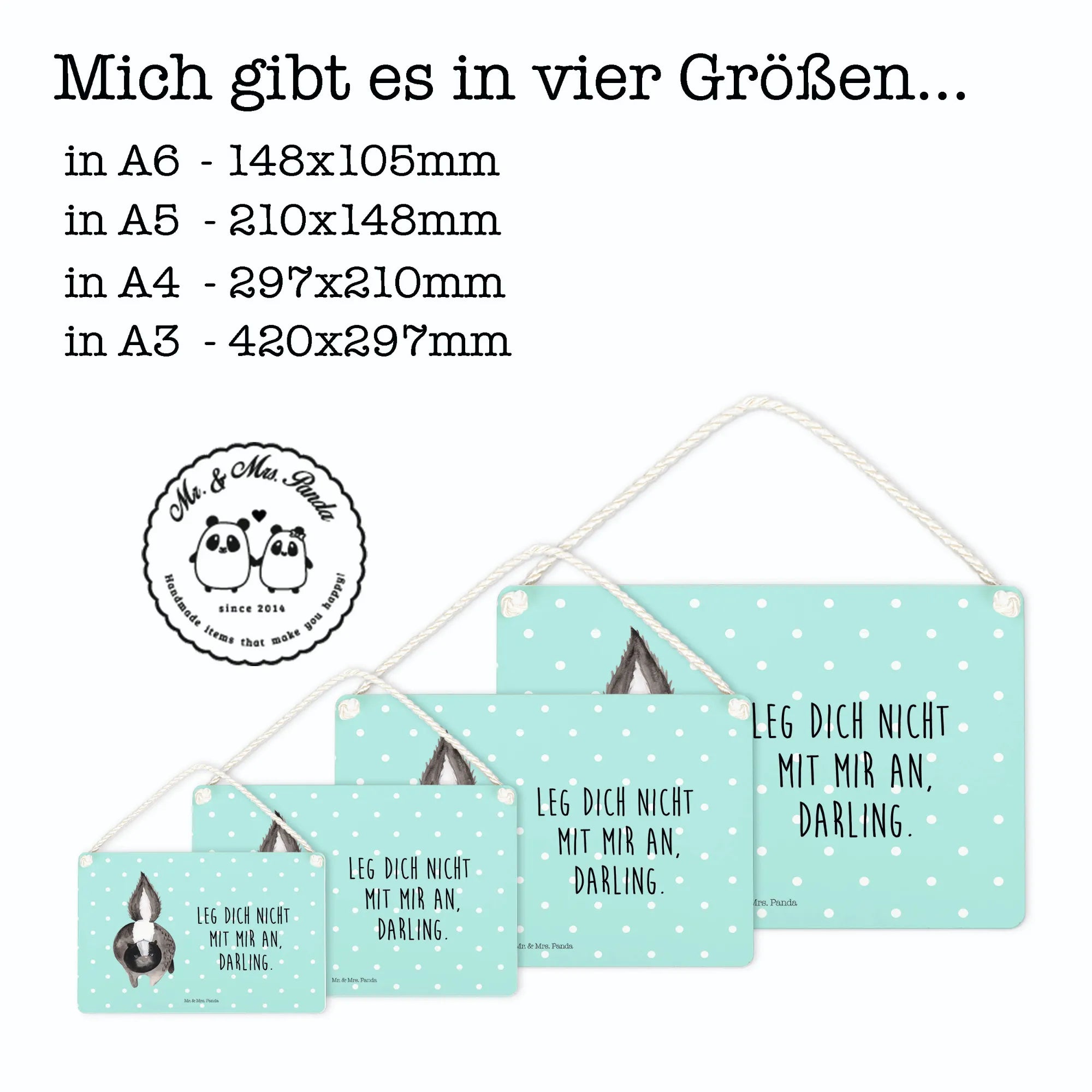 Das Deko Schild "Stinktier Angriff" aus der Stinktier-Kollektion von Mr. & Mrs. Panda ist das perfekte Geschenk für all jene, die ein wenig humorvolle und niedliche Deko in ihr Zuhause bringen möchten. Mit einem charmant gezeichneten Stinktier, das drohend mit seinem buschigen Schwanz in die Luft aufbaut, bietet dieses Schild nicht nur eine originelle Wanddekoration, sondern auch ein Statement für jeden Eingangsbereich. Der eingängige Spruch "Leg dich nicht mit mir an, Darling." sorgt für Schmunzeln und lässt die Gäste sofort wissen, dass sie hier mit einem ganz besonderen Haushalt zu tun haben.