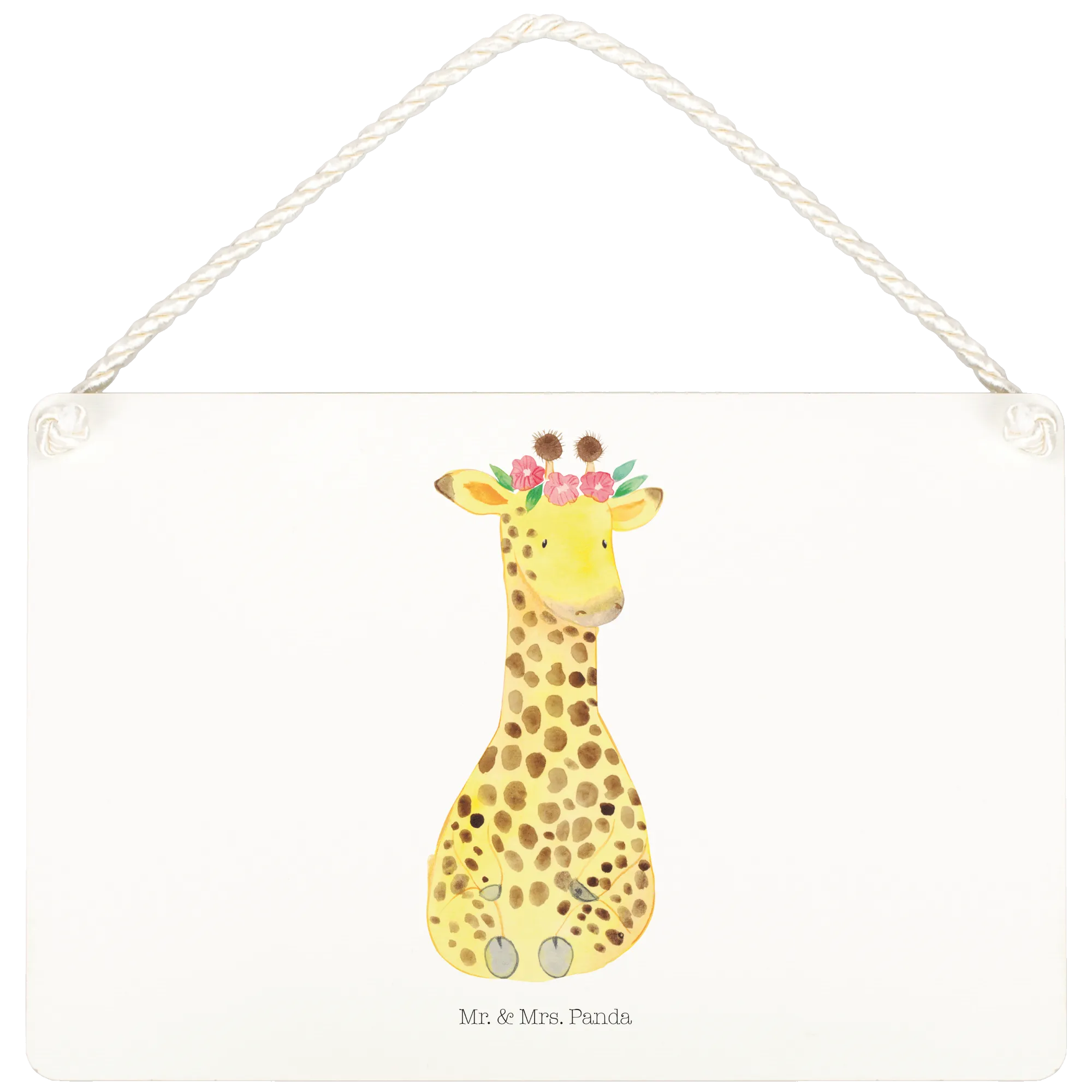Dekoracyjny znak żyrafa Wieniec kwiatów - DIN A5 - z napisem - biały