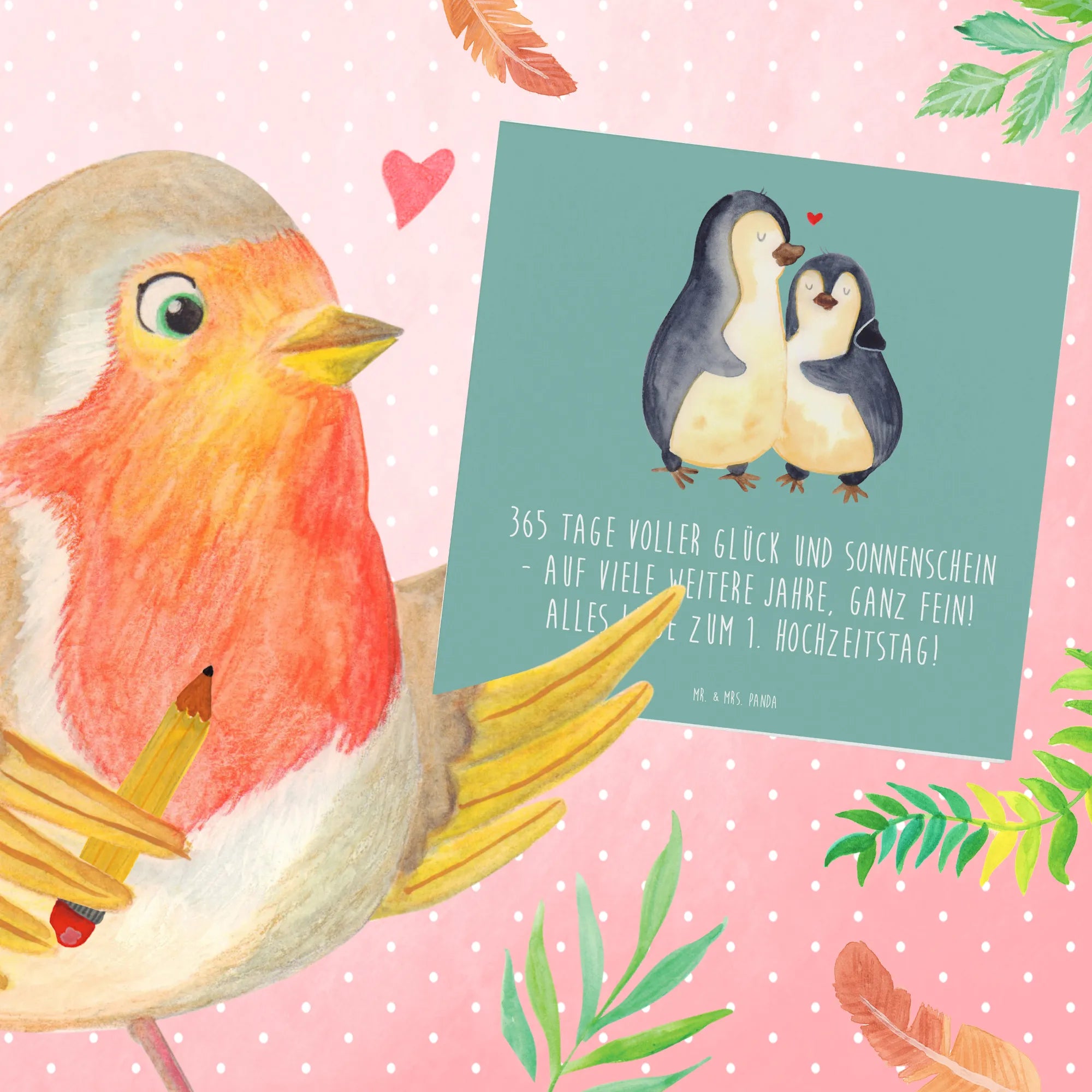 Was diese Karte besonders einzigartig macht, ist nicht nur das herzerwärmende Design, sondern auch die Liebe, die in jedem Detail steckt. Sie eignet sich nicht nur für den ersten Hochzeitstag, sondern auch für andere feierliche Anlässe wie Jubiläen, Verabschiedungen oder Geburtstage. Verschenke einen Teil deiner Liebe und mache einem Paar eine Freude mit dieser wundervollen Karte, die sicherlich strahlende Augen hervorbringen wird. Mr. & Mrs. Panda stehen für Qualität und Einzigartigkeit, und unsere Produkte sind das perfekte Beispiel dafür. Lass diese Karte zu einem Teil der unvergesslichen Erinnerungen des Paares werden und feiere die Liebe in ihrer schönsten Form.