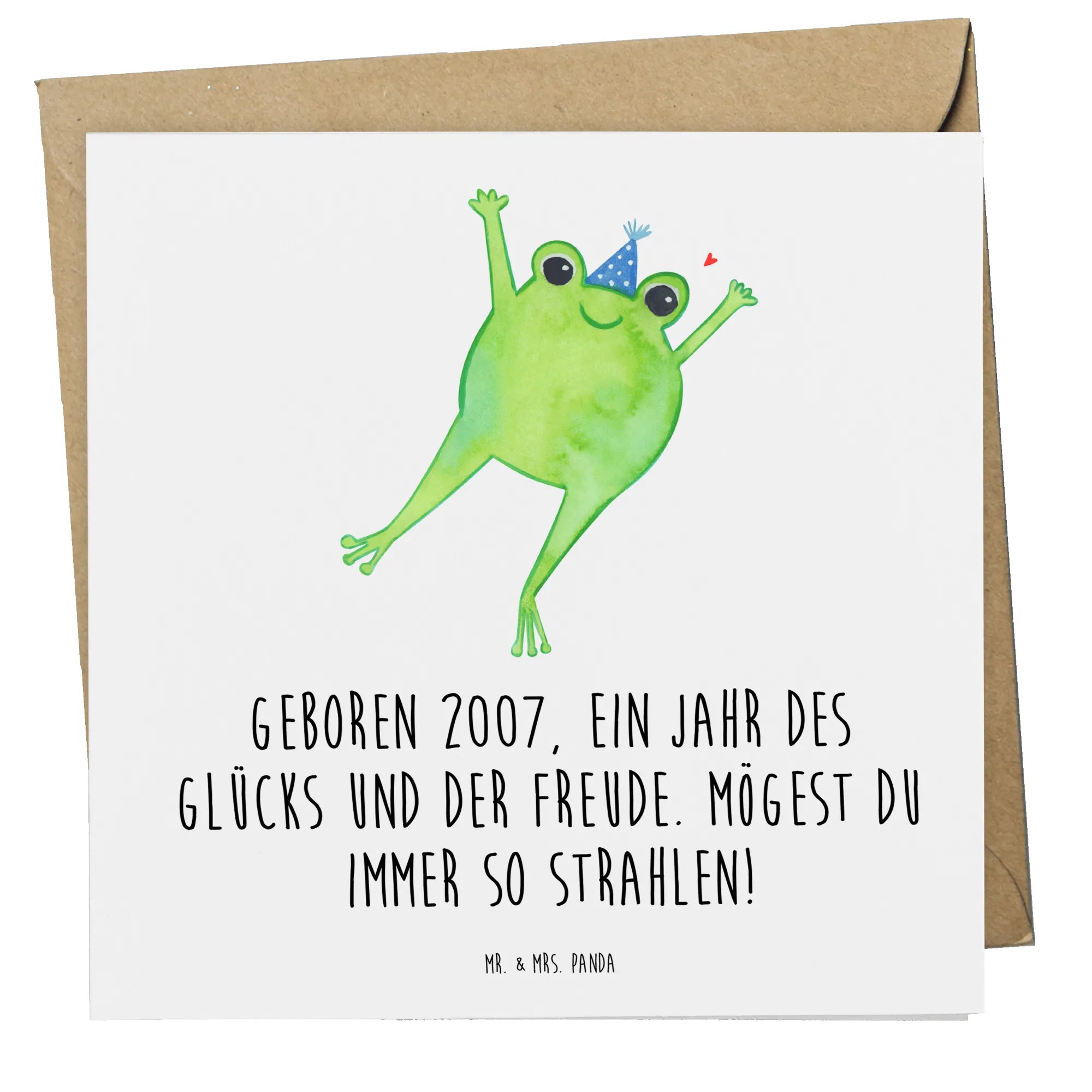 Die Deluxe Karte 'Geburtstag 2007' von Mr. & Mrs. Panda ist das perfekte Geschenk für jeden, der im Jahr 2007 das Licht der Welt erblickte. Mit einem wunderschön gestalteten Motiv und dem liebevollen Slogan 'Geboren 2007, ein Jahr des Glücks und der Freude. Mögest du immer so strahlen!' bringt diese Karte Freude und gute Wünsche zur Feier eines besonderen Geburtstags.
