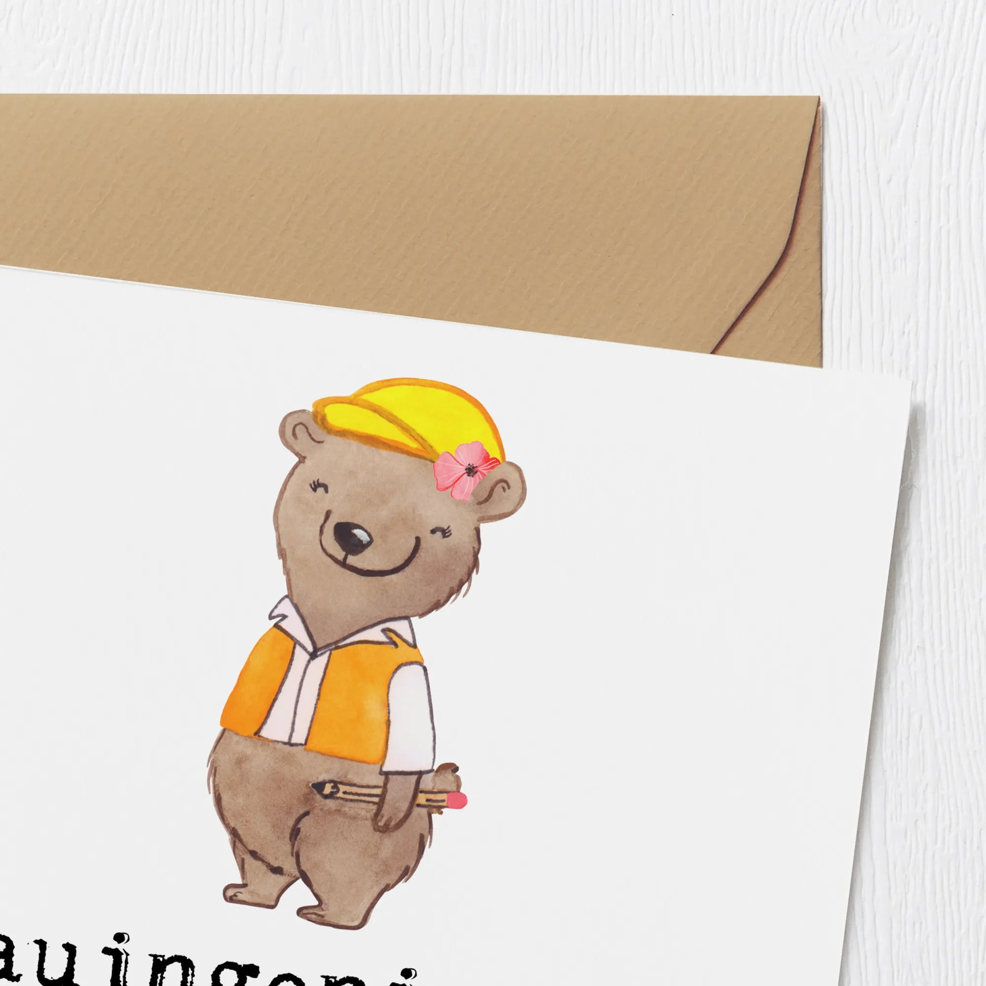 Die Deluxe Karte "Bauingenieurin aus Leidenschaft" von Mr. & Mrs. Panda ist das perfekte Geschenk für alle Bauingenieurinnen und -ingenieure. Ob zum Studienabschluss, zur Beförderung oder einfach als kleine Aufmerksamkeit zwischendurch, mit dieser Karte machst du jeder Bauingenieurin eine ganz besondere Freude. Diese hochwertige Klappkarte aus edlem 300 Gramm Karton ist sowohl optisch als auch haptisch ein Genuss.