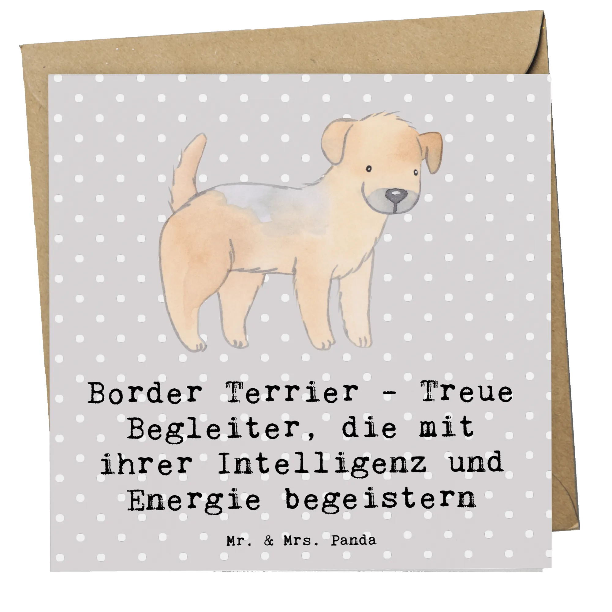 Die Deluxe Karte mit dem Motiv des Border Terriers ist das perfekte Geschenk für alle Hundefans und Liebhaber dieser wunderbaren Hunderasse. Mit ihrem treuen Blick und dem bezaubernden Slogan "Border Terrier - Treue Begleiter, die mit ihrer Intelligenz und Energie begeistern" bringt diese Karte Freude und Sympathie. Diese hochwertige Klappkarte von Mr. & Mrs. Panda misst 140 mm x 140 mm und ist aus edlem 300 Gramm Karton gefertigt, was sie besonders stabil und langlebig macht. Der edel glänzende Druck auf der Vorderseite zieht alle Blicke an und setzt das süße Motiv perfekt in Szene.