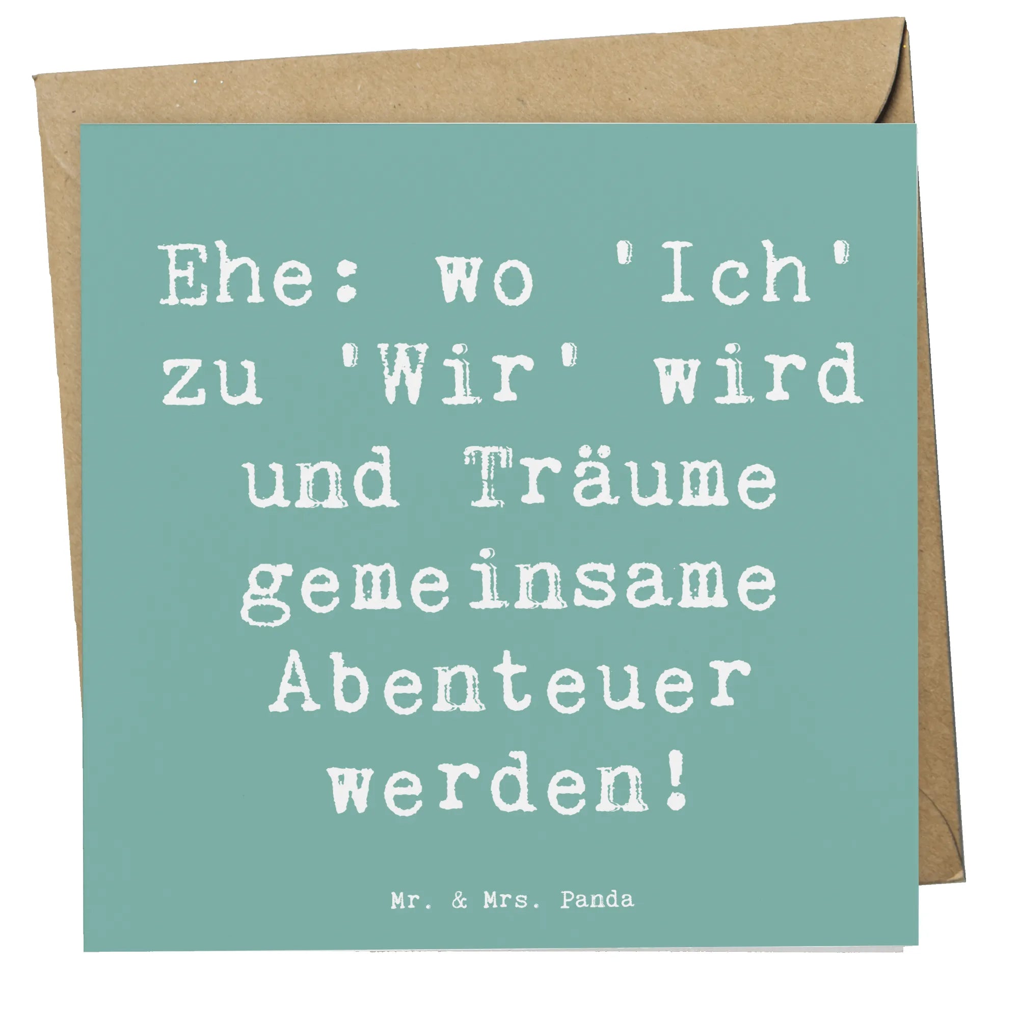 Die Deluxe Karte zur Hochzeitsfeier von Mr. & Mrs. Panda ist das perfekte Geschenk für all diejenigen, die einem frisch vermählten Paar ihre besten Wünsche übermitteln möchten. Ob als Glückwunschkarte zur Hochzeit oder als liebevolle Einladungskarte zu einem unvergesslichen Fest, diese hochwertige Klappkarte ist vielseitig einsetzbar. Mit dem besonderen Motiv 'Hochzeitsfeier' und dem romantischen Spruch 'Ehe: wo 'Ich' zu 'Wir' wird und Träume gemeinsame Abenteuer werden!', trifft sie genau den richtigen Ton für den schönsten Tag im Leben.