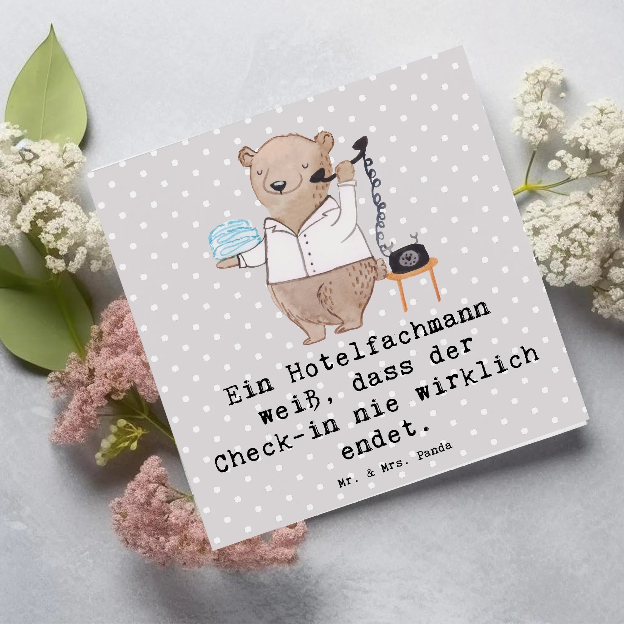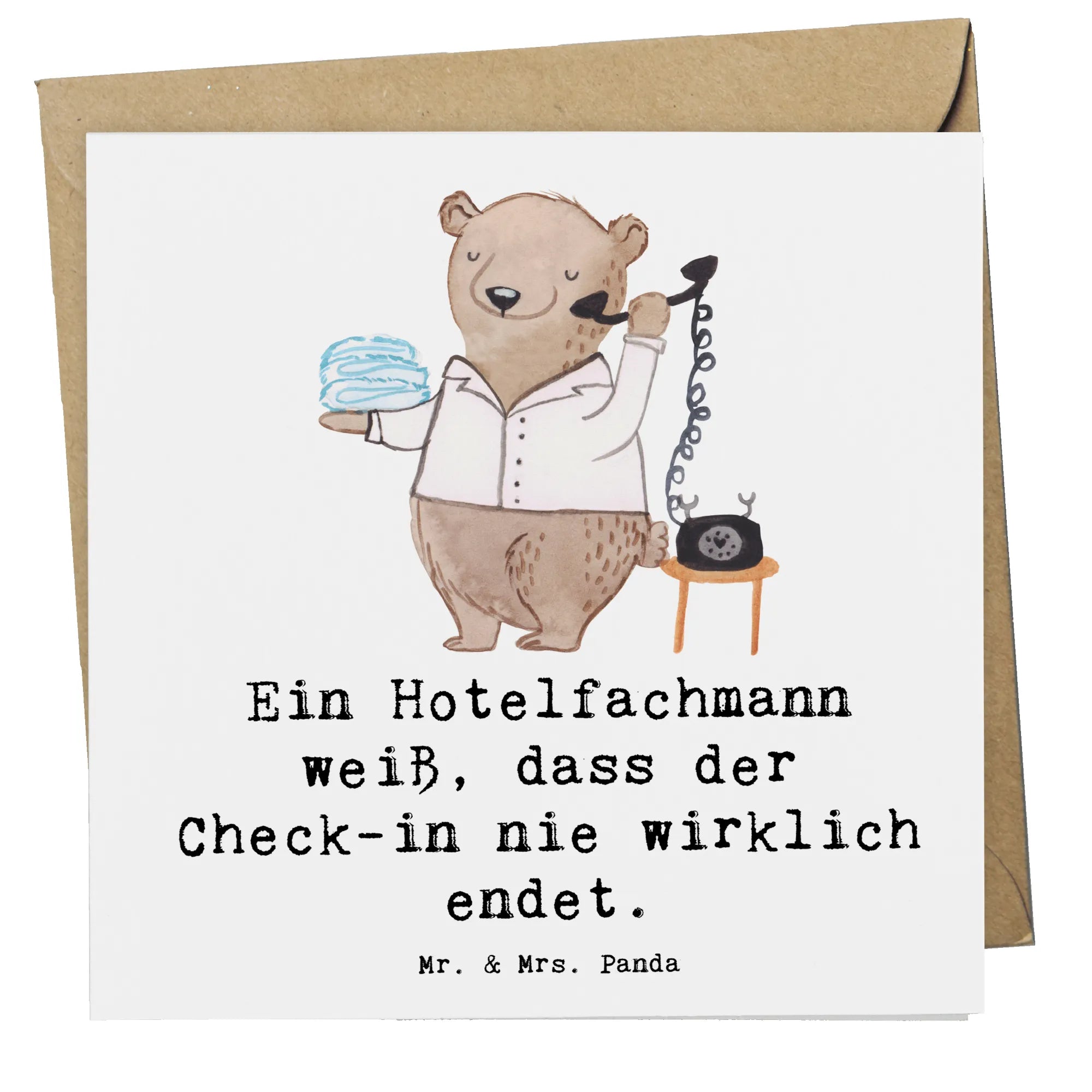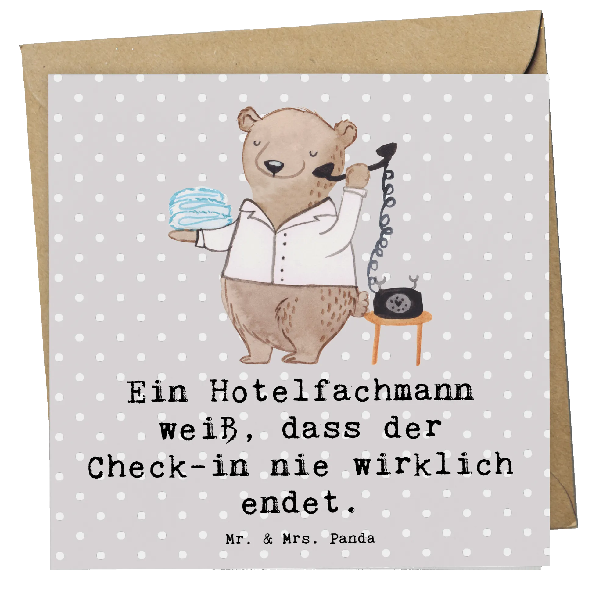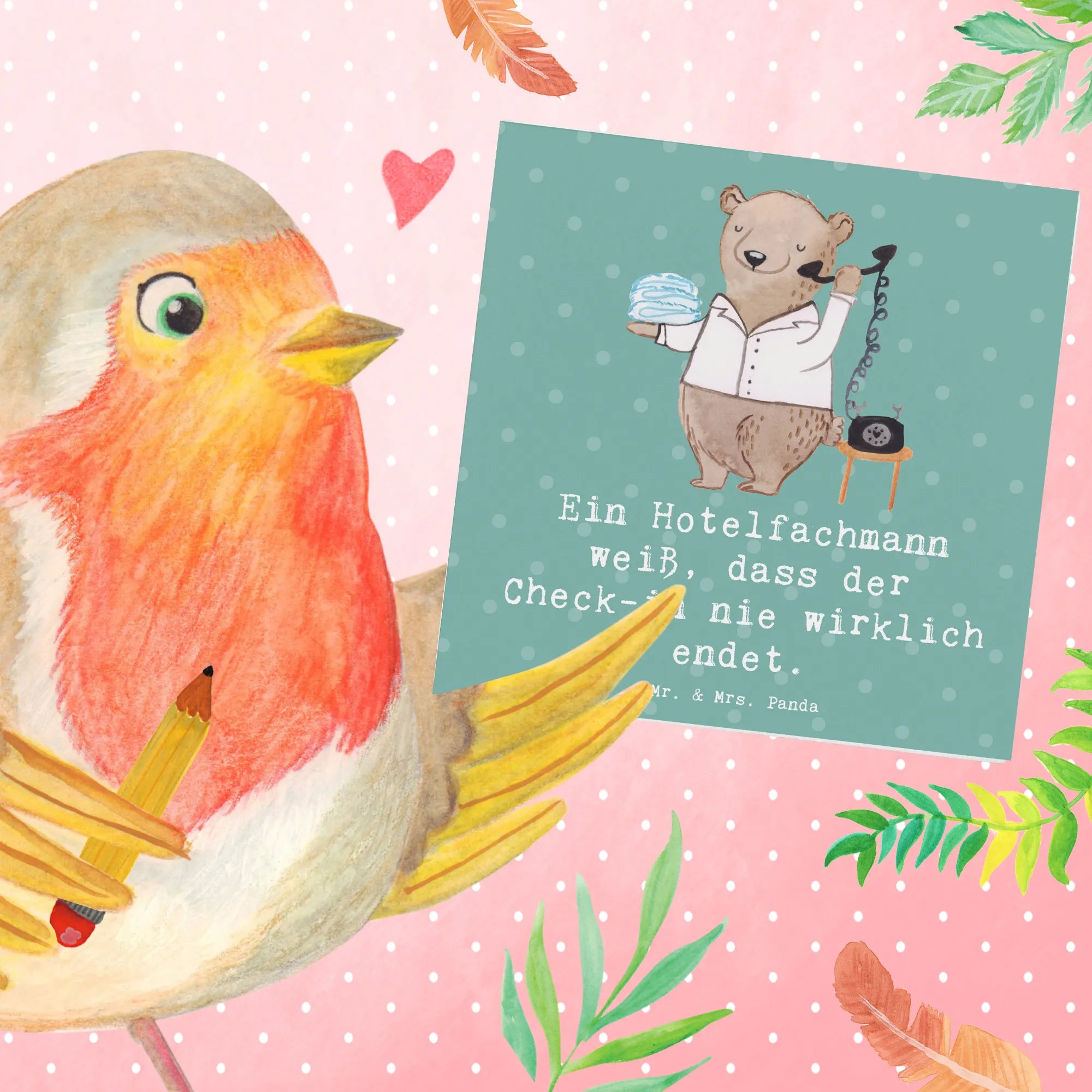 Die Deluxe Karte Hotelfachmann von Mr. & Mrs. Panda ist das perfekte Geschenk für all diejenigen, die in der aufregenden Welt der Gastronomie und Hotellerie arbeiten oder eine besondere Verbindung zu diesem Beruf haben. Mit einem originellen und liebevoll gestalteten Motiv strahlt diese Karte Charme und Persönlichkeit aus. Mit dem Spruch „Ein Hotelfachmann weiß, dass der Check-in nie wirklich endet“ wird das einzigartige Wesen dieses Berufs eindrucksvoll hervorgehoben.