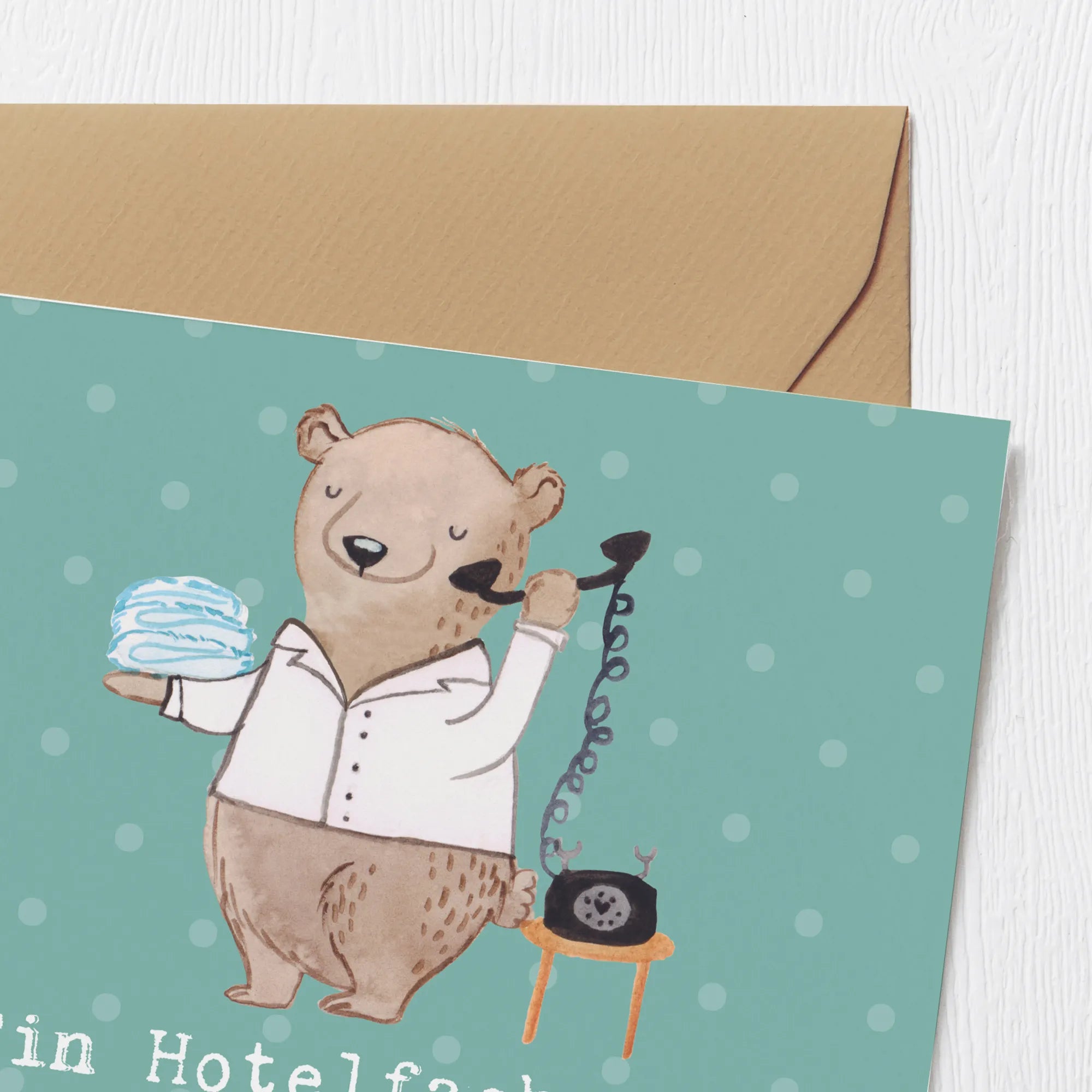 Die Deluxe Karte Hotelfachmann aus der liebevollen Berufe-Kollektion von Mr. & Mrs. Panda ist das perfekte Geschenk für alle, die im Hotel- und Gastgewerbe arbeiten oder eine Leidenschaft für diese Branche haben. Sie misst 140 mm x 140 mm und ist aus hochwertigem 300 Gramm Karton gefertigt, was ihr ein edles und ansprechendes Aussehen verleiht.