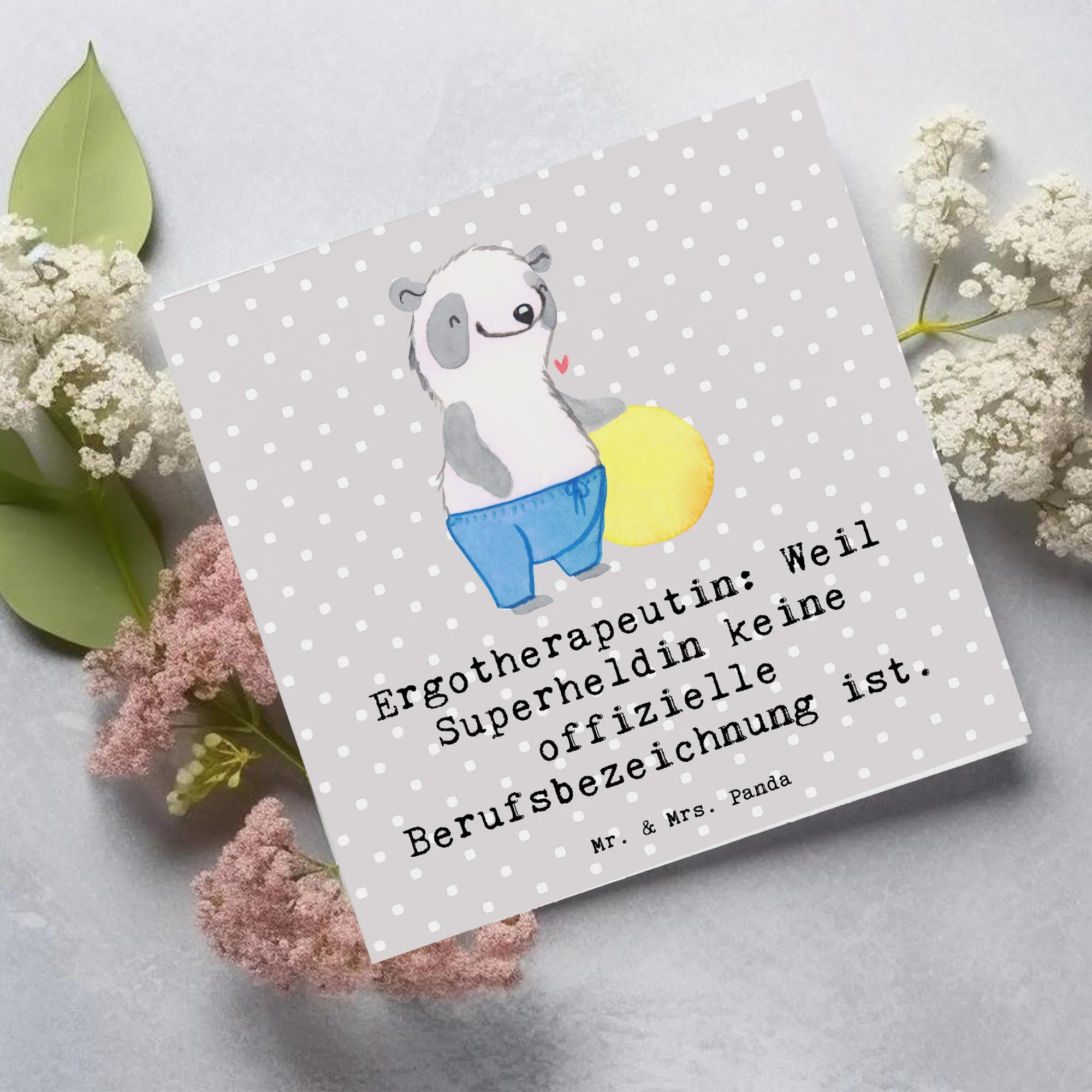 Die Deluxe Karte für Ergotherapeutinnen von Mr. & Mrs. Panda ist der perfekte Begleiter für jede Gelegenheit. Mit einem liebevollen Slogan "Ergotherapeutin: Weil Superheldin keine offizielle Berufsbezeichnung ist." ziert sie die Vorderseite. Diese wunderschöne und besonders hochwertige quadratische Karte misst 140 mm x 140 mm und wird aus edlem, matt glänzendem 300 Gramm Papier gefertigt.