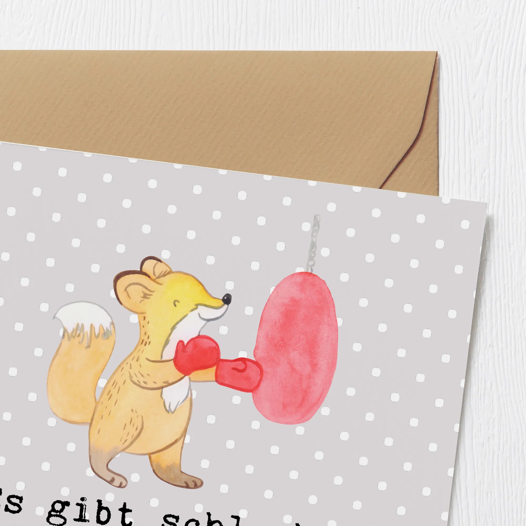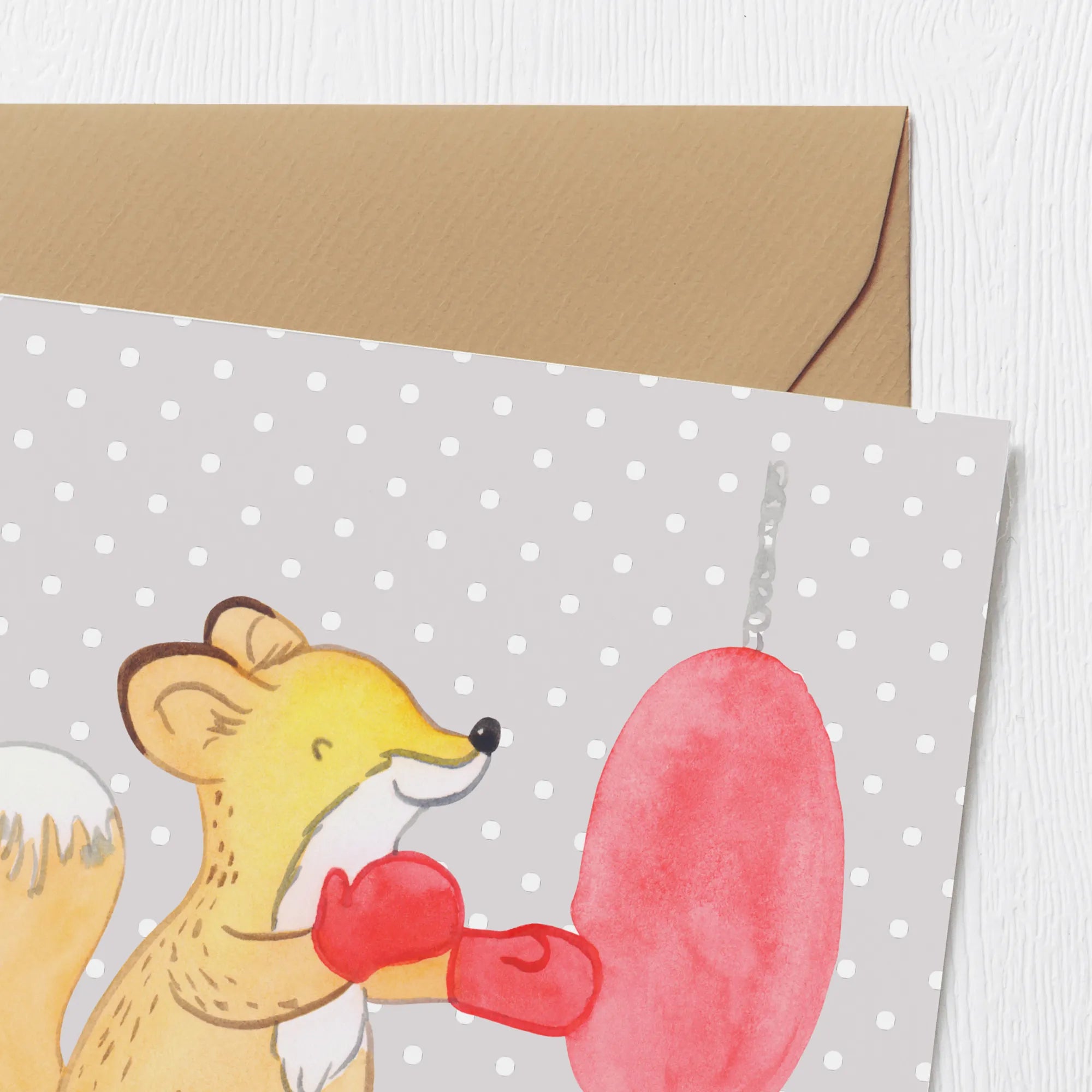 Die Deluxe Karte mit dem Motiv "Fuchs Boxen Tage" aus der Kollektion Hobby & Sport von Mr. & Mrs. Panda ist das perfekte Geschenk für alle Sportbegeisterten und Boxfans! Diese wunderschöne, quadratische Karte aus hochwertigem Karton macht jeden feierlichen Anlass noch besonderer.