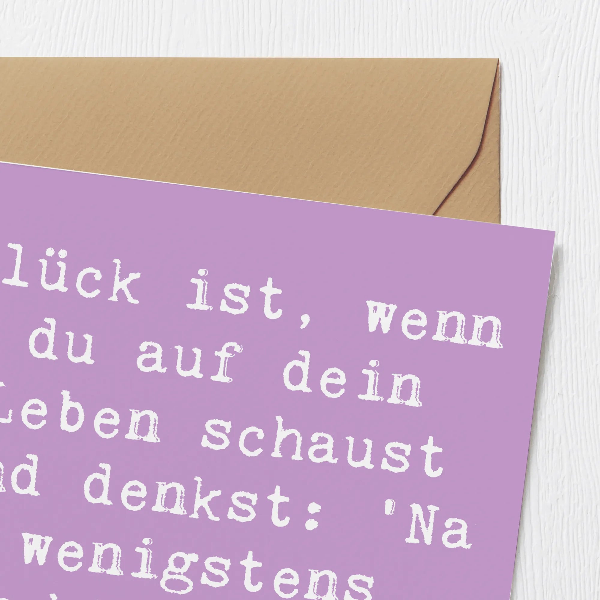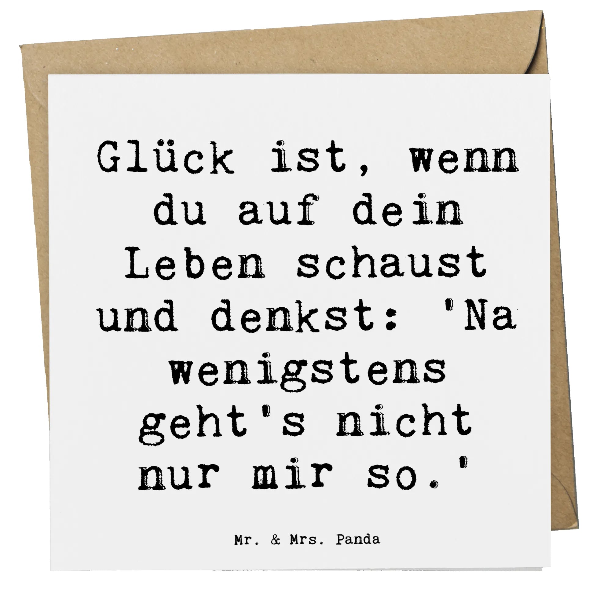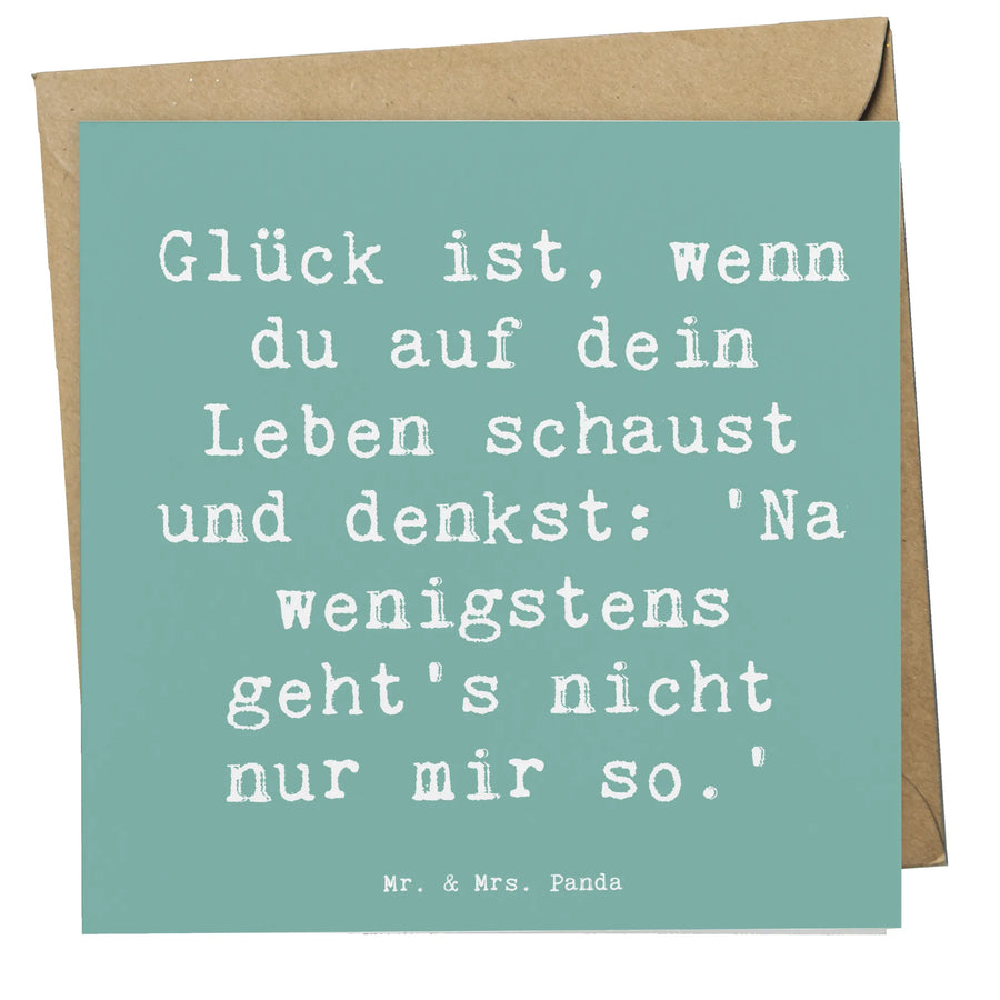 Die Deluxe Karte mit dem Motiv Glück aus der Kollektion Gefühle & Stimmungen von Mr. & Mrs. Panda ist der perfekte Gruß für jeden Anlass. Sie ist nicht nur wunderschön gestaltet, sondern auch aus hochwertigem 300 Gramm Karton gefertigt, was ihr eine edle und einzigartige Ausstrahlung verleiht. Der Spruch 'Glück ist, wenn du auf dein Leben schaust und denkst: 'Na wenigstens geht's nicht nur mir so.'' ist darauf liebevoll platziert und bringt jeden zum Schmunzeln.