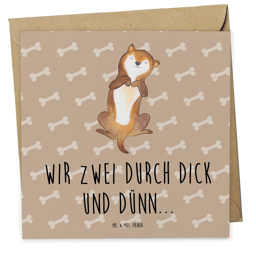 Der Spruch "Wir zwei durch dick und dünn..." auf der Vorderseite macht diese Karte besonders charmant und zeigt, wie stark die Bindung zwischen Hund und Mensch ist. Es ist eine hervorragende Möglichkeit, die Wertschätzung für die treuen Begleiter zu zeigen. Als Teil der Hunde Kollektion von Mr. & Mrs. Panda, die mit viel Liebe von Mrs. Panda entworfen wurde, ist diese Karte ein absolutes Must-Have für Tierliebhaber.