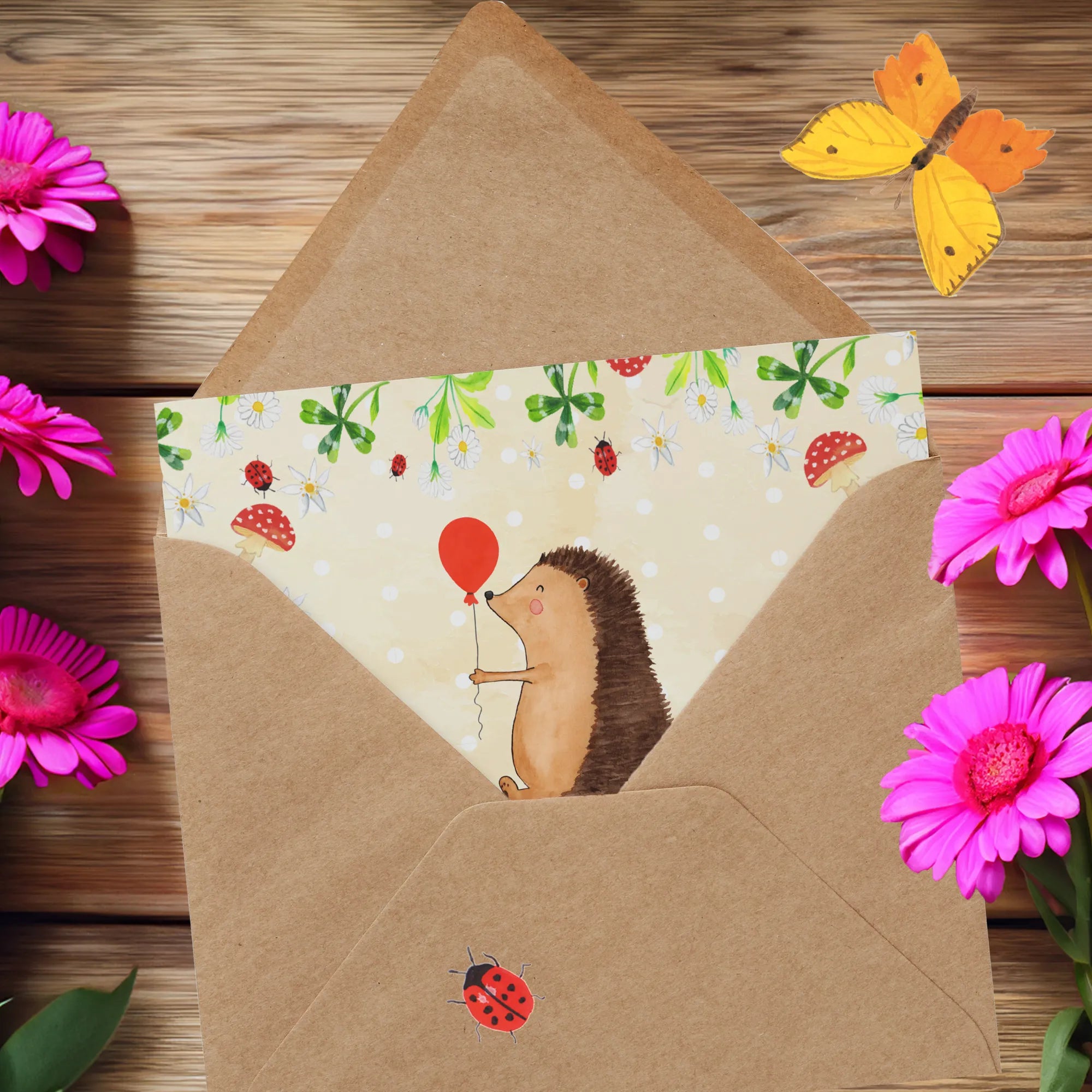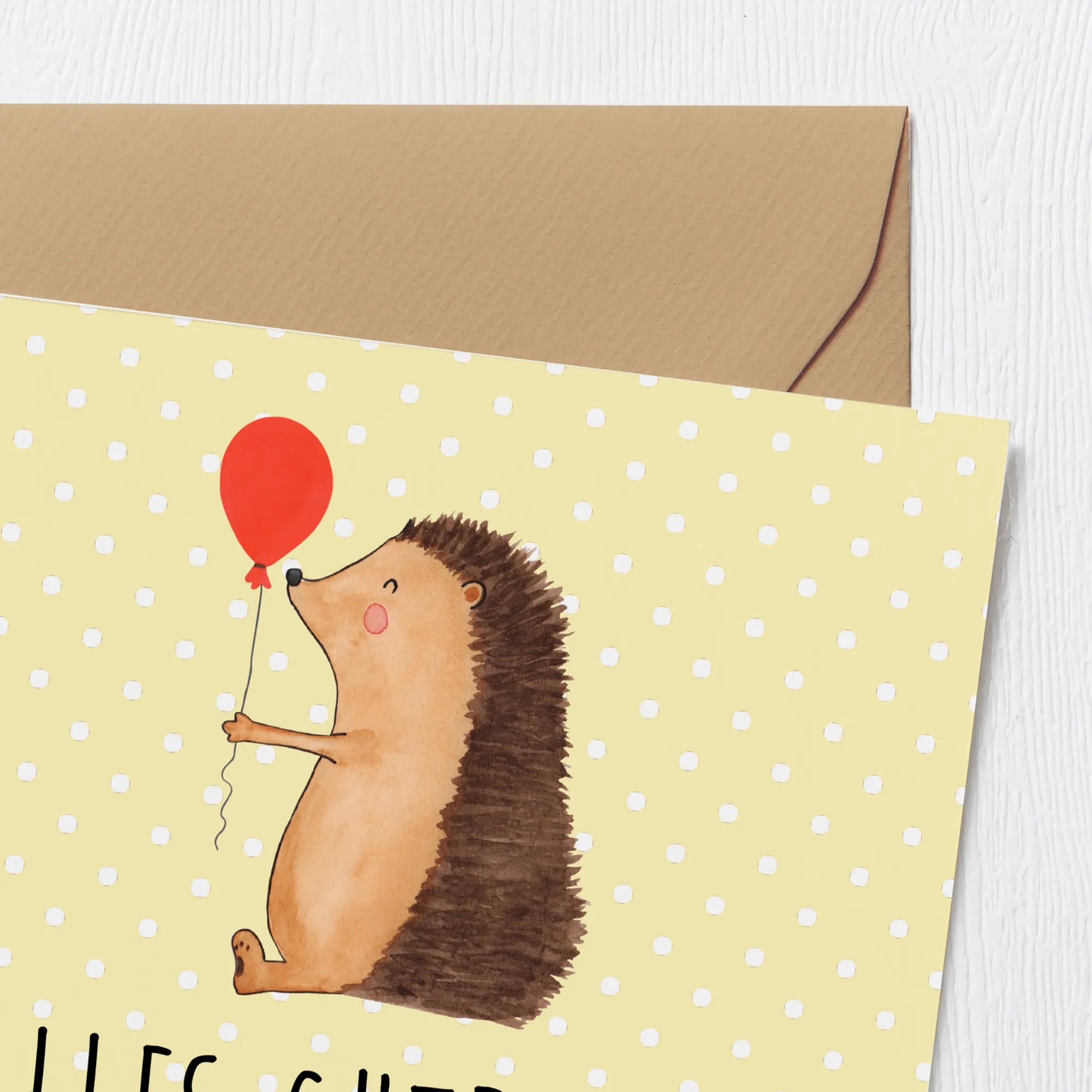 Die Deluxe Karte "Igel mit Luftballon" von Mr. & Mrs. Panda ist die perfekte Wahl, um Deine lieben Glückwünsche stilvoll zu überbringen. Ob für einen Geburtstag, eine Hochzeit oder einfach nur so, bringt diese hochwertige Grußkarte mit ihrem liebevollen Design und dem fröhlichen Text "Alles Gute zum Geburtstag" jede Menge Freude. Der süße Igel, der strahlend einen Luftballon hält, versprüht sofort gute Laune und macht jeden Anlass noch spezieller.