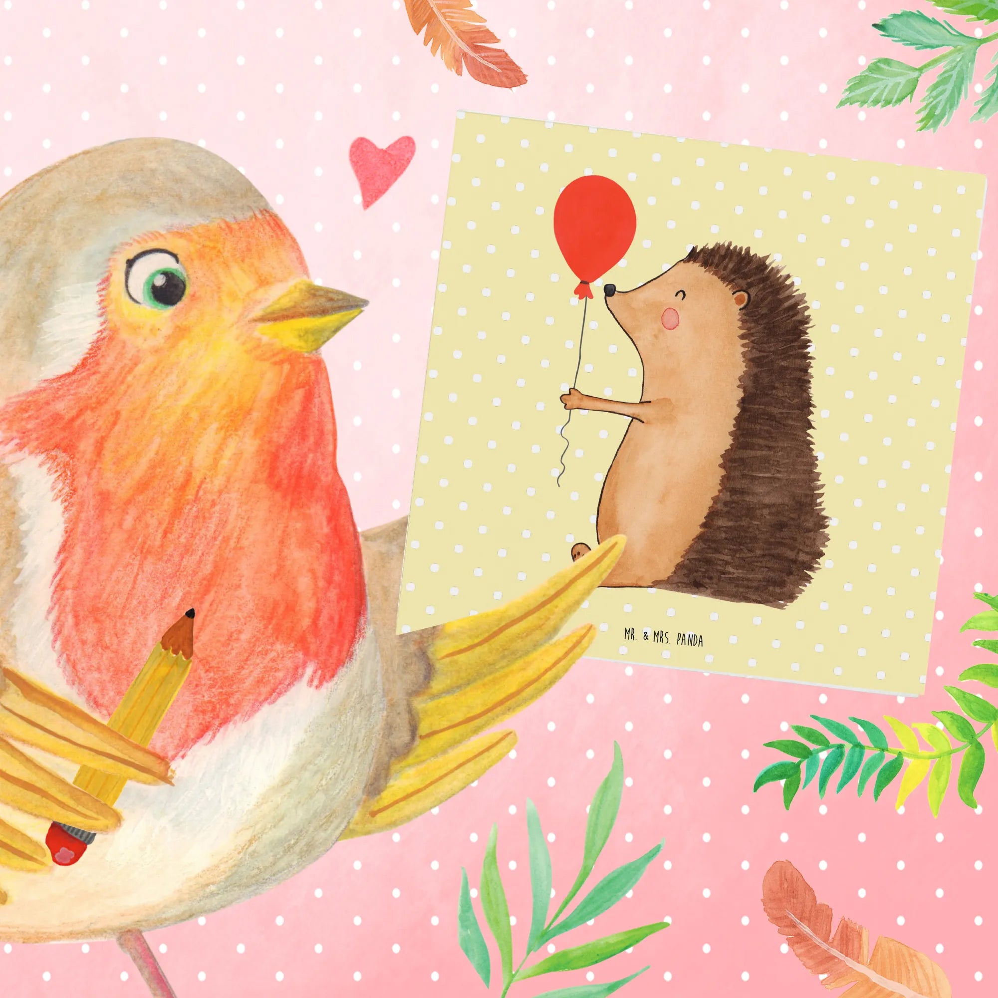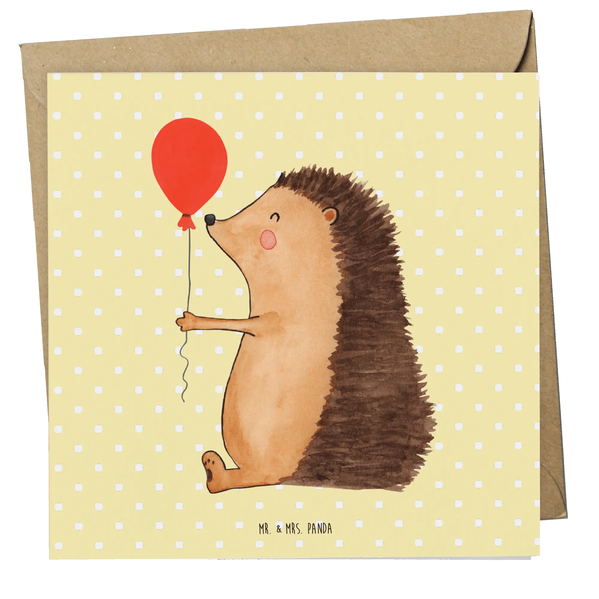Überrasche deine Freunde und Familie mit unserer Deluxe Karte 'Igel mit Luftballon' aus der bezaubernden Small World Kollektion von Mr. & Mrs. Panda. Diese hochwertige quadratische Karte hat eine Größe von 140 mm x 140 mm und wird aus 300 Gramm edlem Karton gefertigt, um sicherzustellen, dass sie Deinem besonderen Anlass gerecht wird.