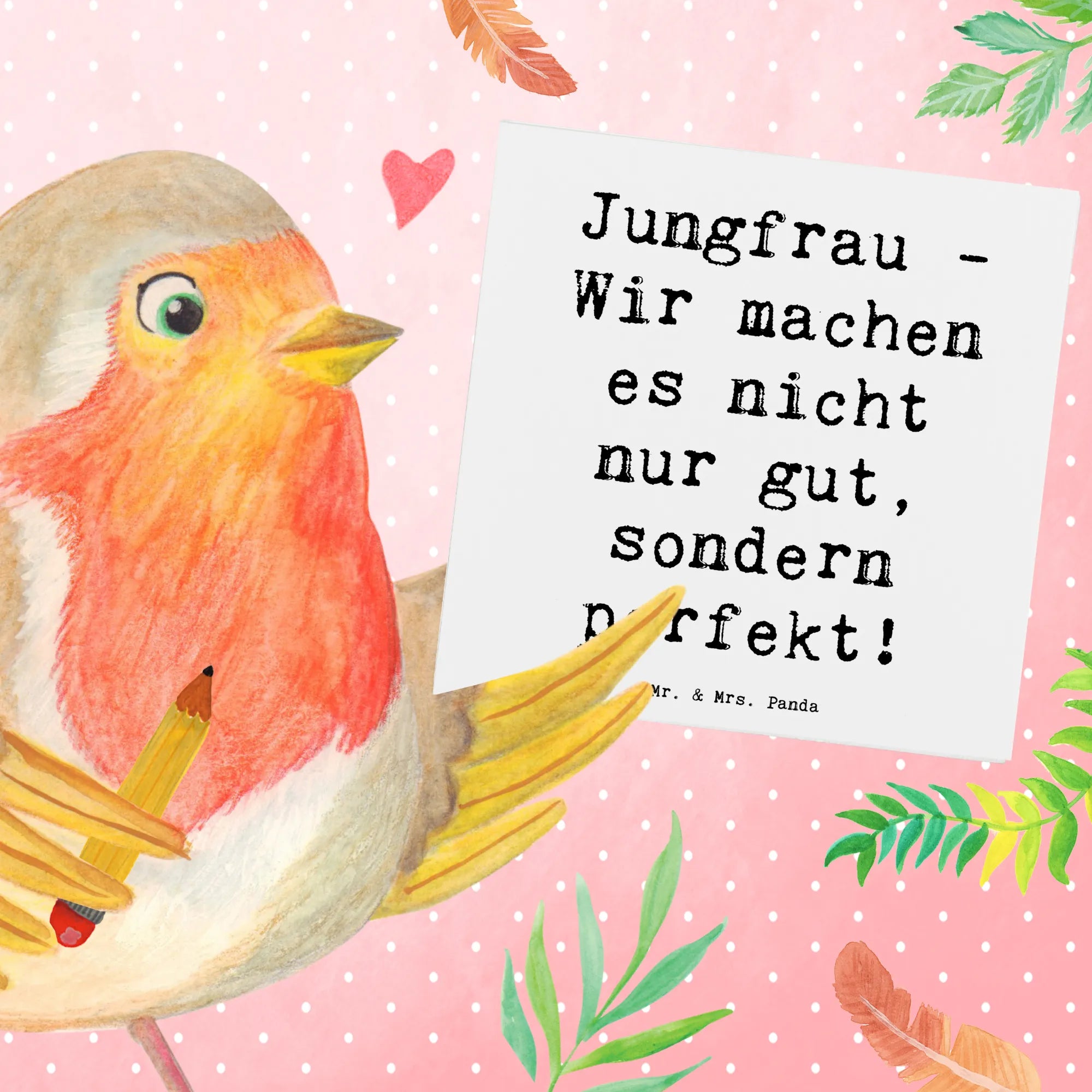 Die Deluxe Karte mit dem Motiv "Jungfrau - Wir machen es nicht nur gut, sondern perfekt!" von Mr. & Mrs. Panda ist das perfekte Geschenk für alle, die an die Magie der Sternzeichen glauben. Diese besonders hochwertige quadratische Karte zeichnet sich nicht nur durch ihr edles Design aus, sondern auch durch die liebevolle Handzeichnung von Mrs. Panda. Sie hat es mit viel Hingabe und Kreativität geschafft, die einzigartigen Eigenschaften des Tierkreiszeichens Jungfrau in einem fröhlichen und farbenfrohen Motiv festzuhalten.