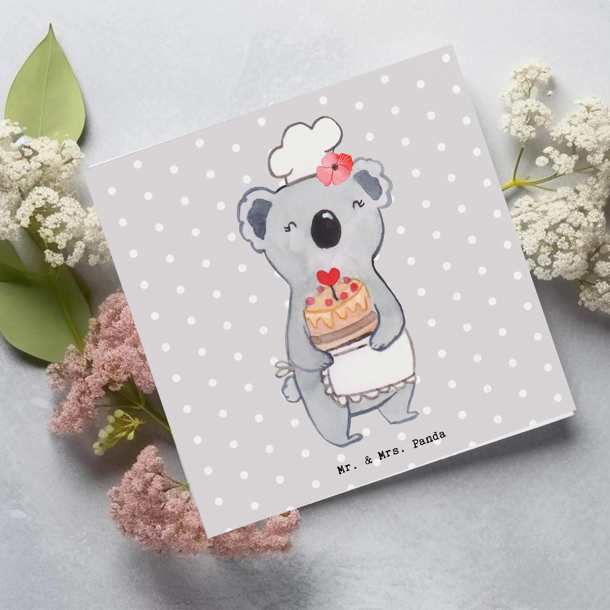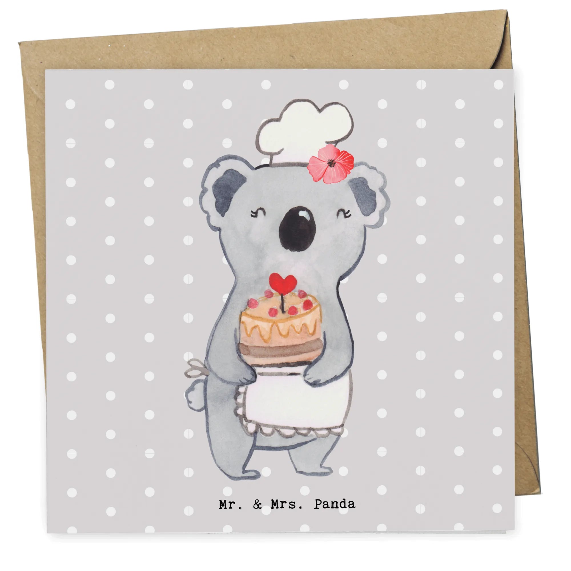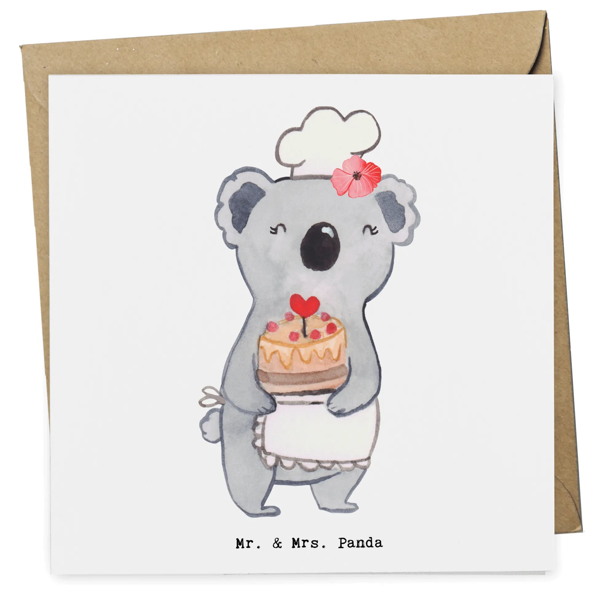 Entdecke die wunderschöne Deluxe Karte 'Konditorin mit Herz' aus der exklusiven Berufe Kollektion von Mr. & Mrs. Panda!