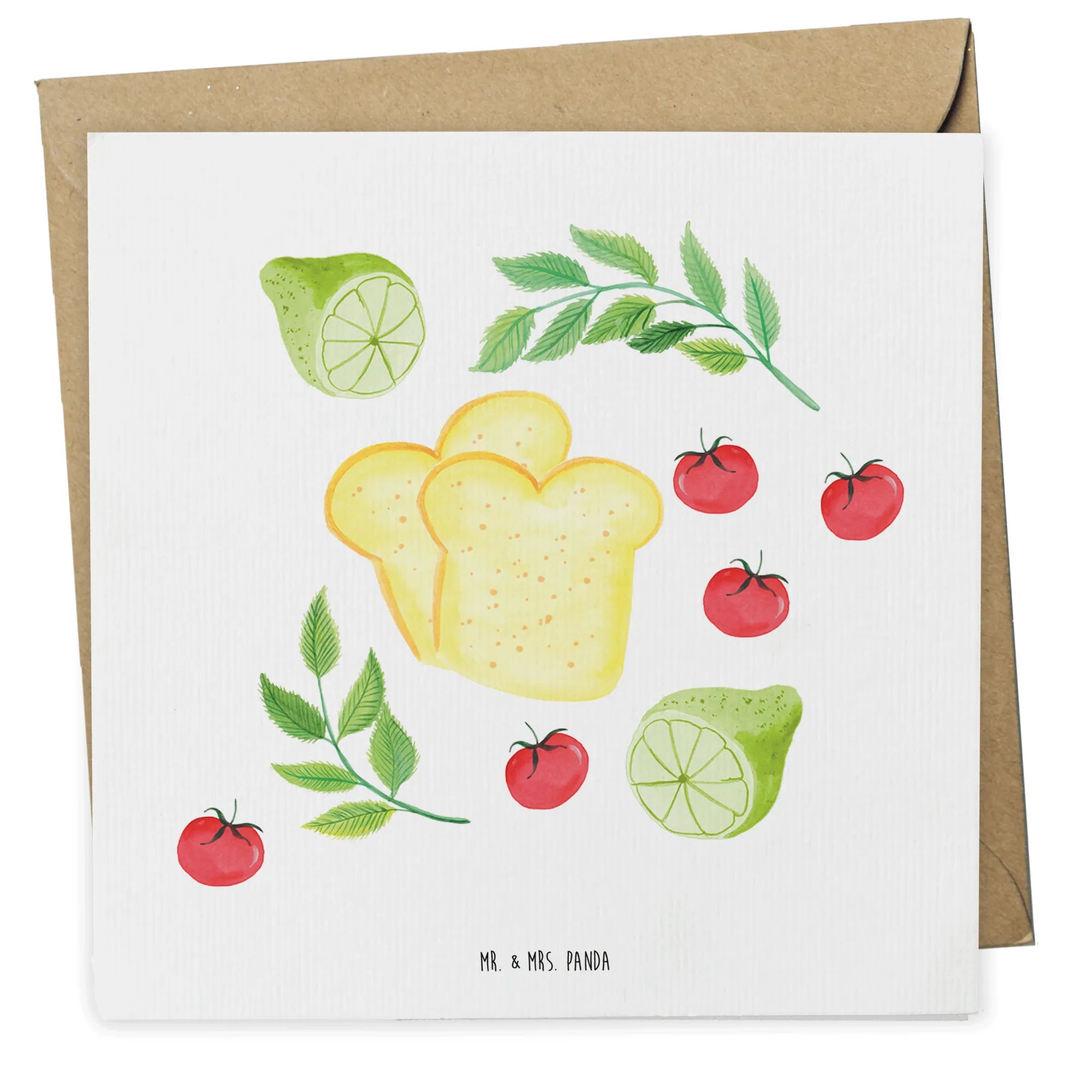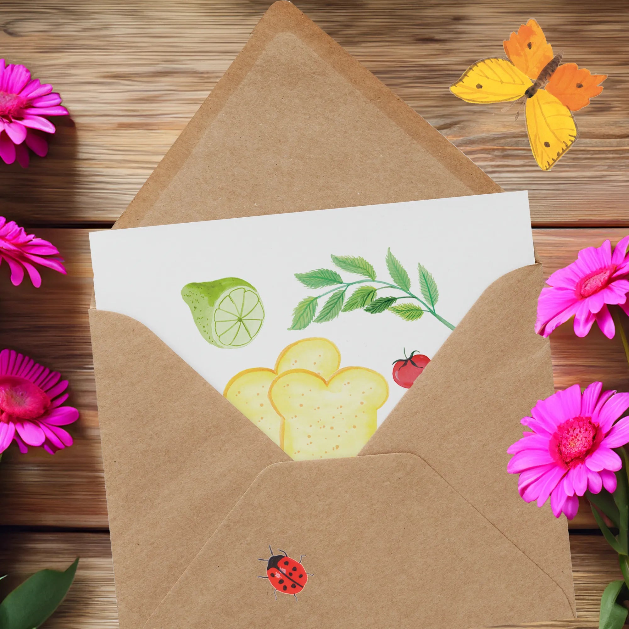Die Deluxe Karte im Küchenmagie Design von Mr. & Mrs. Panda ist das perfekte Geschenk für alle, die der Kochkunst und der Kücheneinrichtung ein wenig Magie hinzufügen möchten. Mit einem wunderschönen Aquarellmotiv von frischen Tomaten, Limetten, Toastbrot und Kräutern ist diese Karte nicht nur ein einfacher Gruß, sondern ein kleines Kunstwerk.