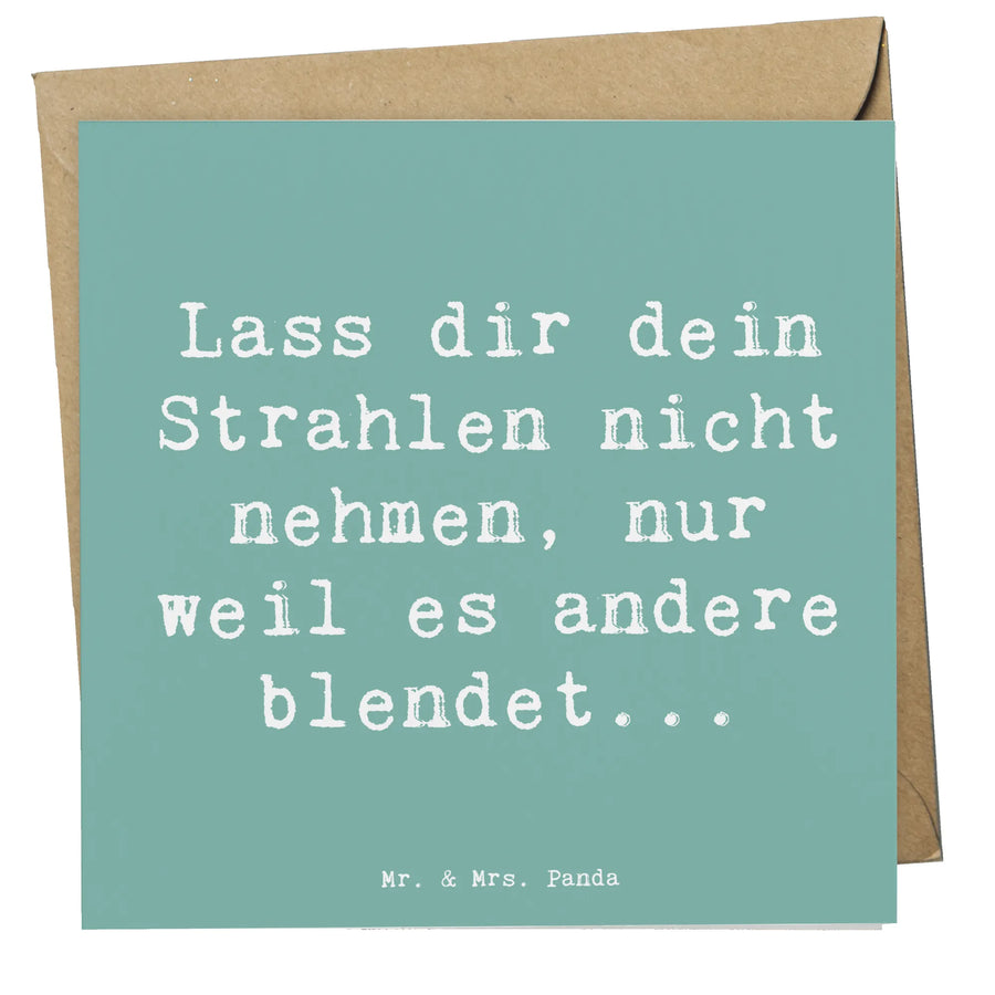 Diese Karte eignet sich hervorragend für zahlreiche Anlässe wie Geburtstage, Hochzeiten, Verabschiedungen oder einfach nur um einem Freund zu sagen, wie toll er ist. Der Spruch "Lass dir dein Strahlen nicht nehmen, nur weil es andere blendet..." inspiriert und ermutigt dazu, das eigene Selbstvertrauen nie zu verlieren.